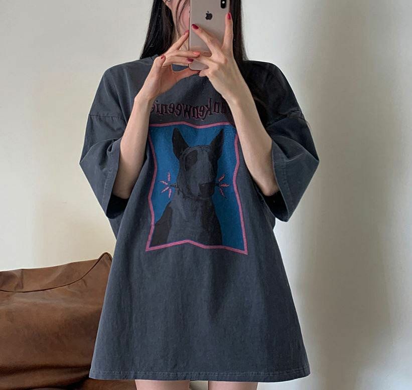 狗仔圖案英文字短袖Tee T5405