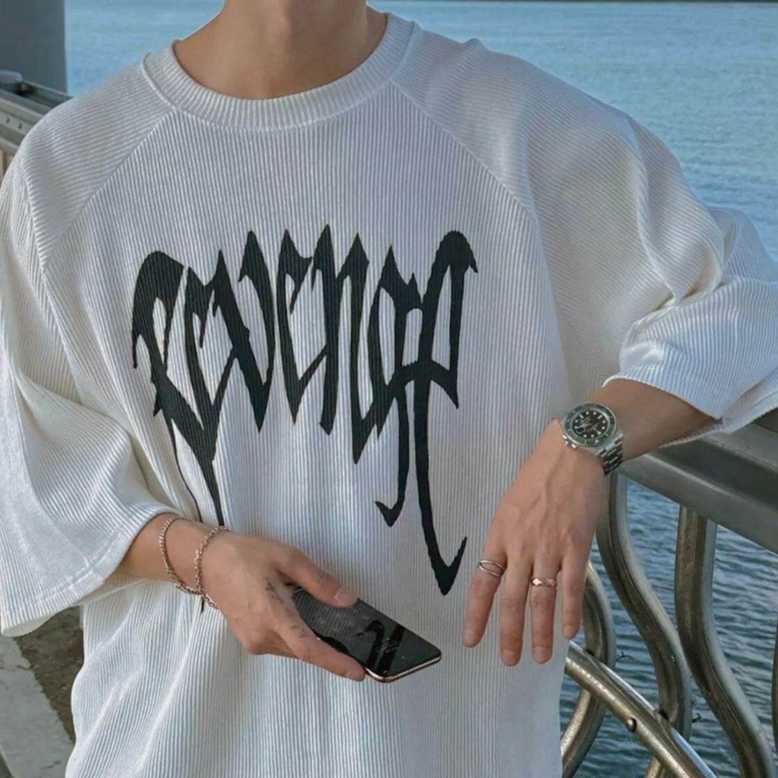 英文字暗直紋短袖Tee T5516