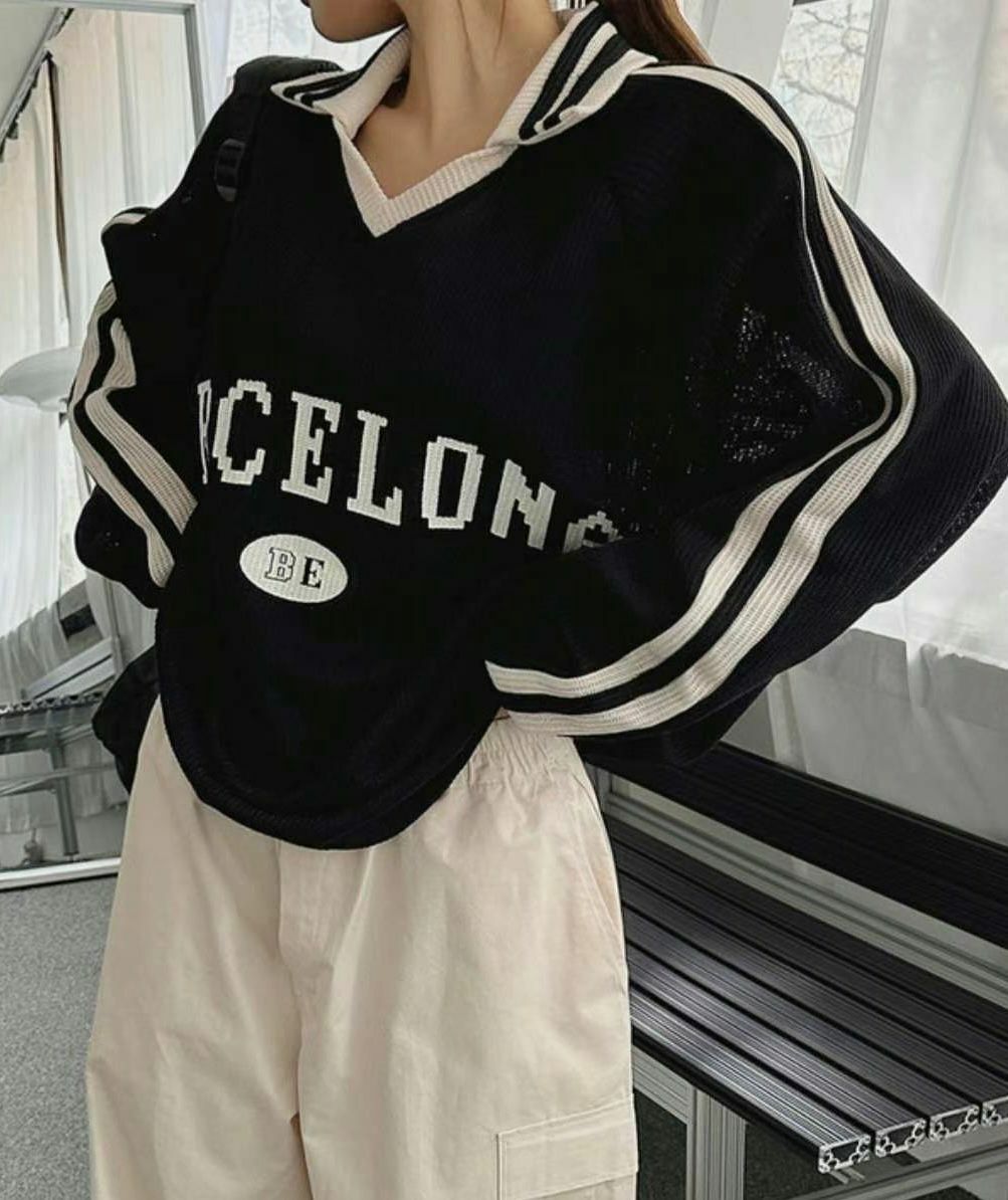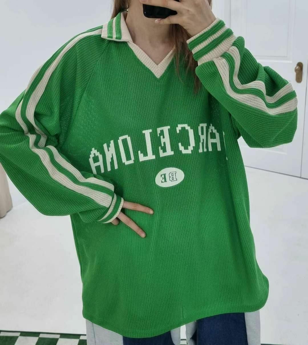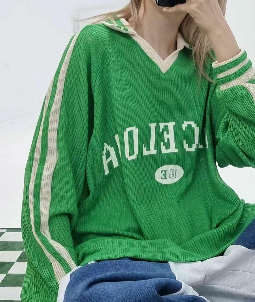 OverSize反V領英文字針織長袖衫 T5574