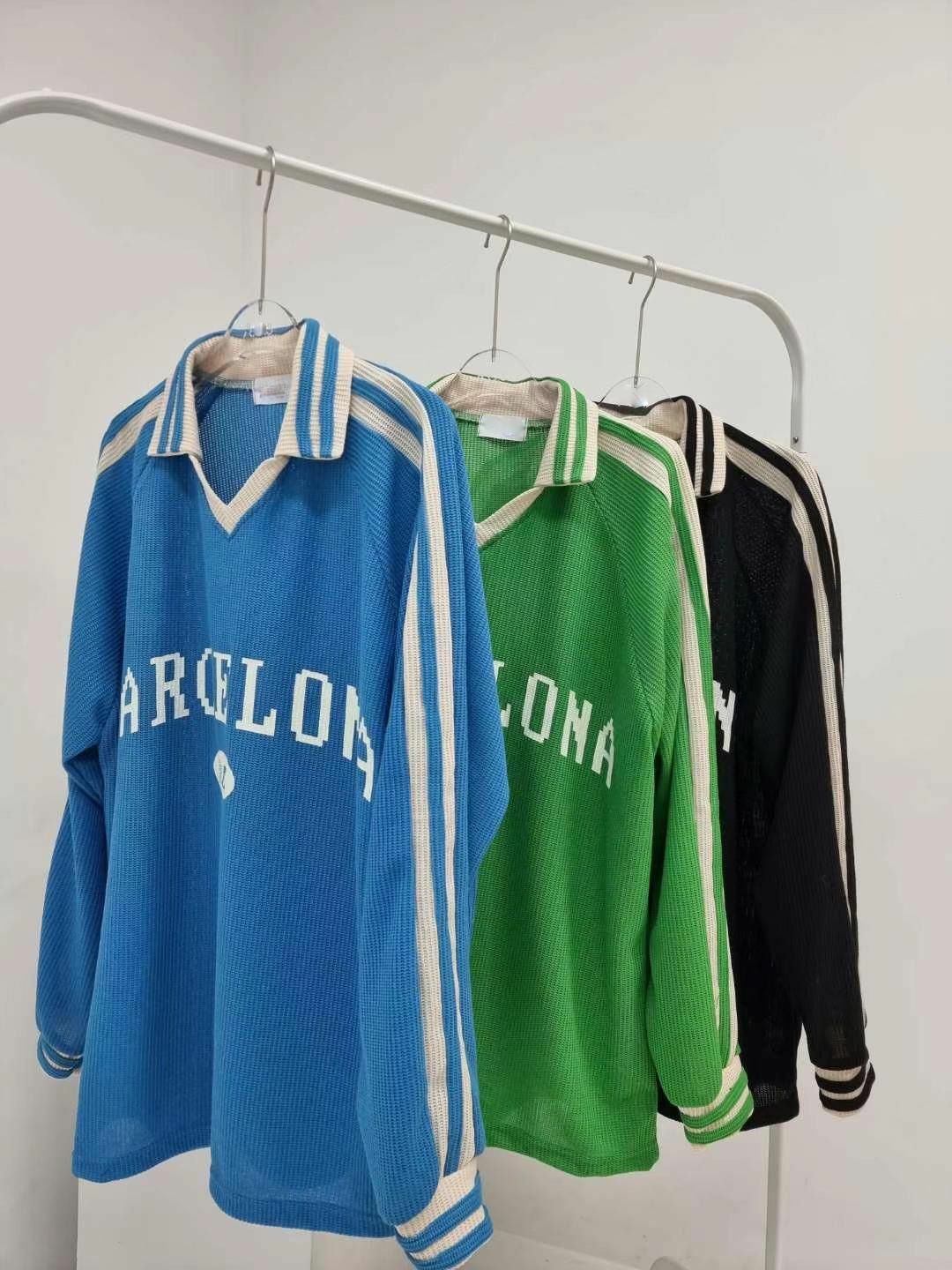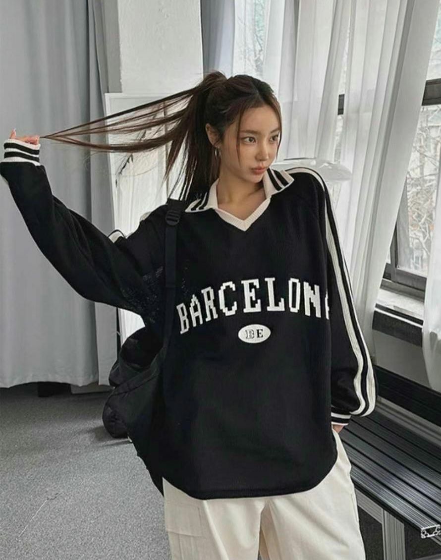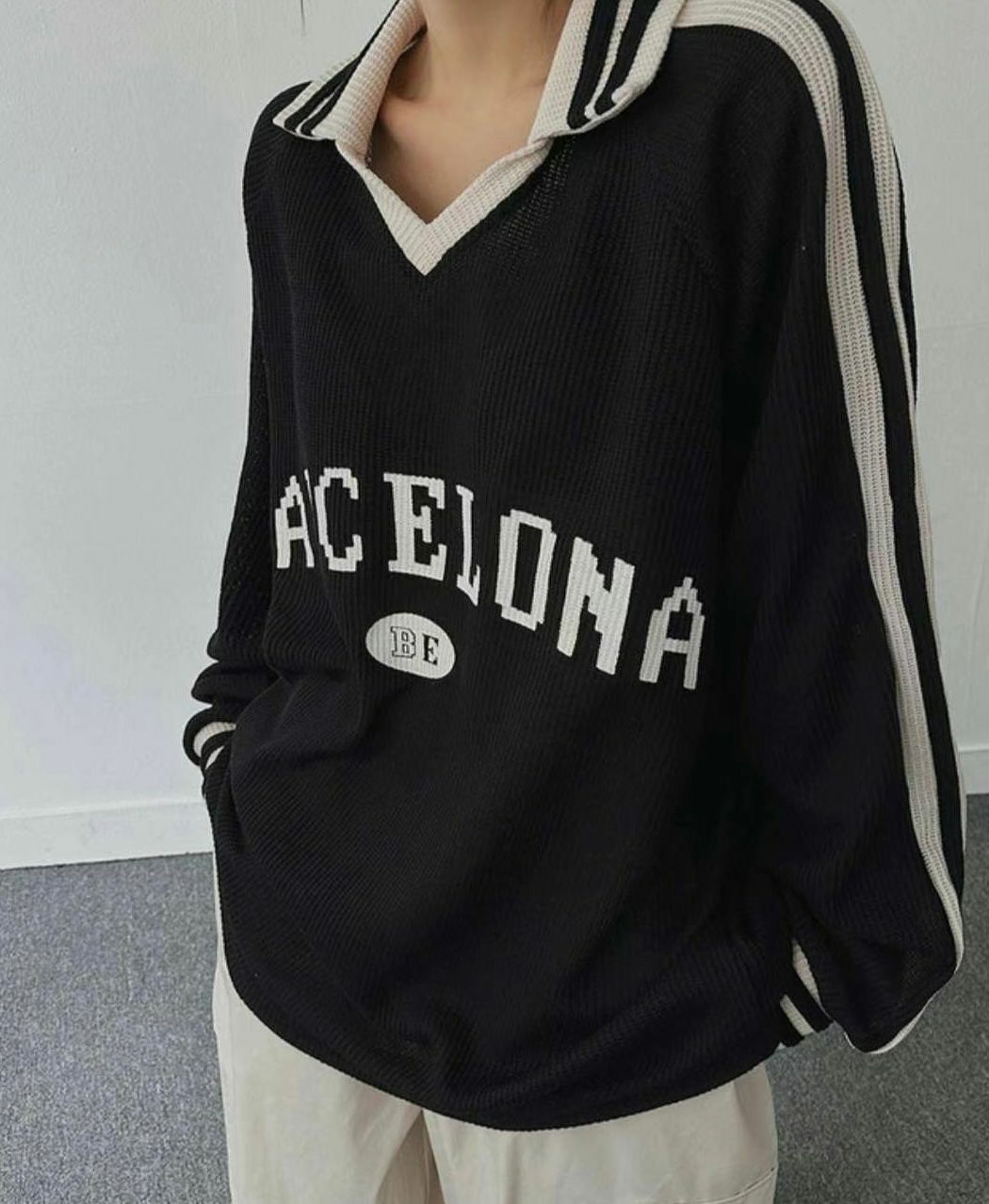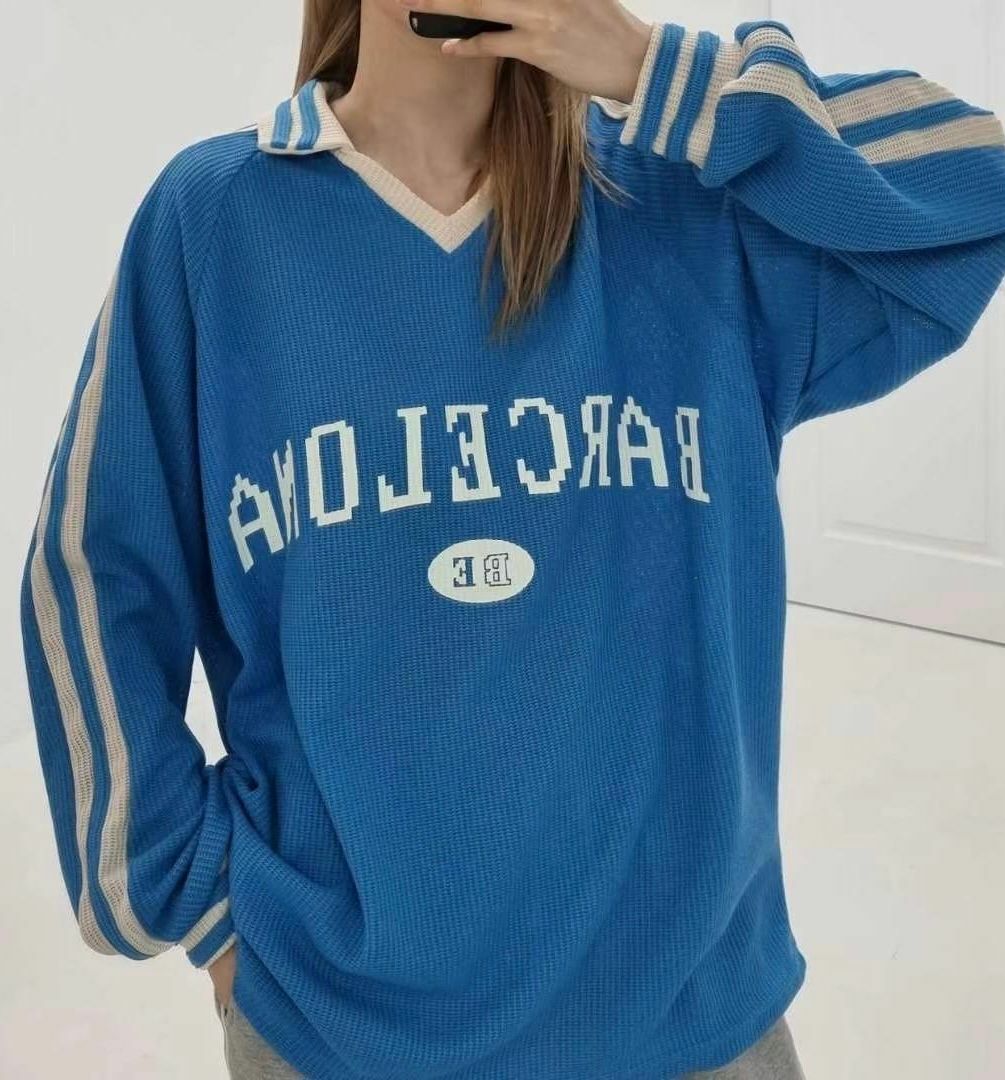 OverSize反V領英文字針織長袖衫 T5574