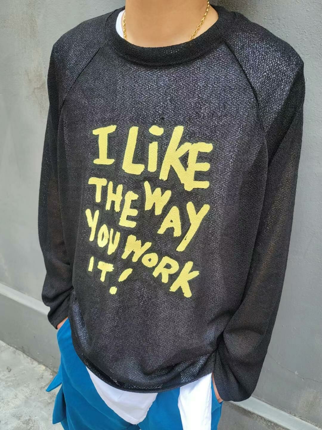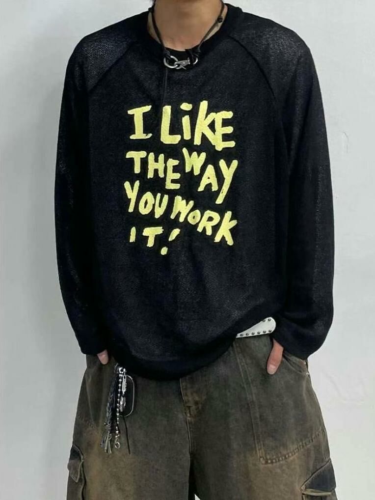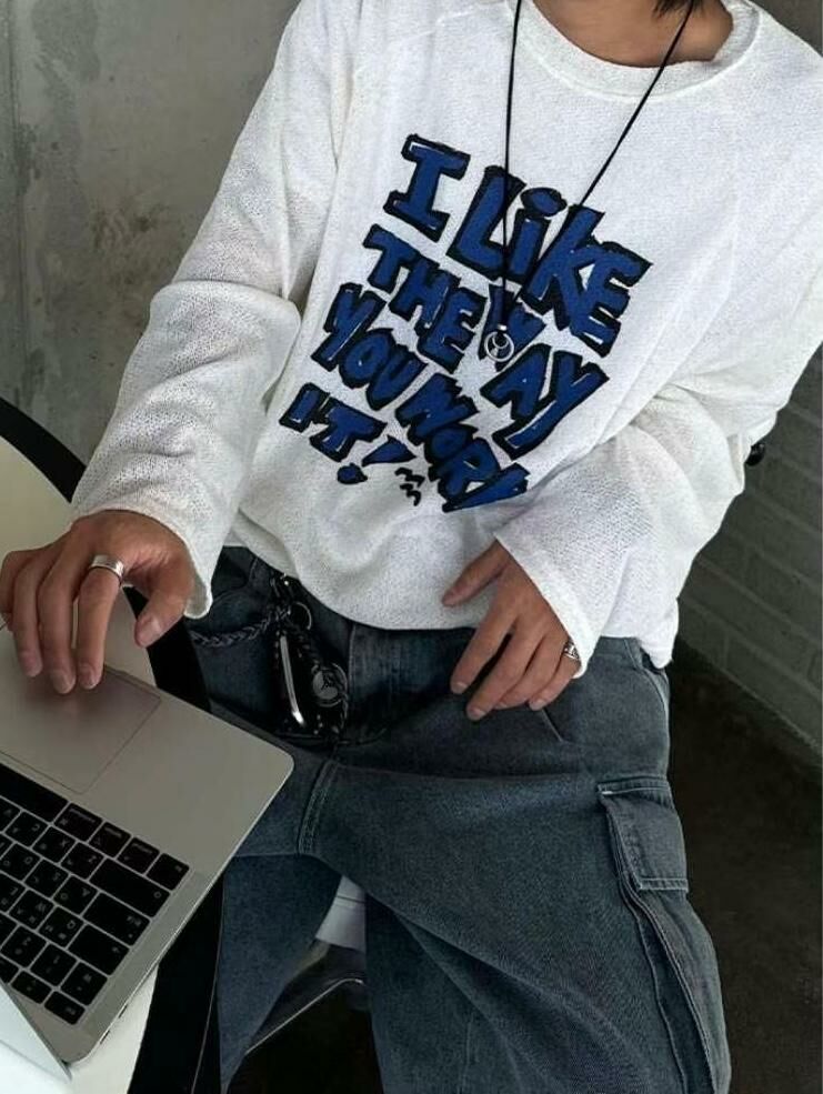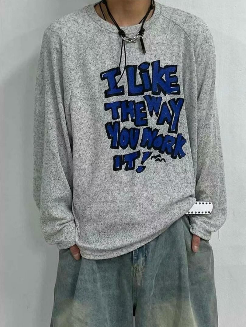 英文字長袖線衫 T5578