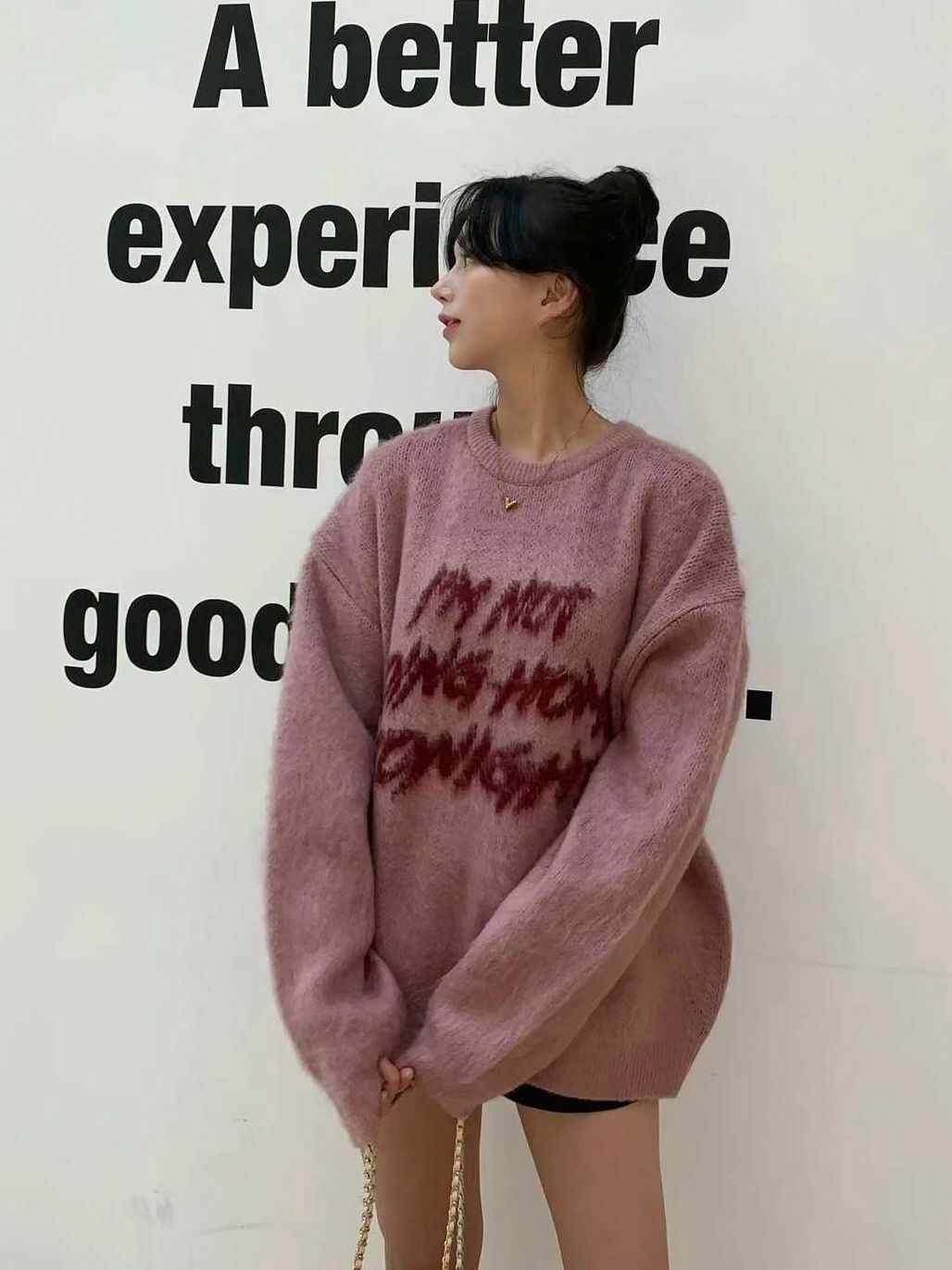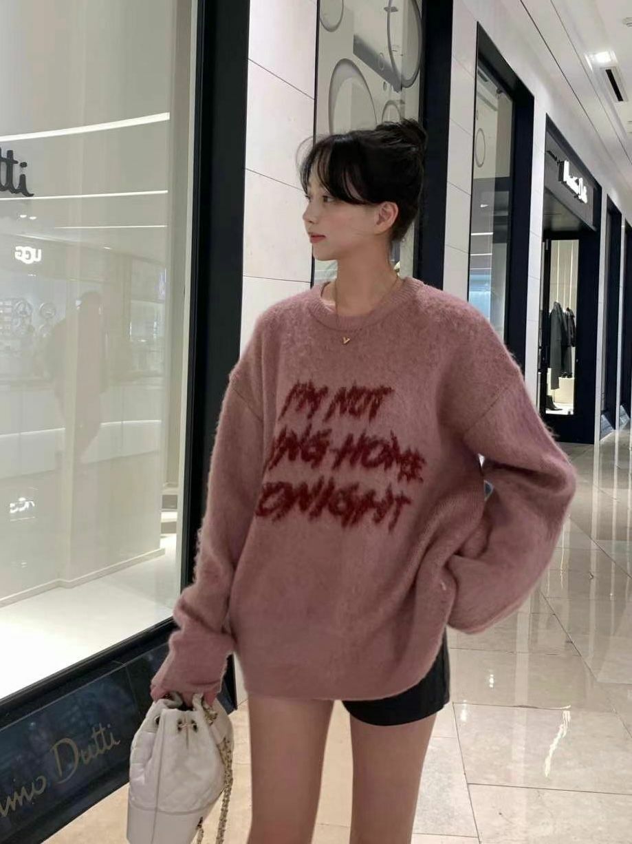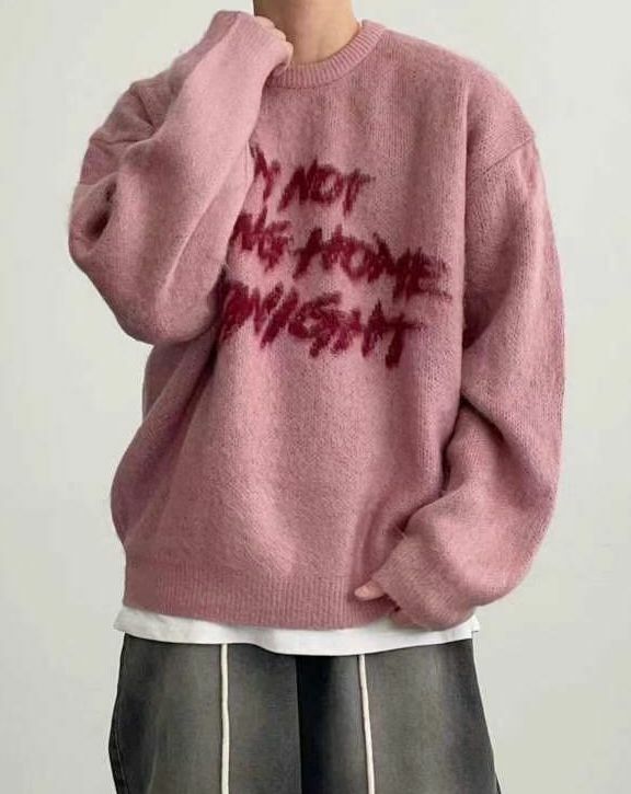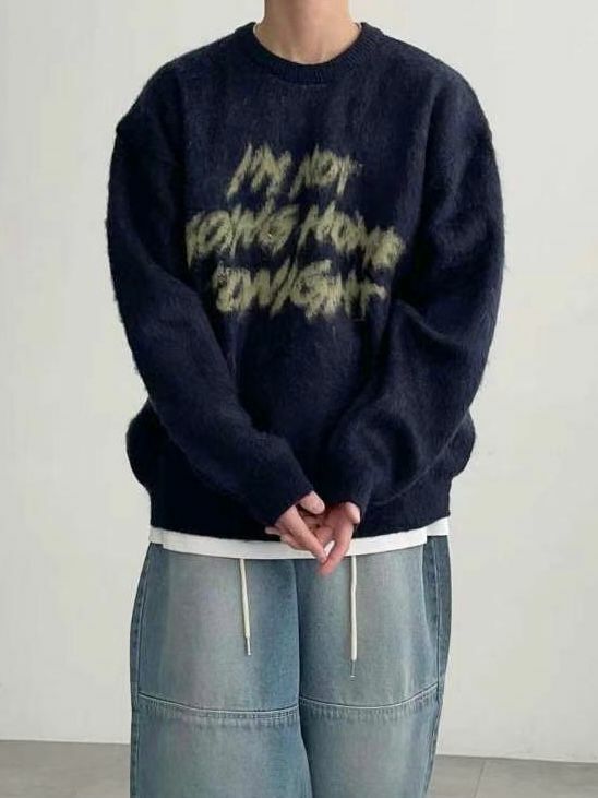 圓領英文字針織衫 T5637