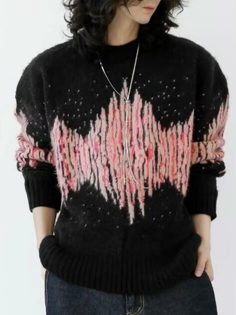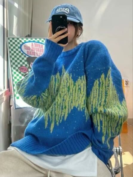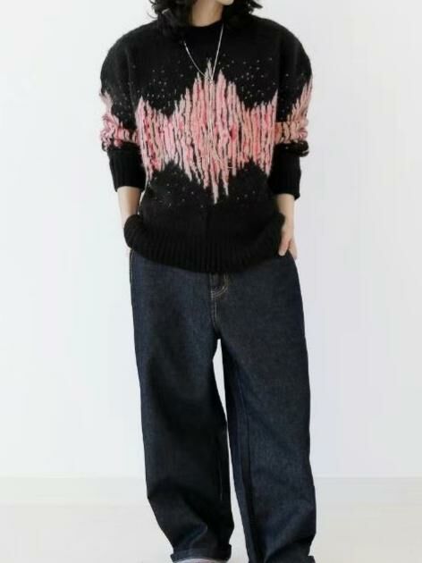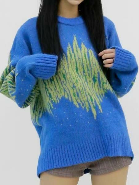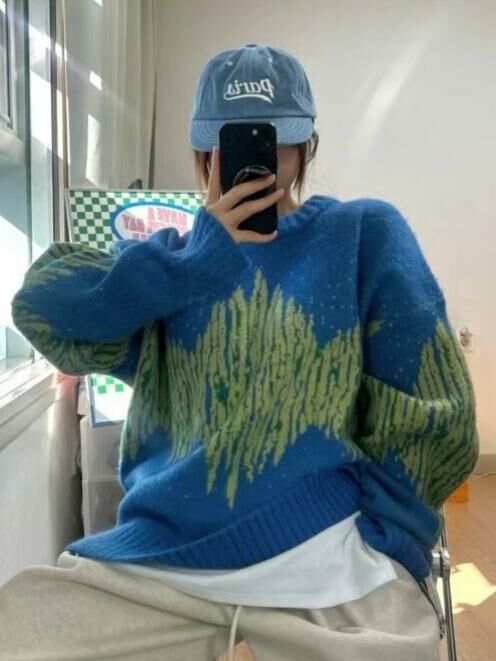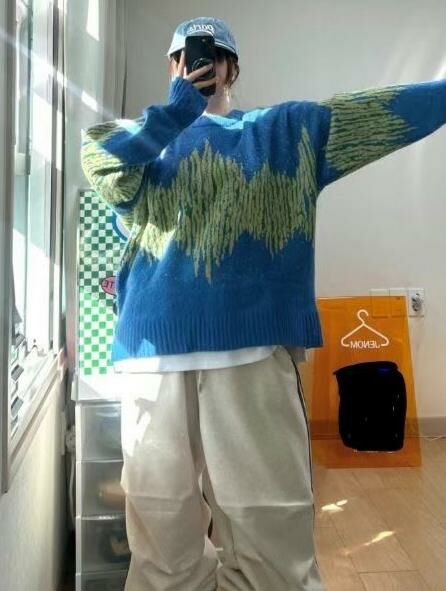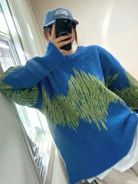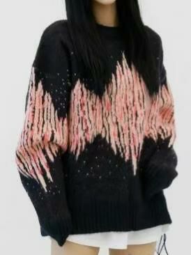 圓領拼色亂紋針織衫 T5656