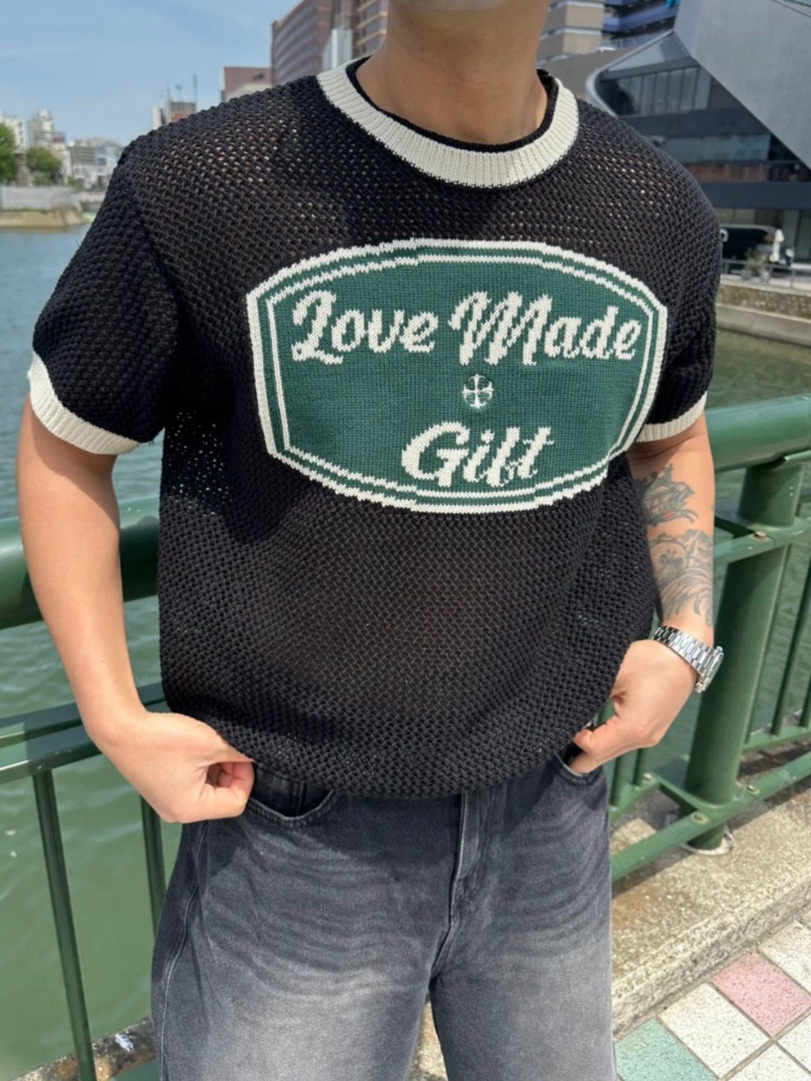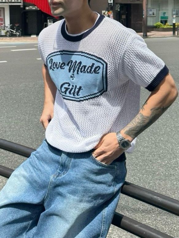 英文字針織短袖Tee T5744