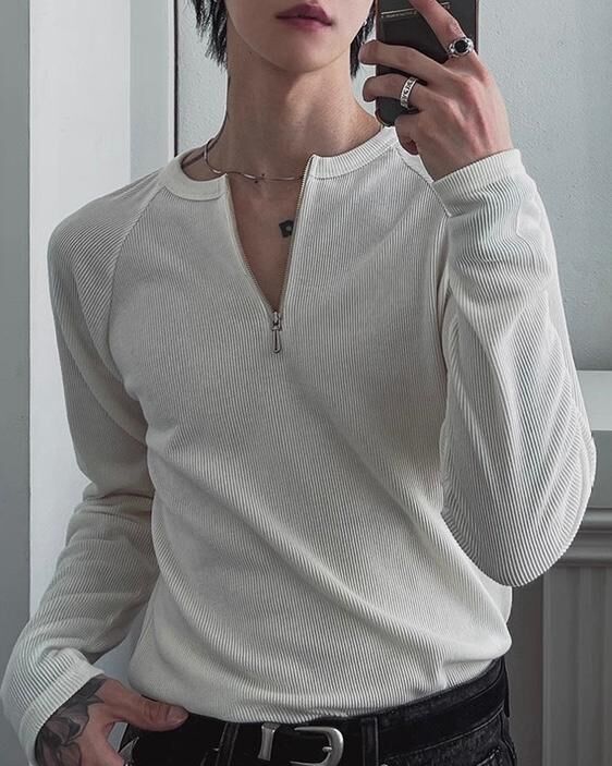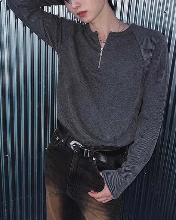 淨色半拉鍊長袖衫 T5874