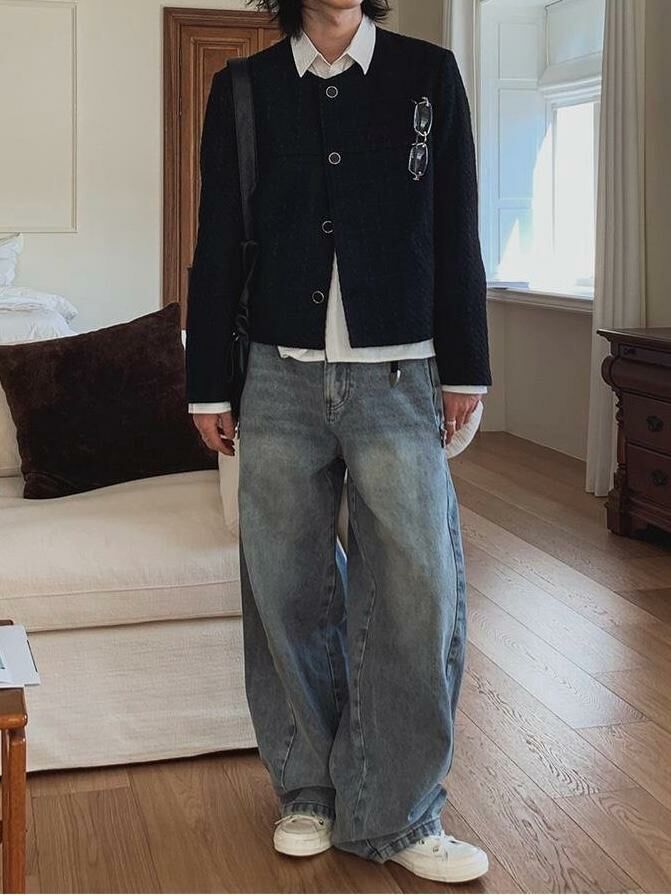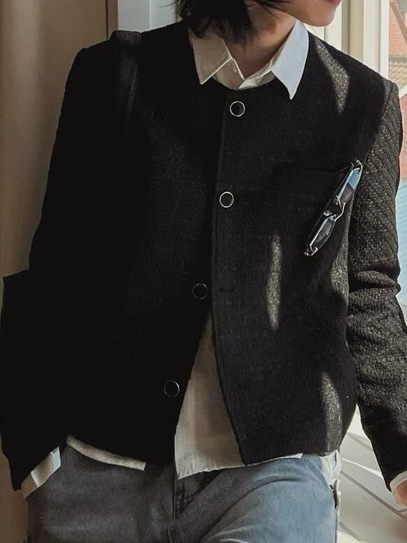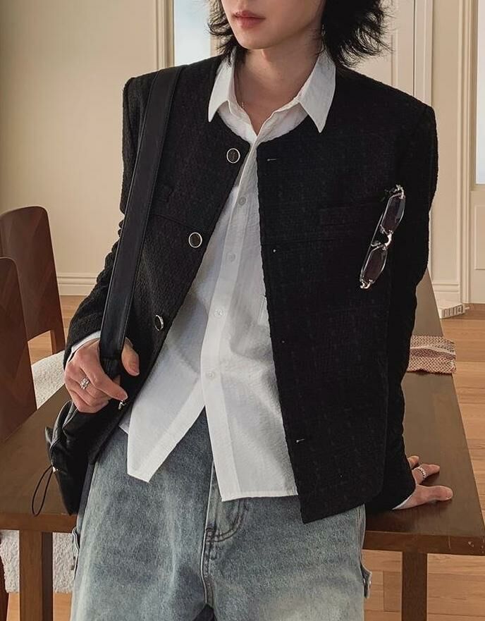 圓領暗紋開胸外套 TAC-0151JK