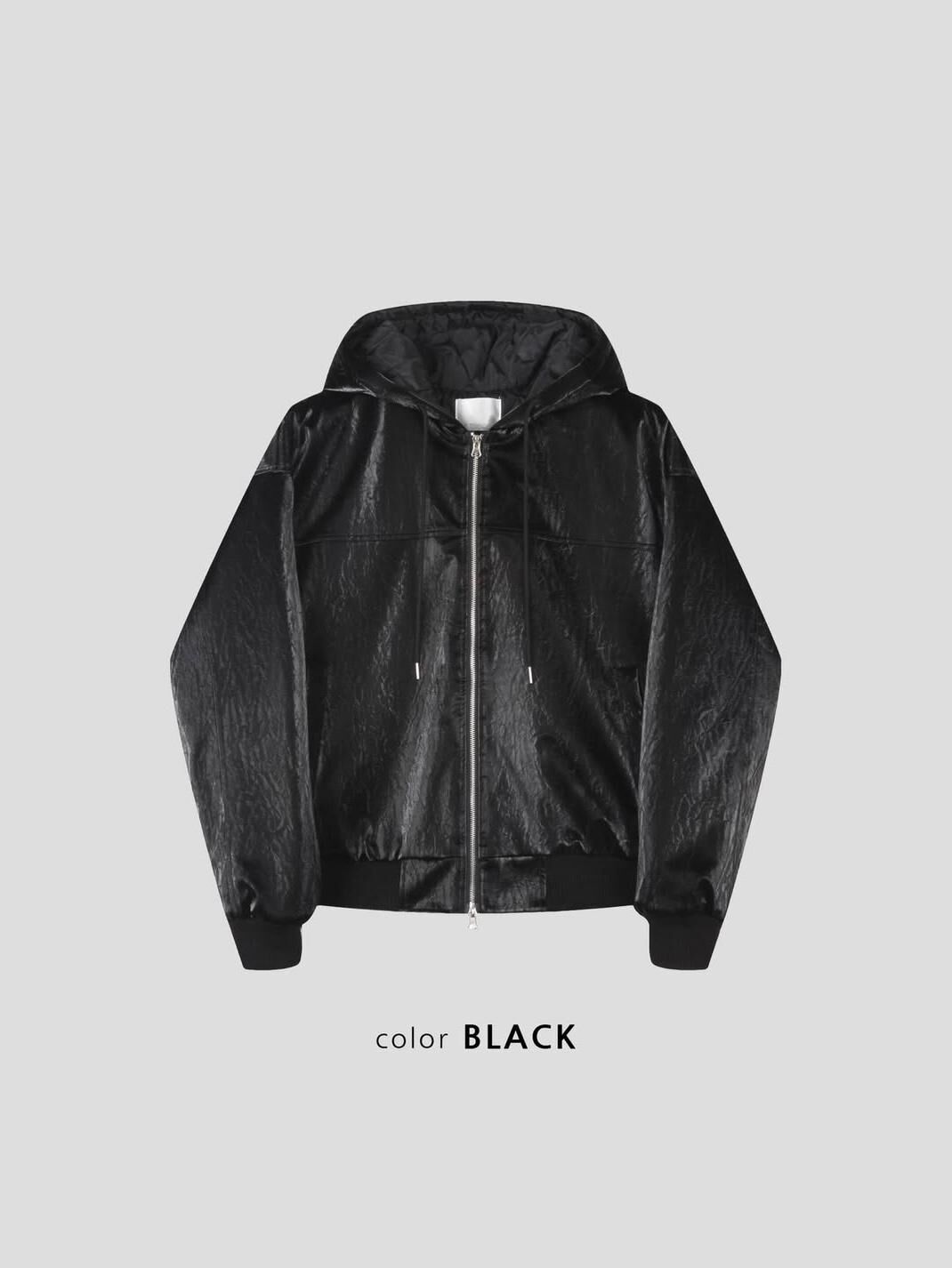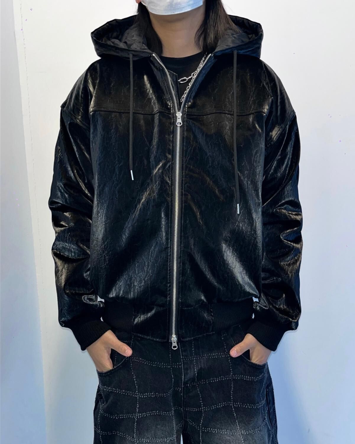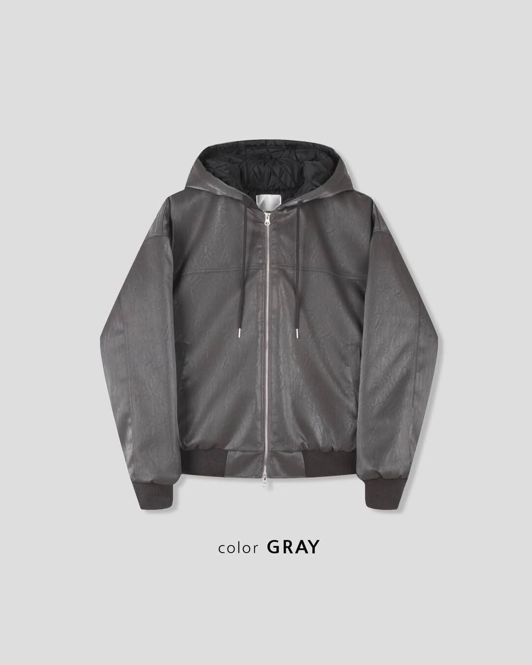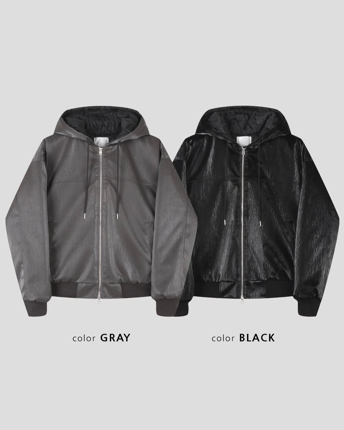 淨色連帽拉鍊合成皮褸 Tac-0347JK