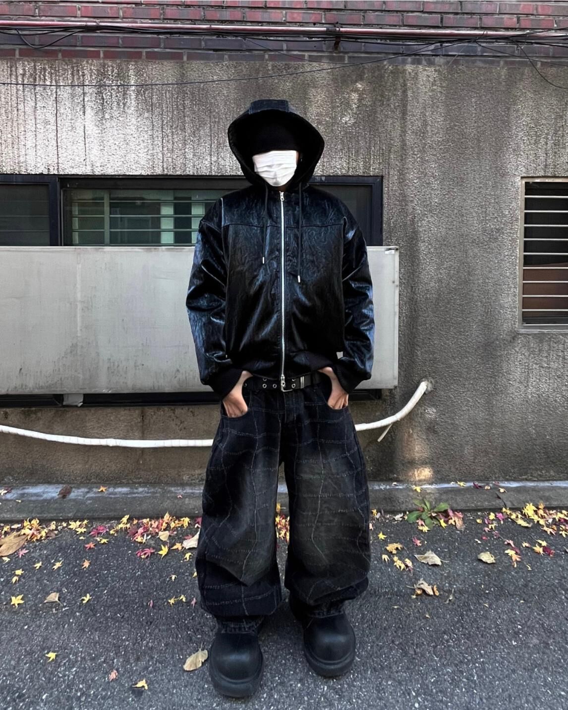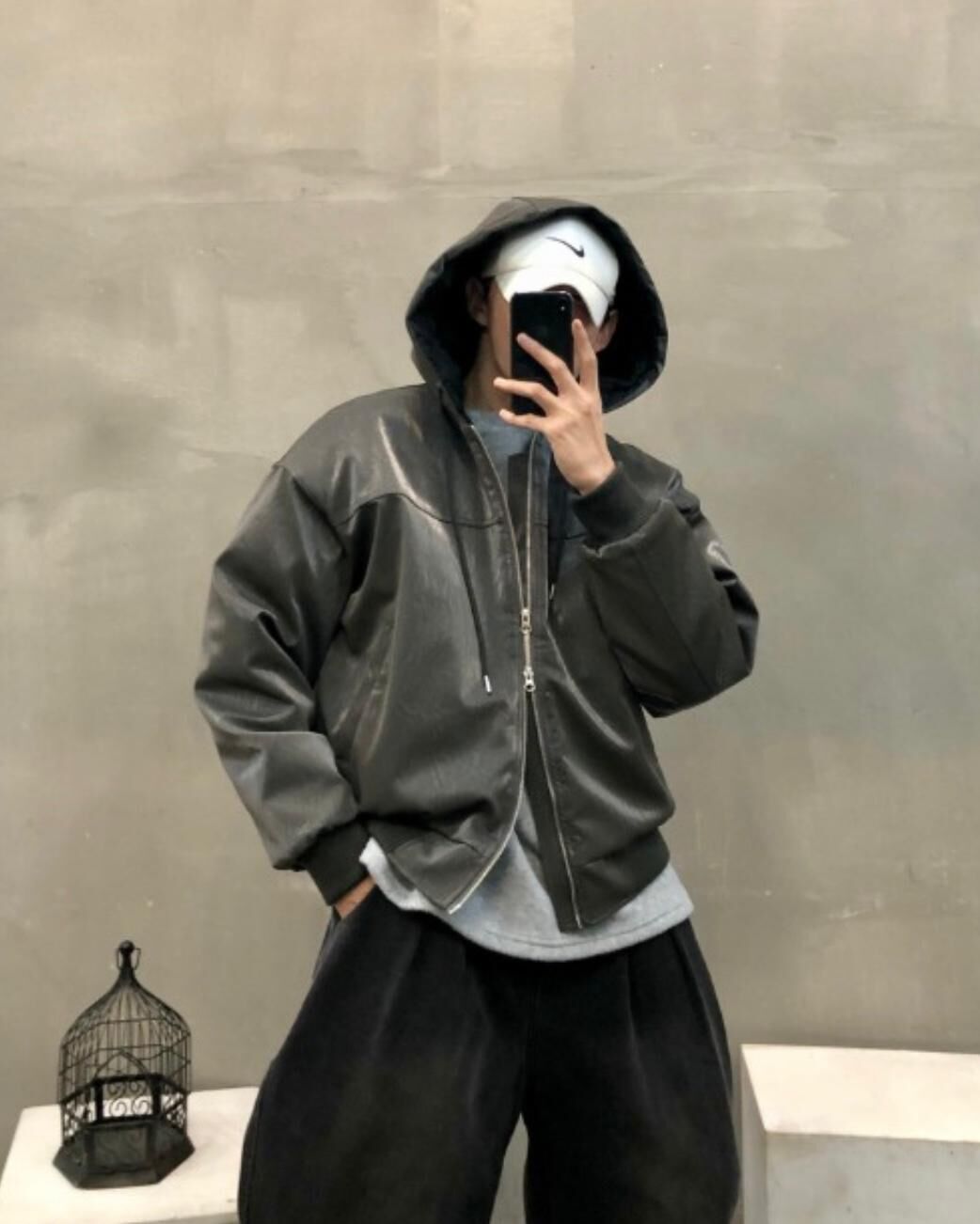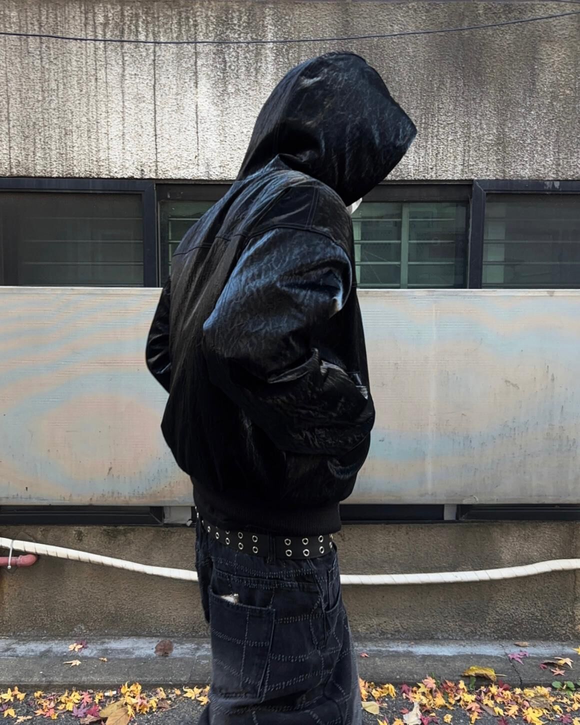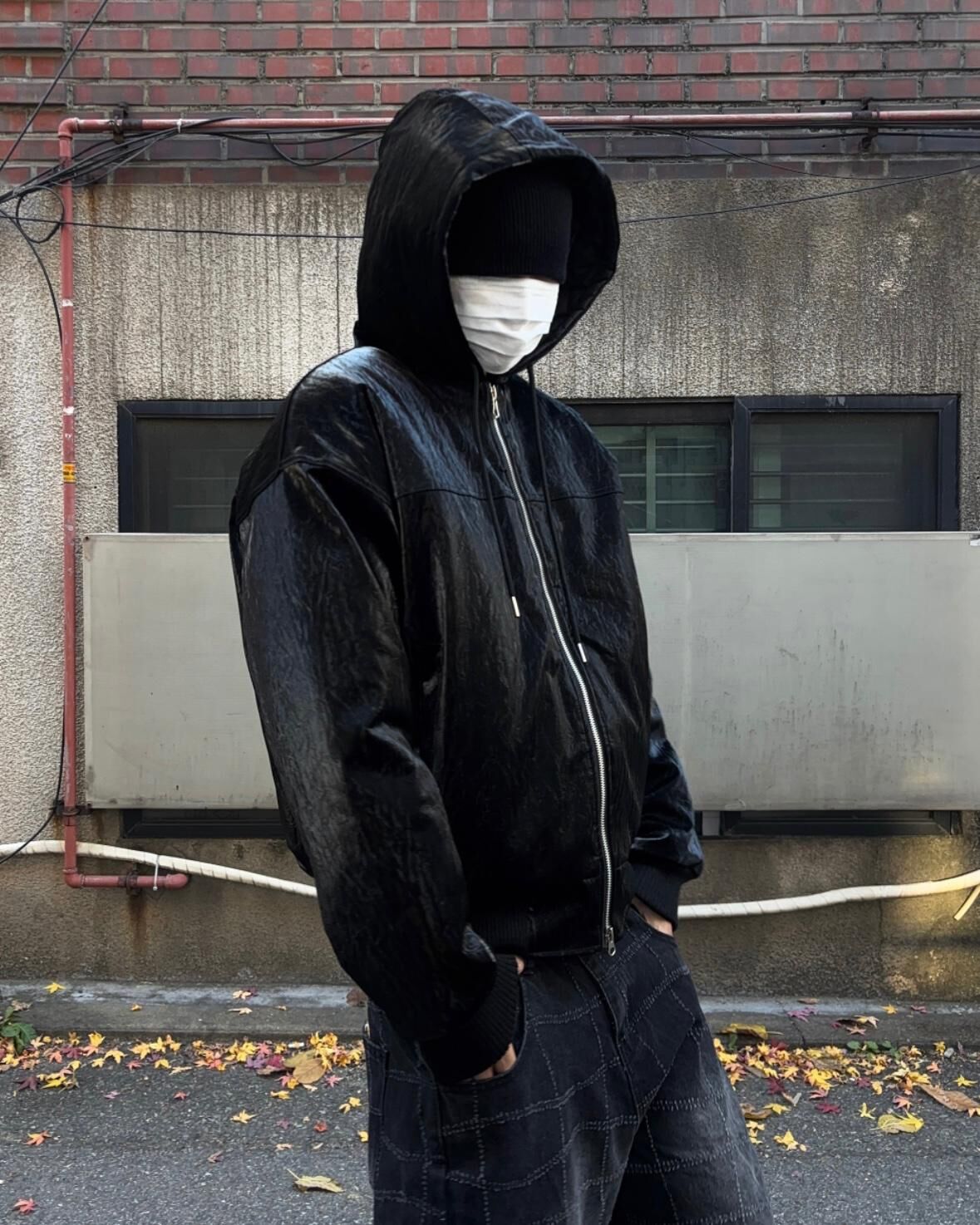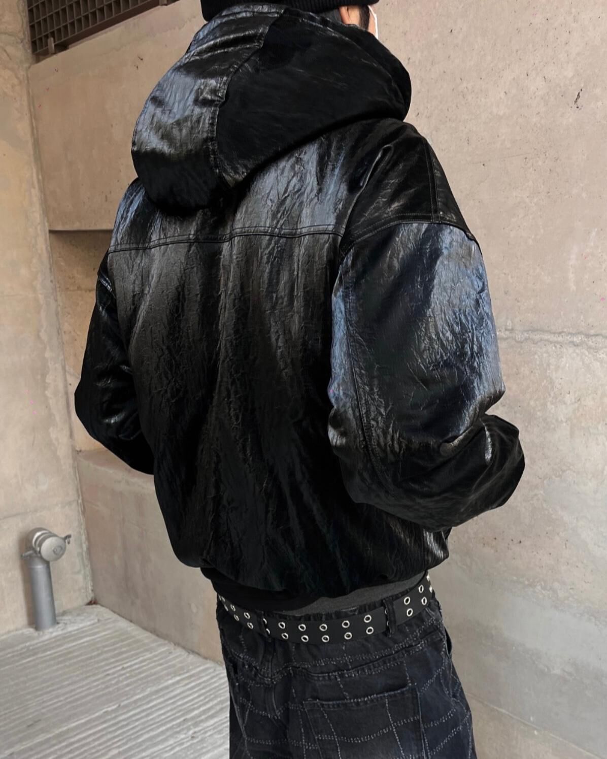淨色連帽拉鍊合成皮褸 Tac-0347JK
