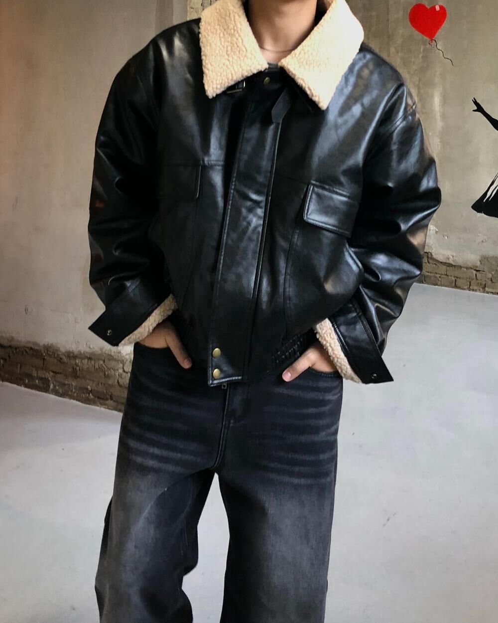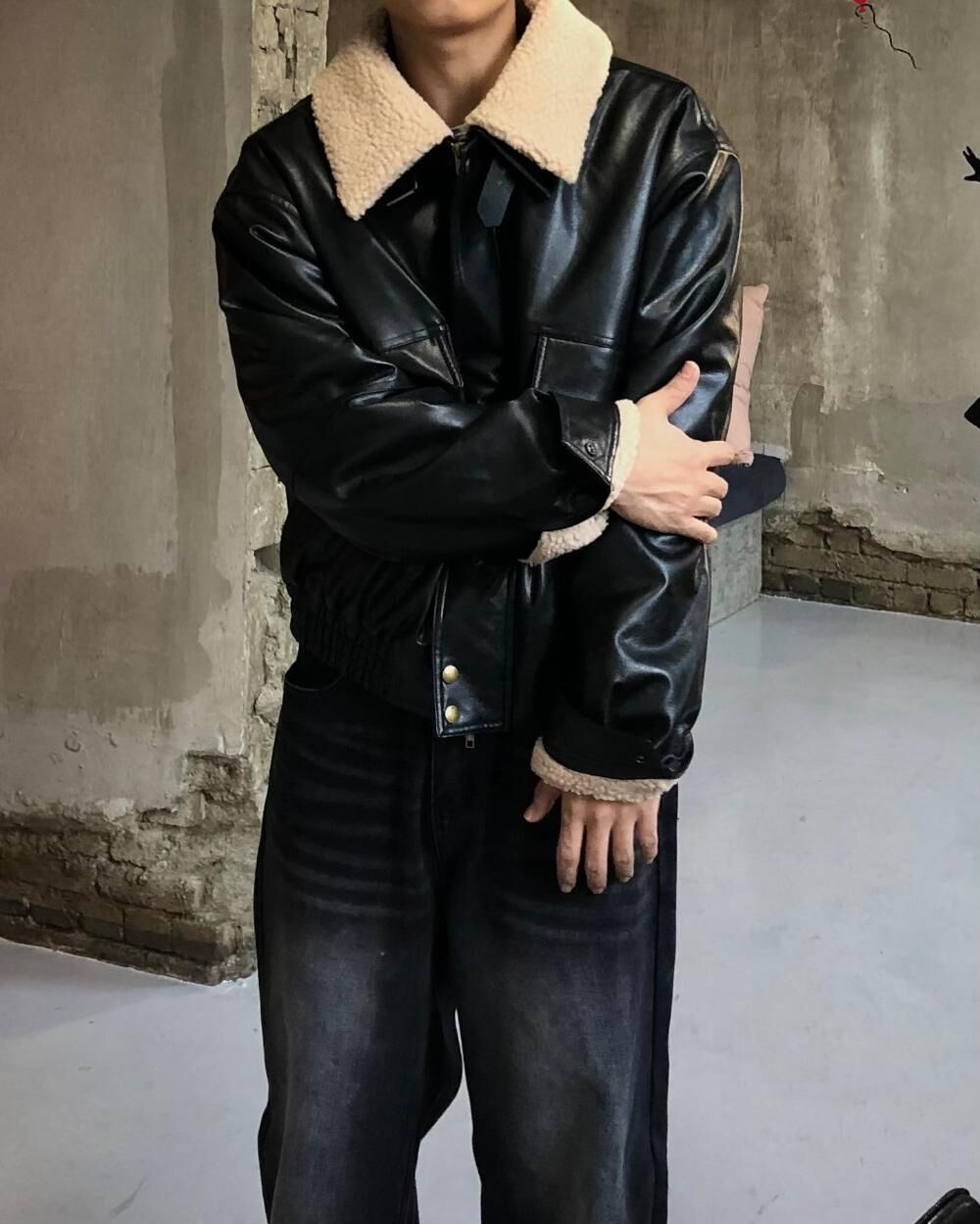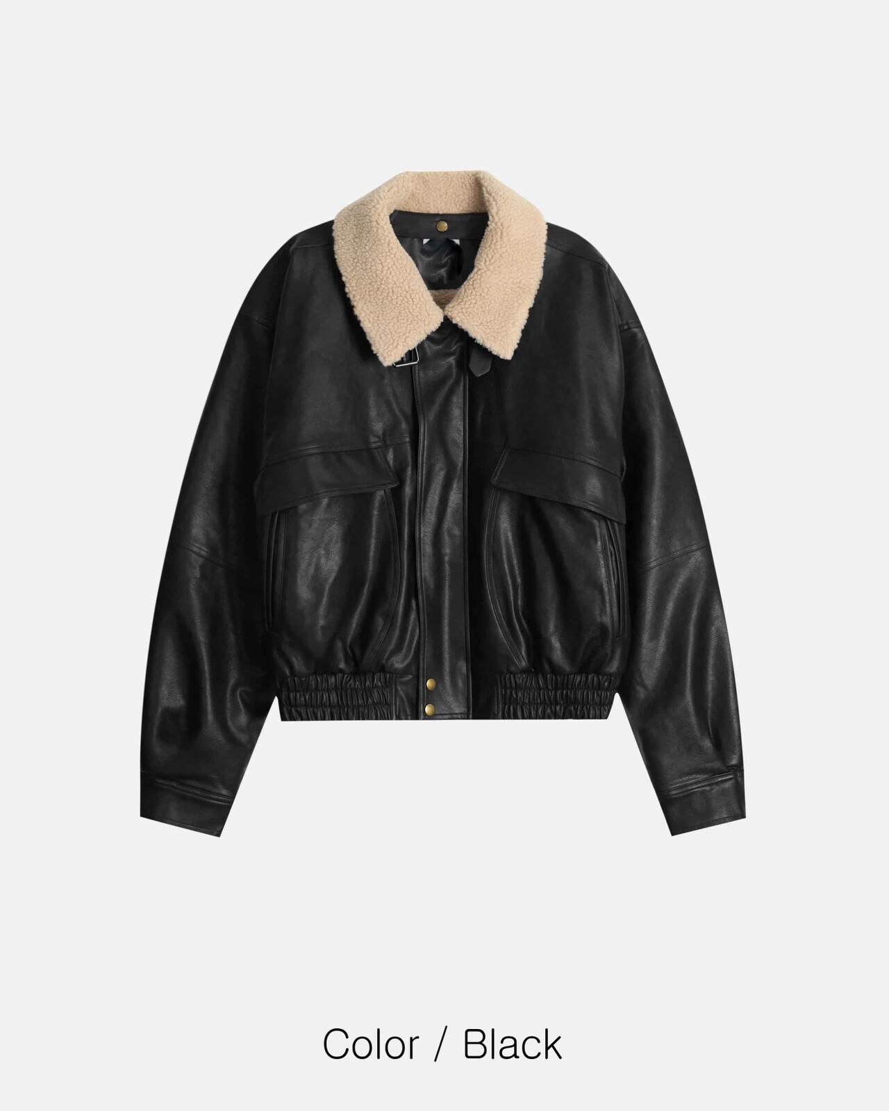 毛毛領拉鍊合成皮褸(絨毛底) Tac-0359JK