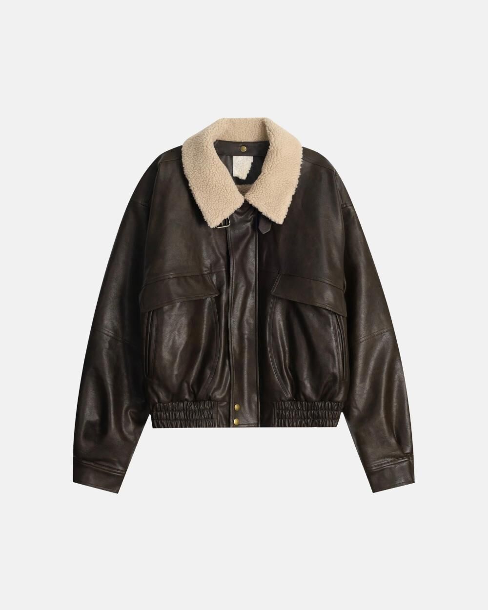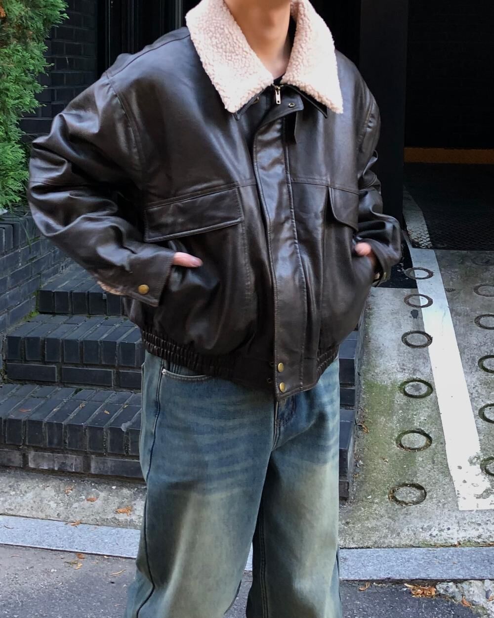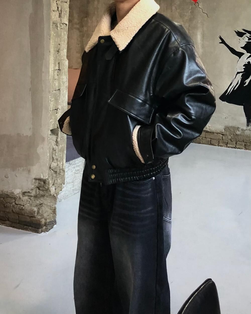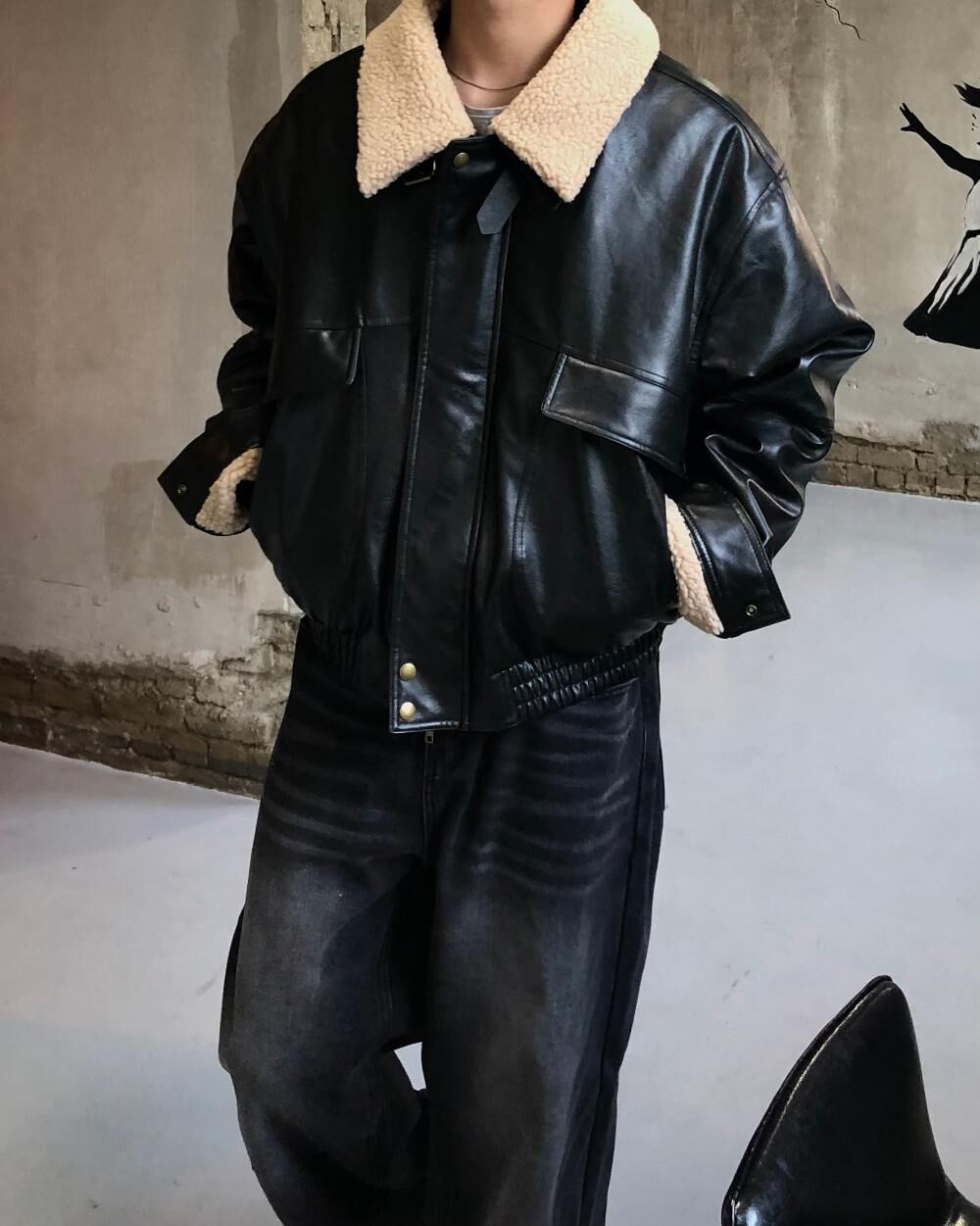毛毛領拉鍊合成皮褸(絨毛底) Tac-0359JK
