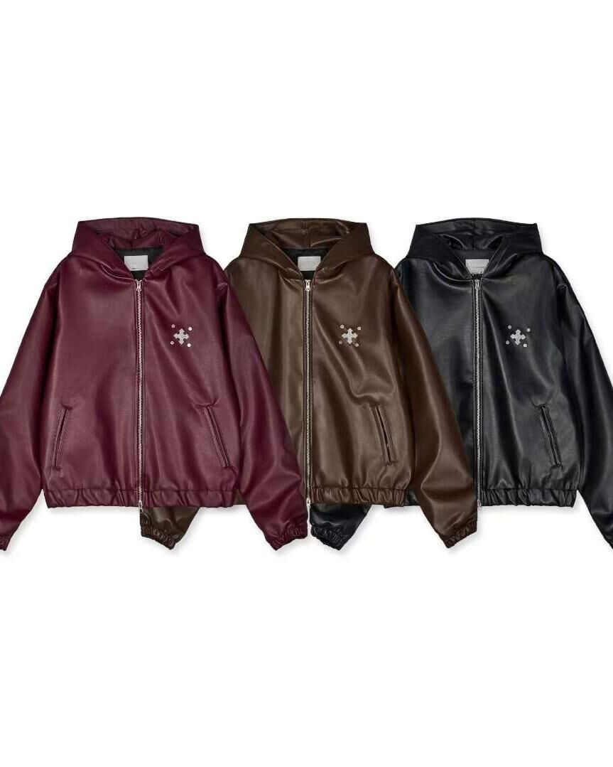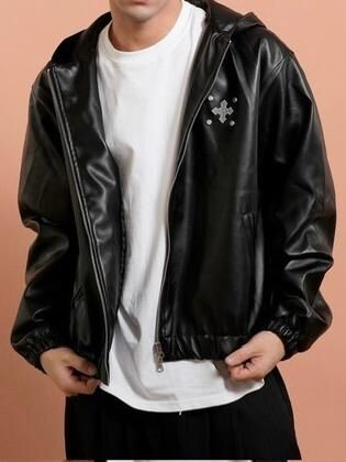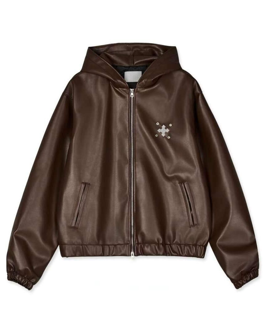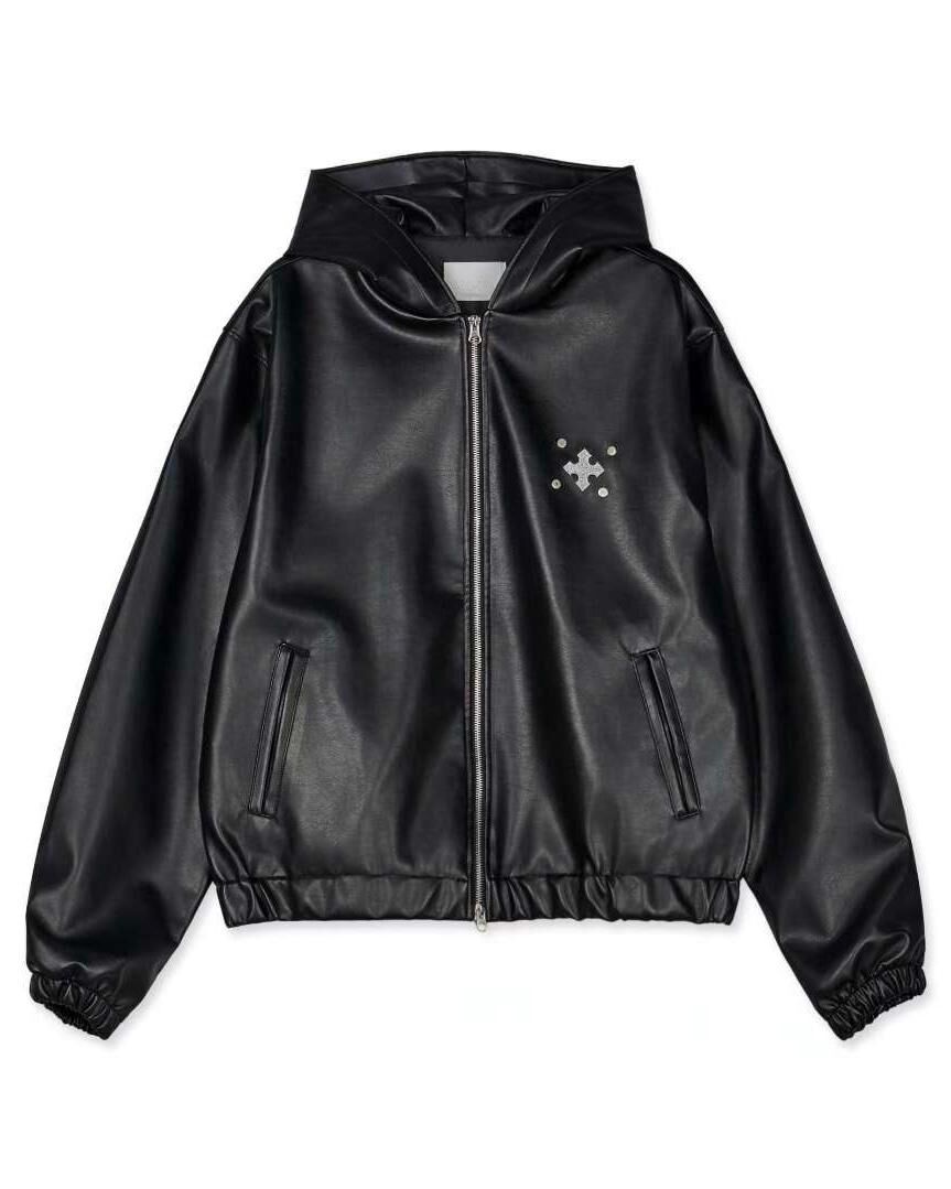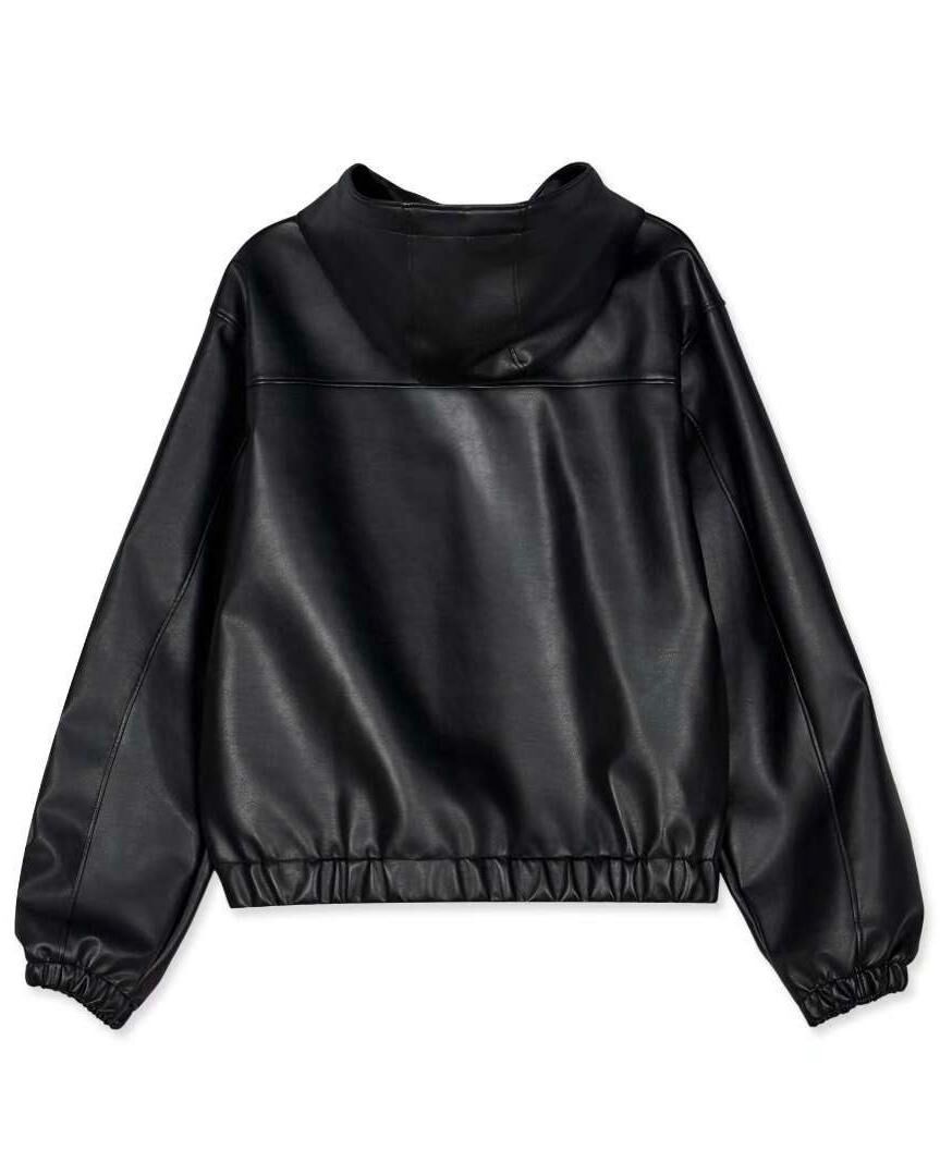 圖案連帽拉鍊合成皮褸 Tac-0363JK