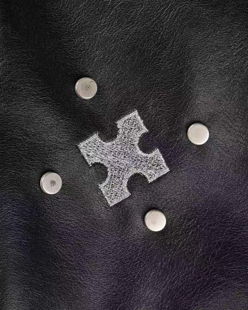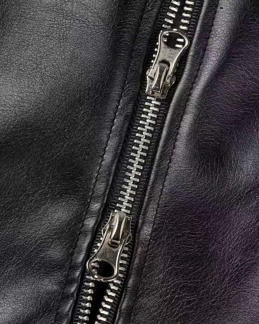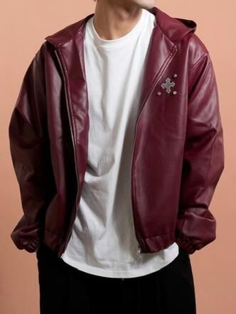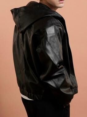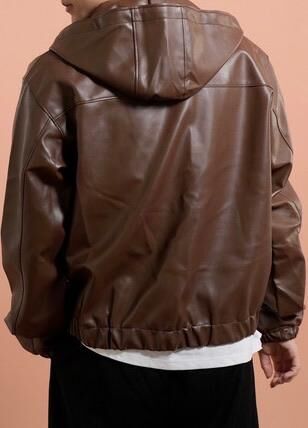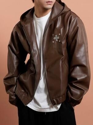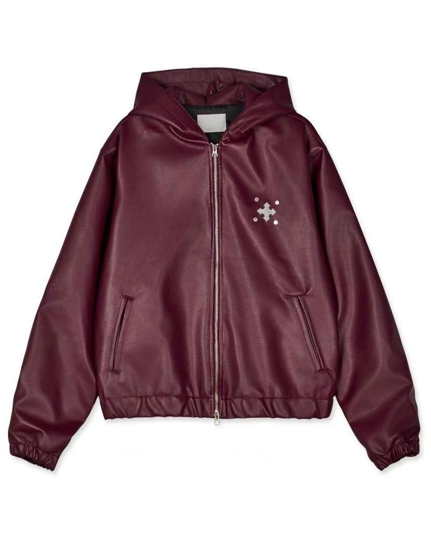 圖案連帽拉鍊合成皮褸 Tac-0363JK