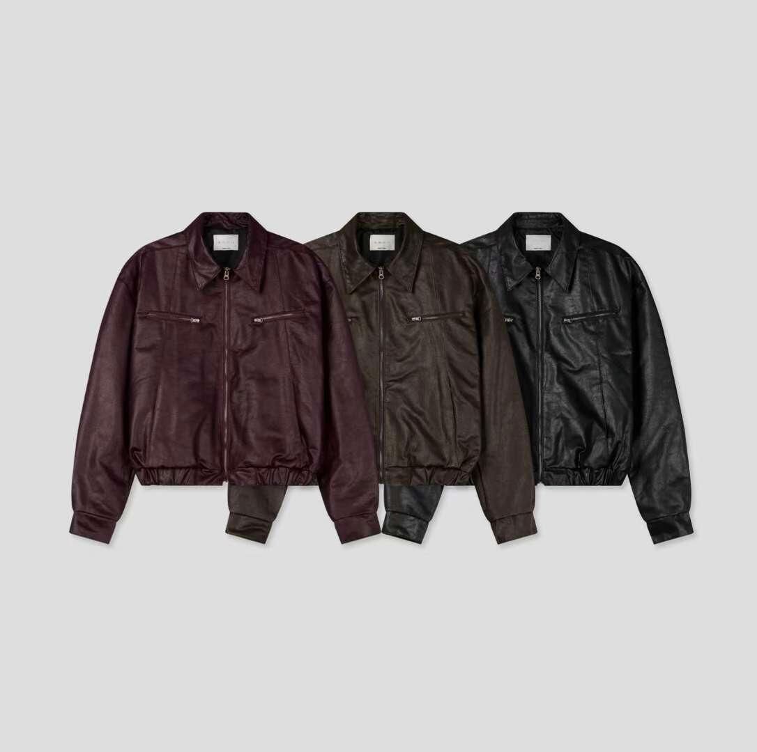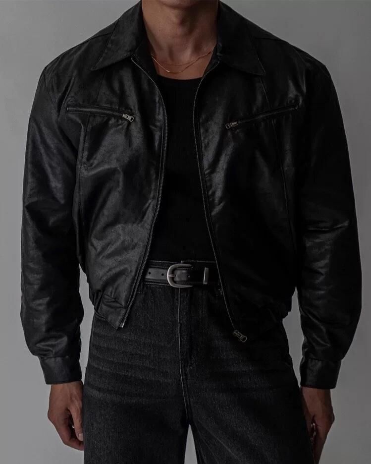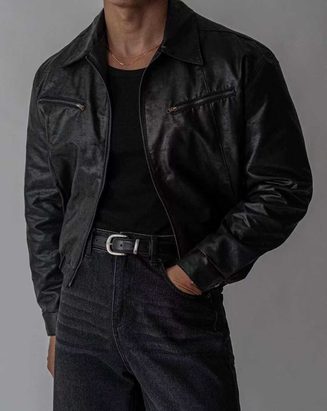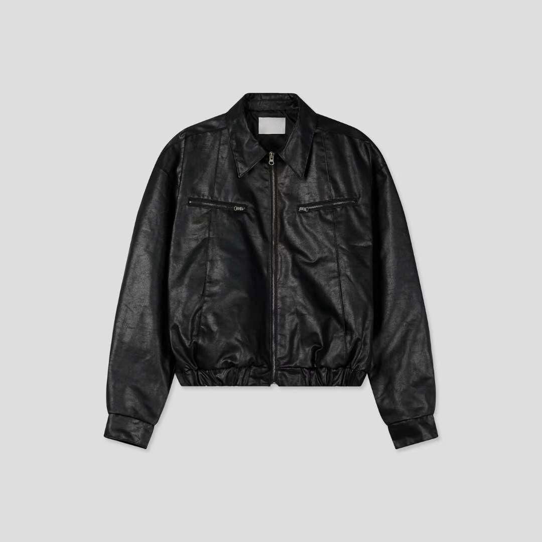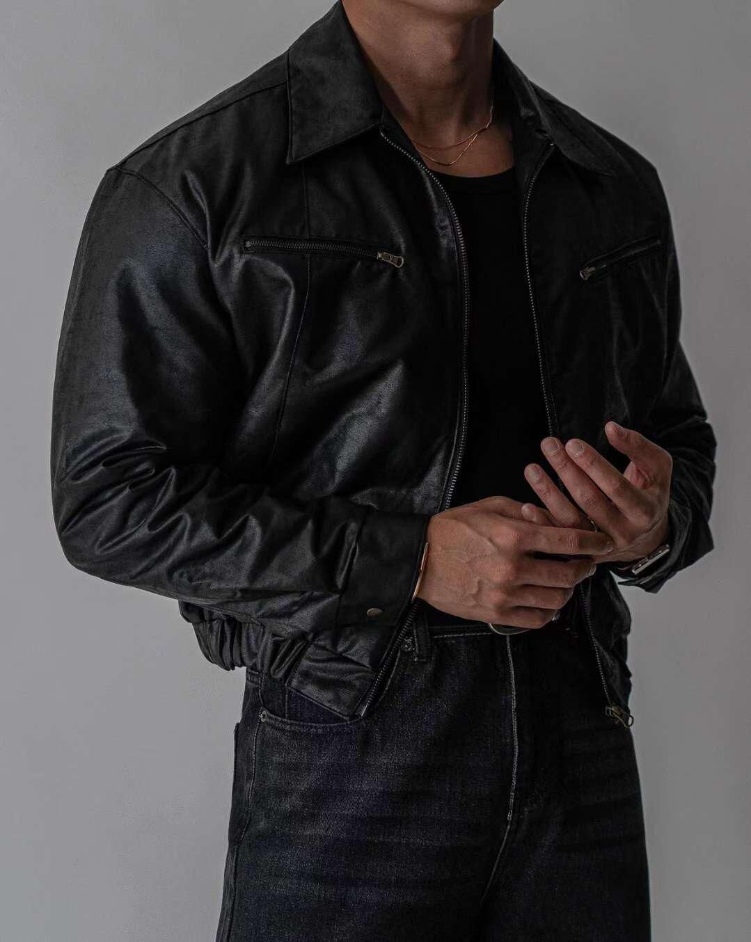 淨色反領拉鍊合成皮褸 Tac-0367JK