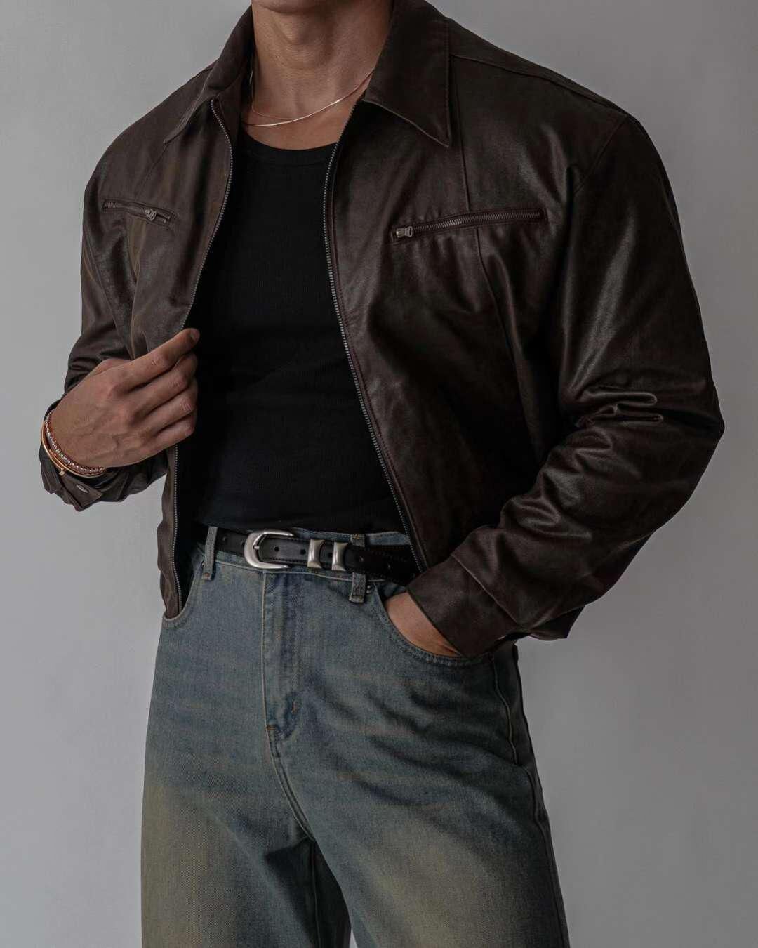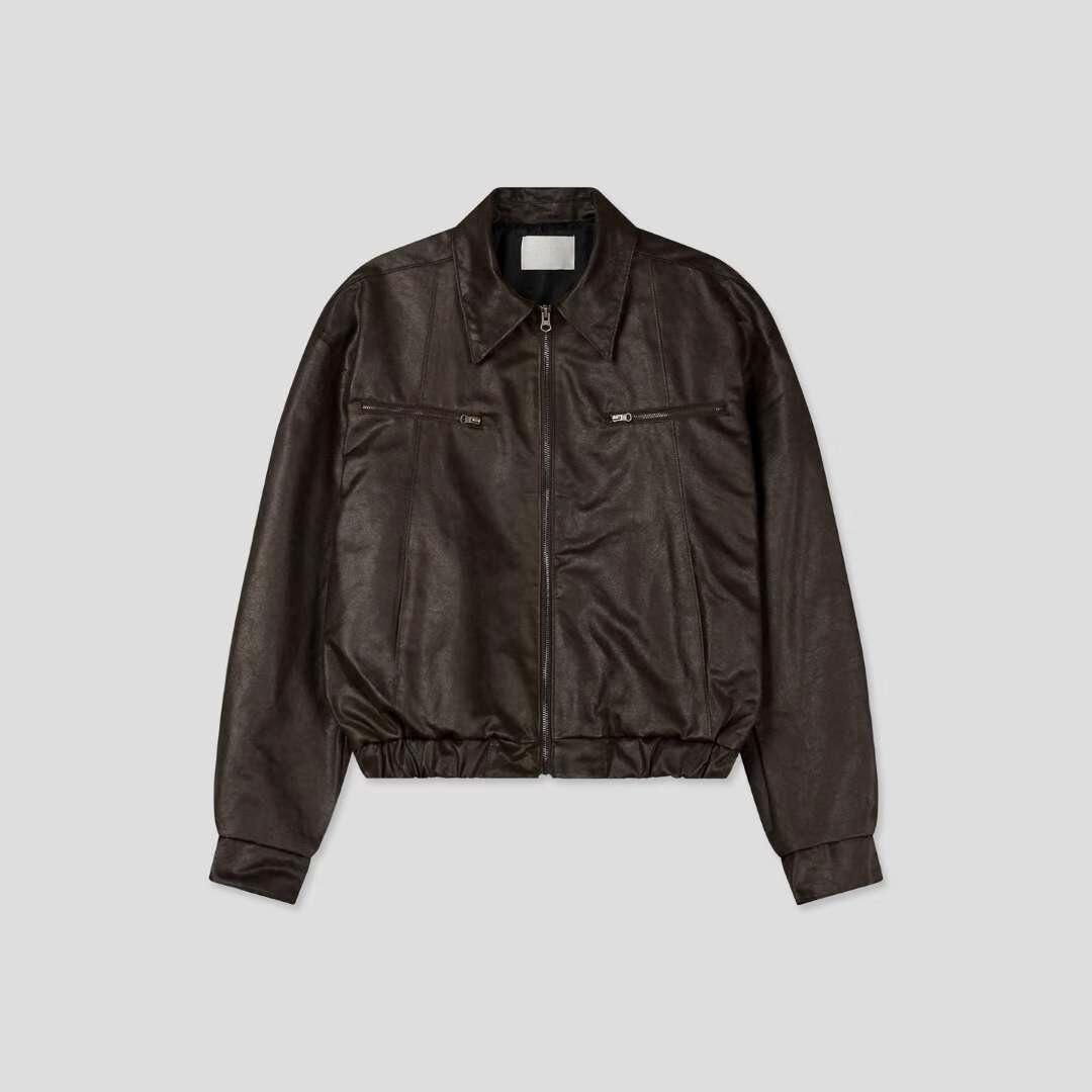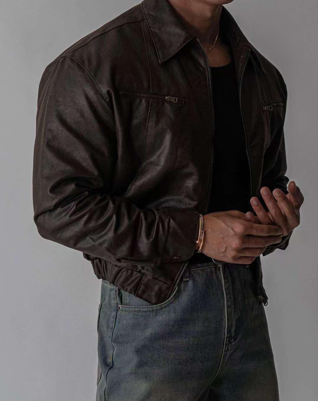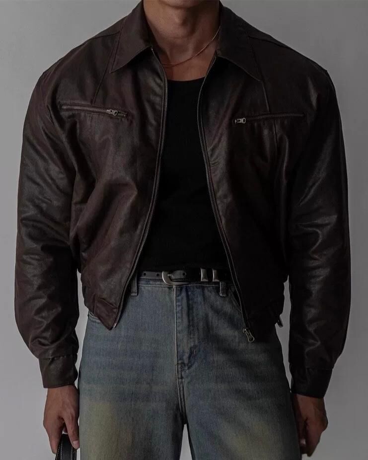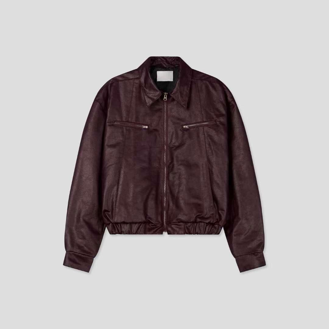淨色反領拉鍊合成皮褸 Tac-0367JK