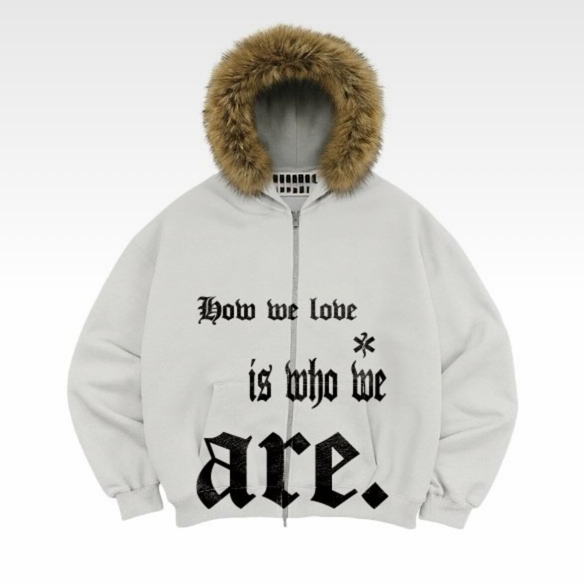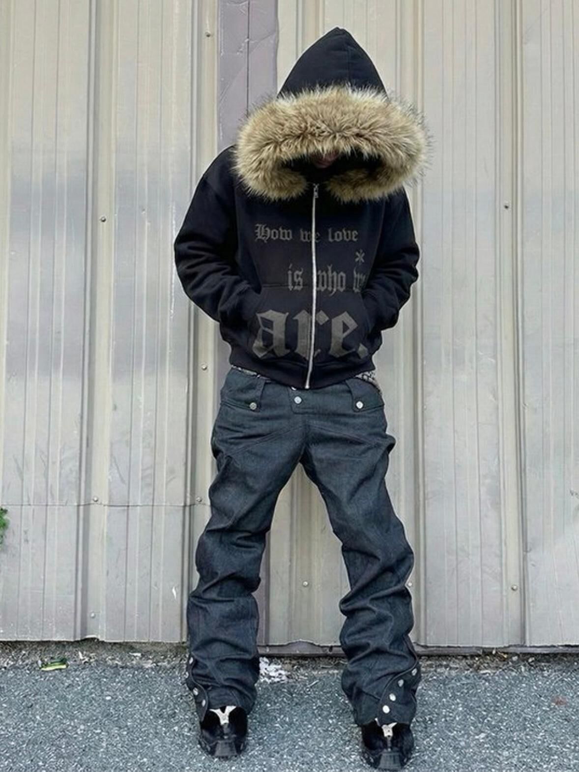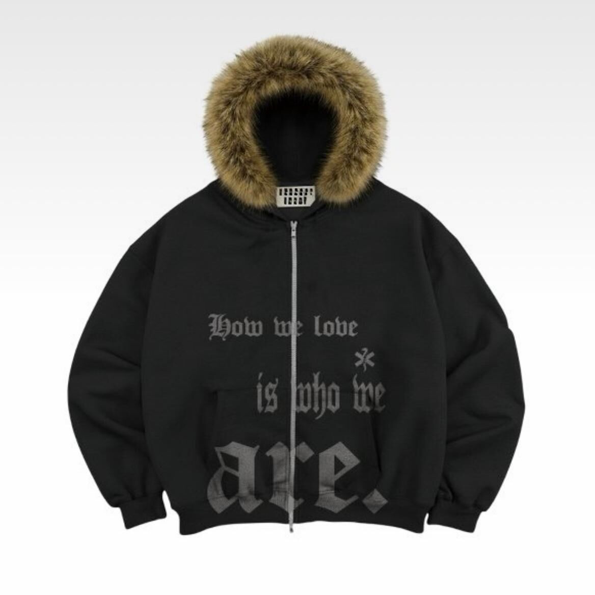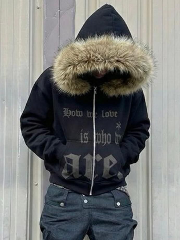 毛毛帽英文字拉鍊外套 TAC-0378JK