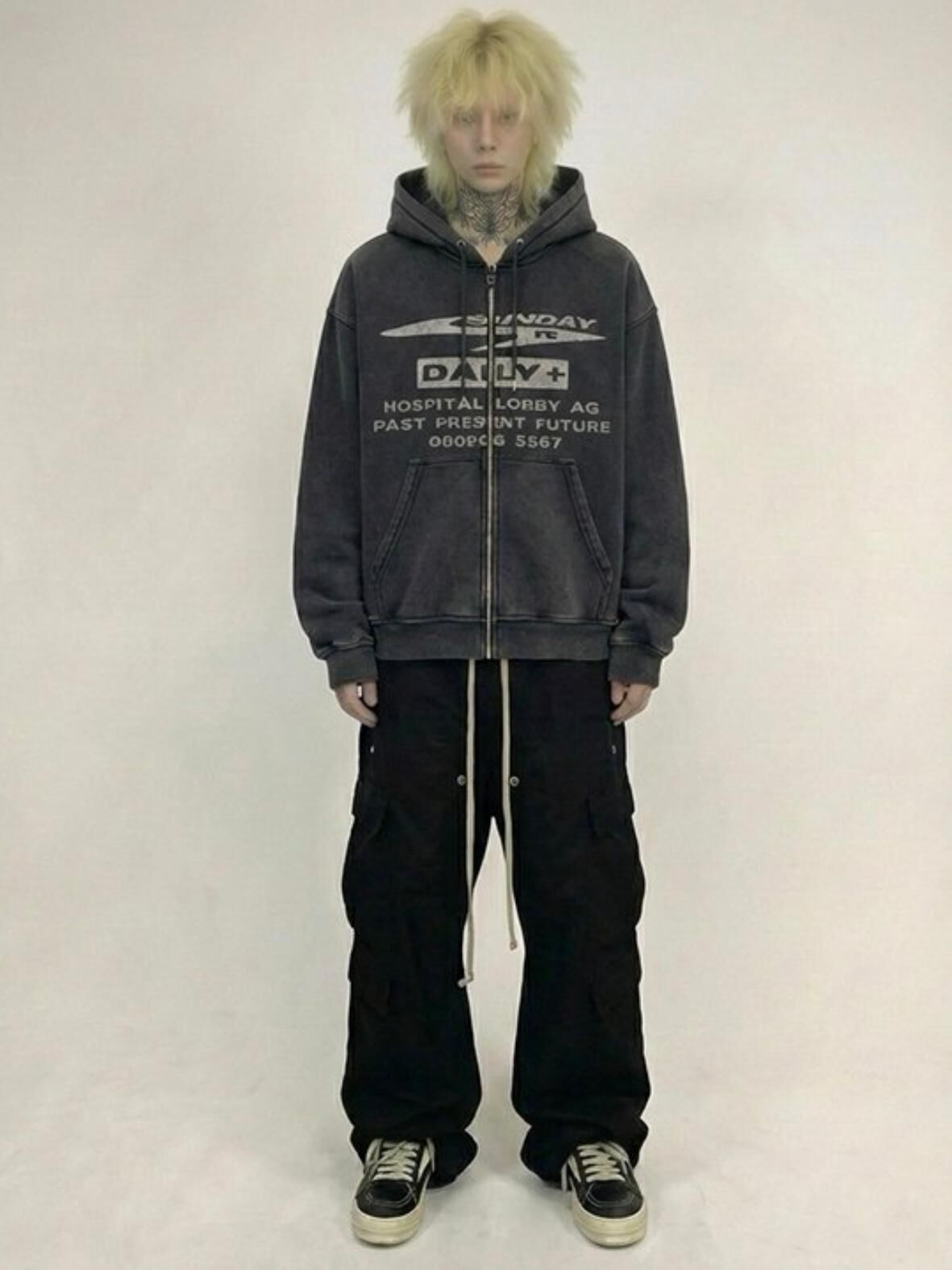 洗水英文字連帽拉鍊外套 TAC-0386JK