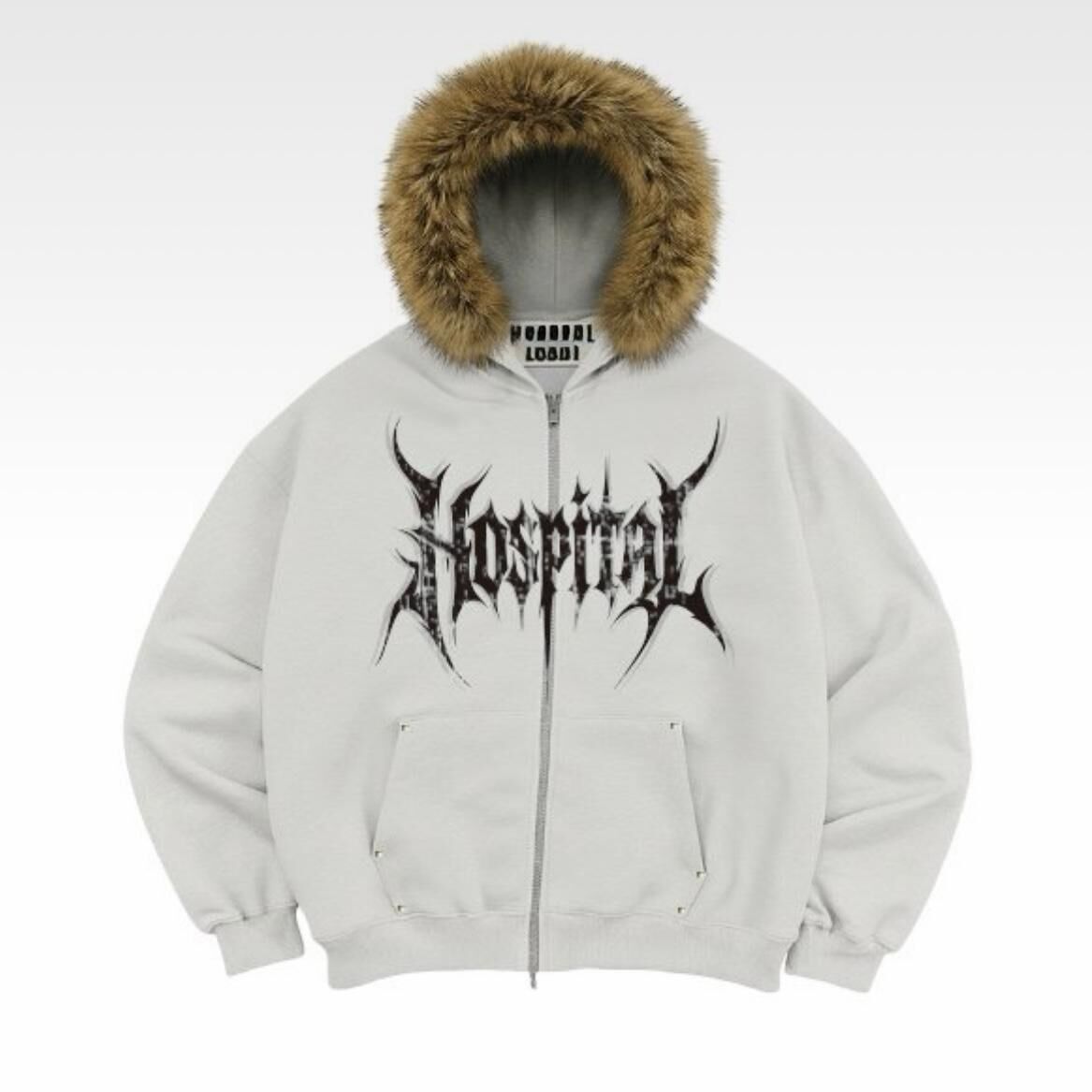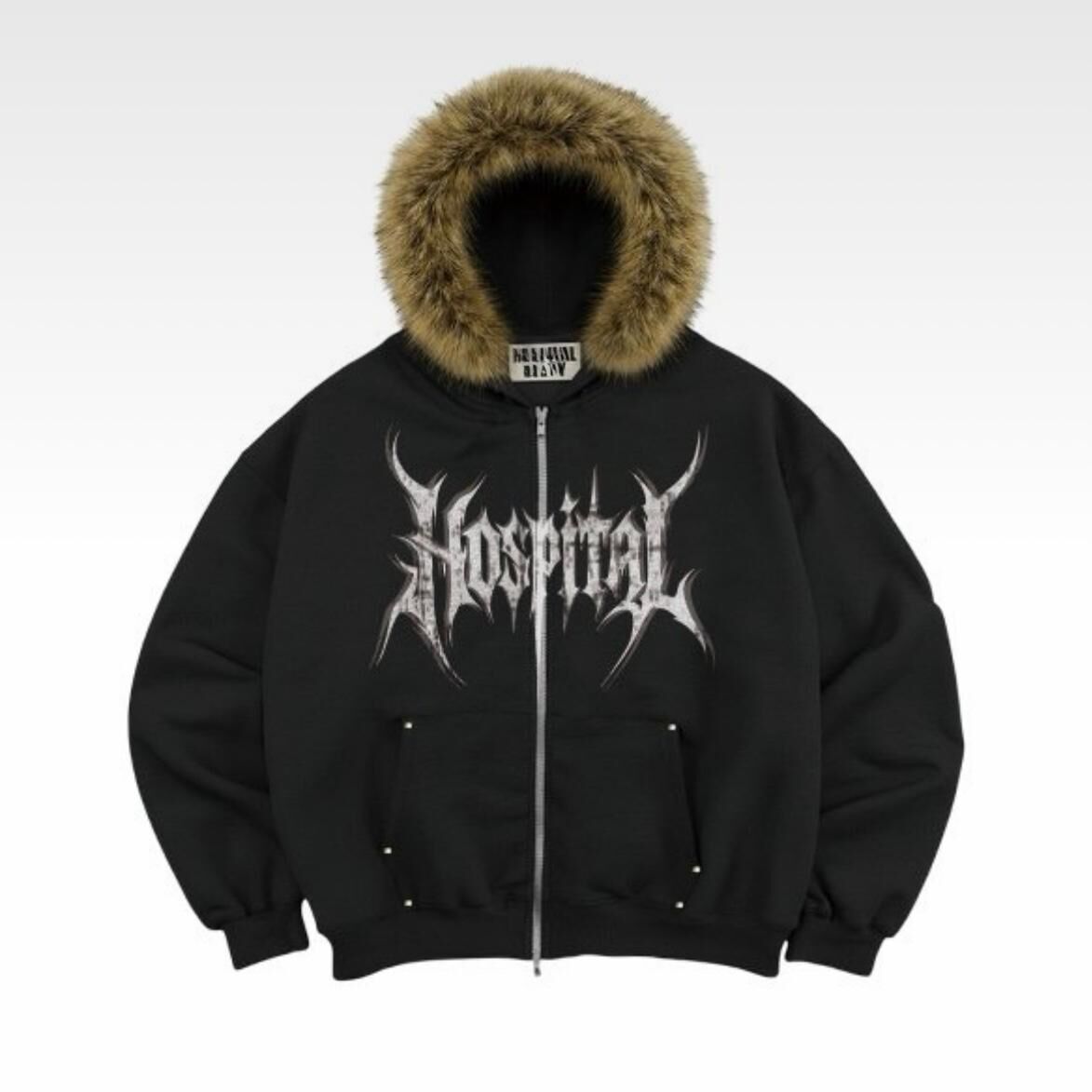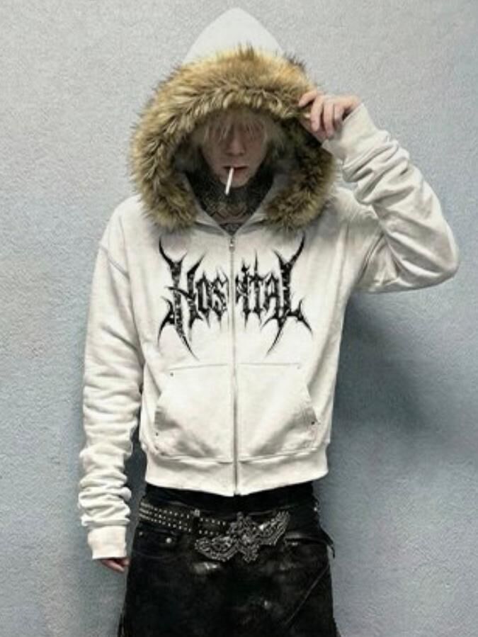 毛毛帽英文字拉鍊外套 TAC-0387JK