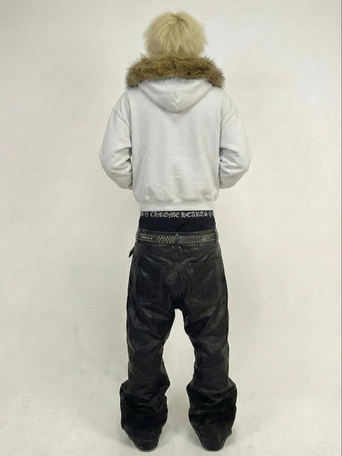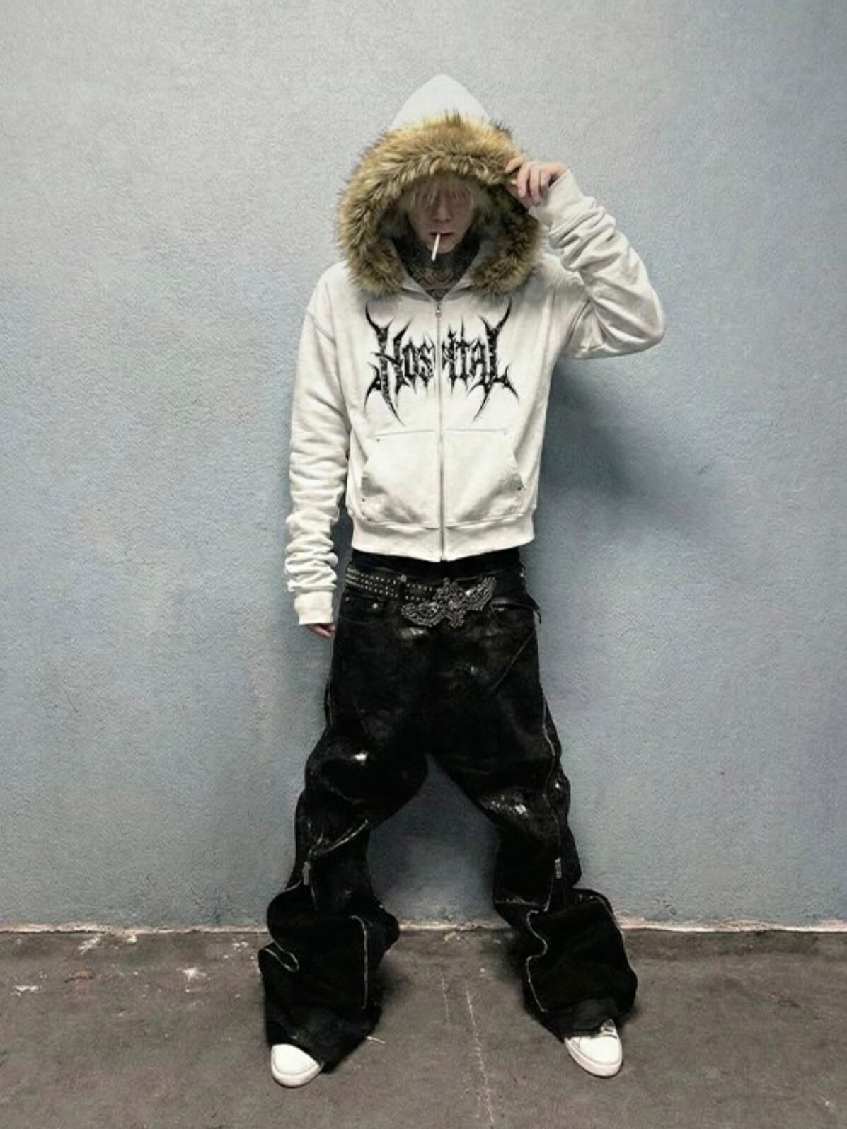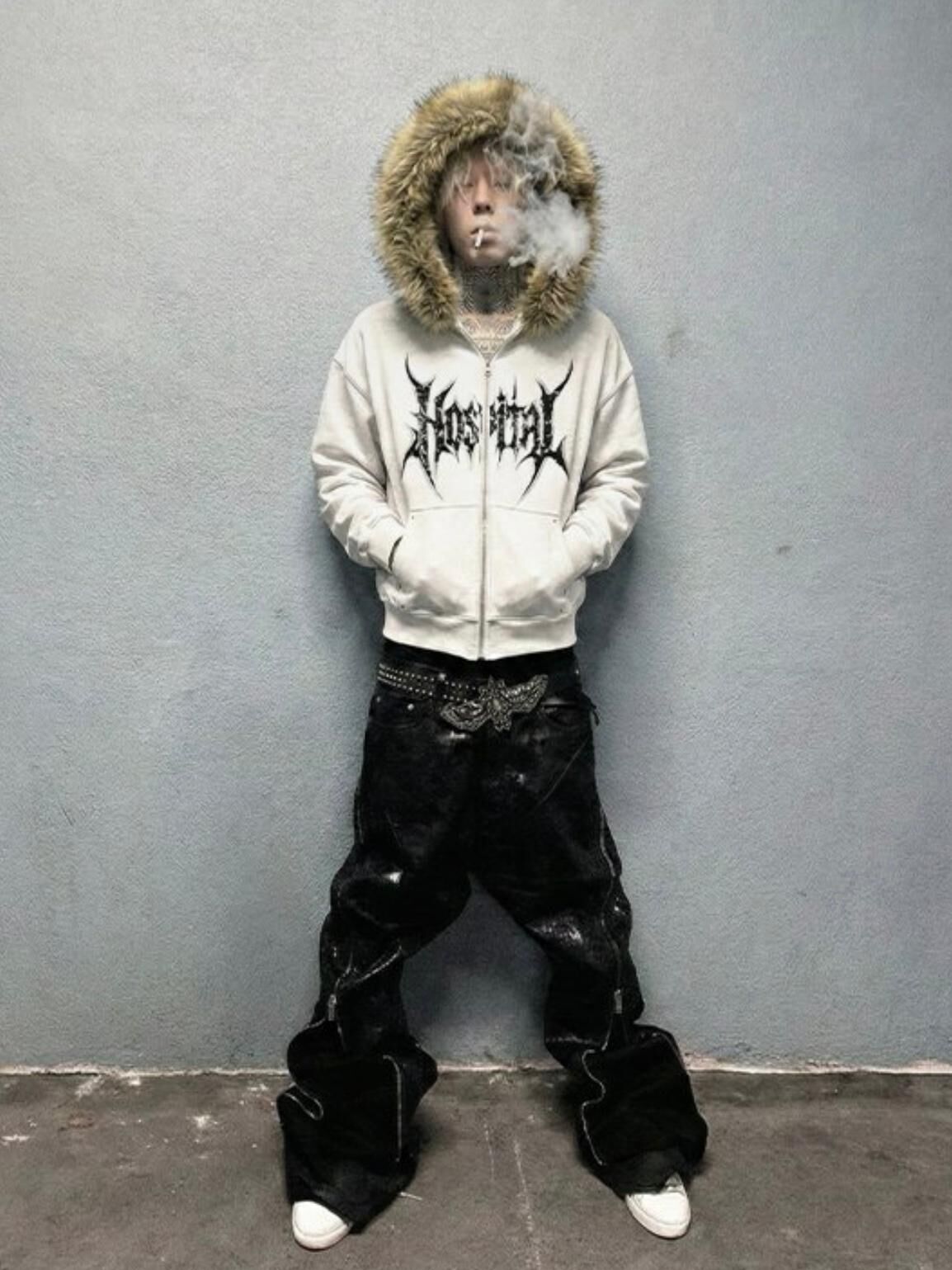 毛毛帽英文字拉鍊外套 TAC-0387JK