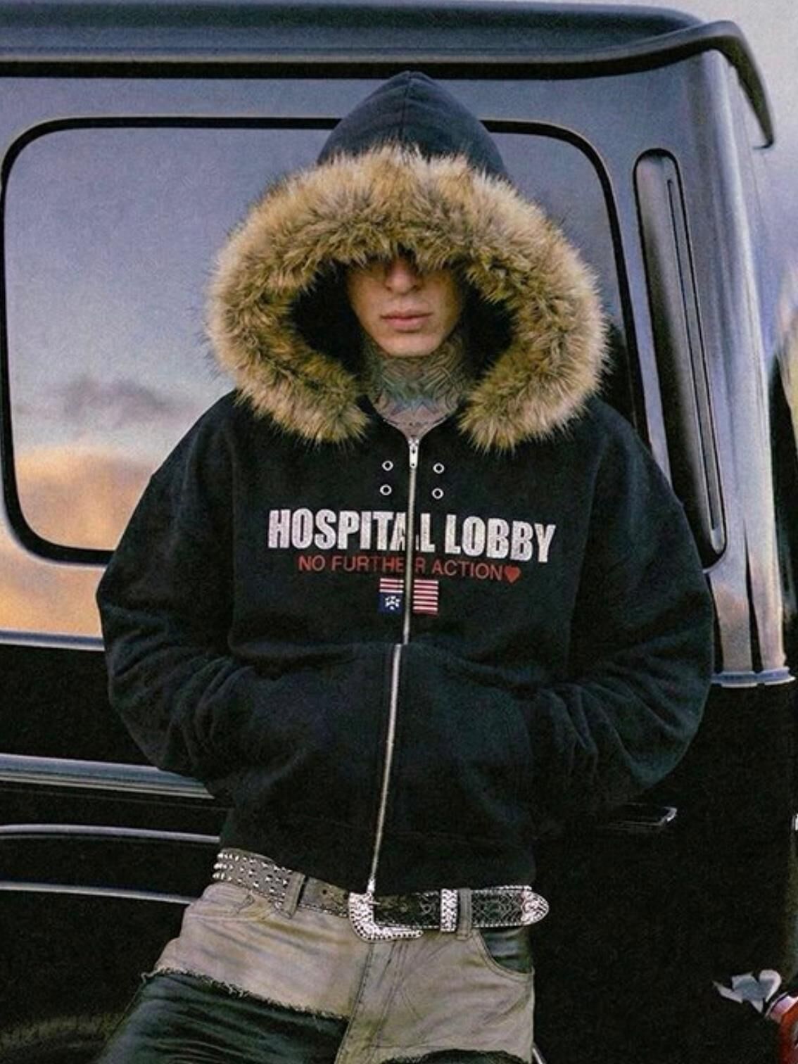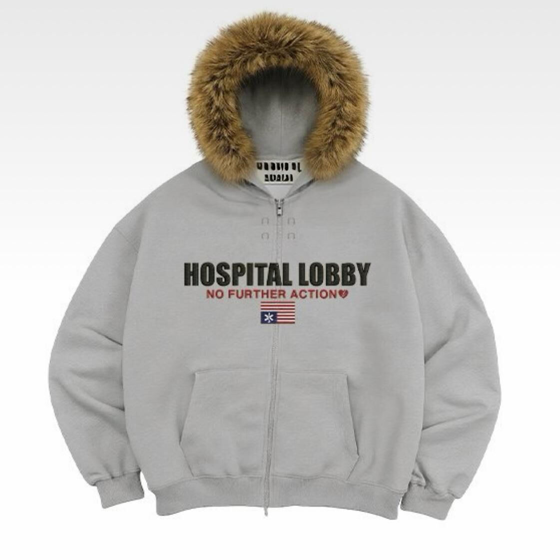 毛毛帽英文字拉鍊外套(薄抓毛底) TAC-0388JK