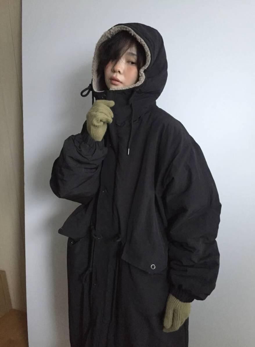 淨色連帽拉鍊長褸(夾棉) TAC-0389JK