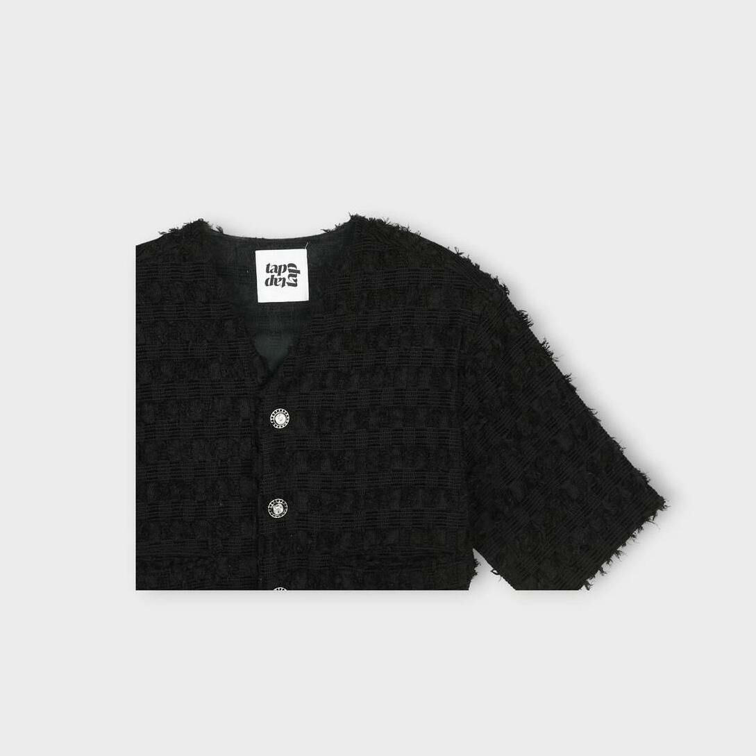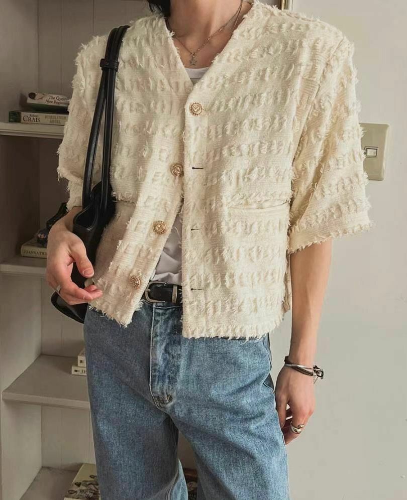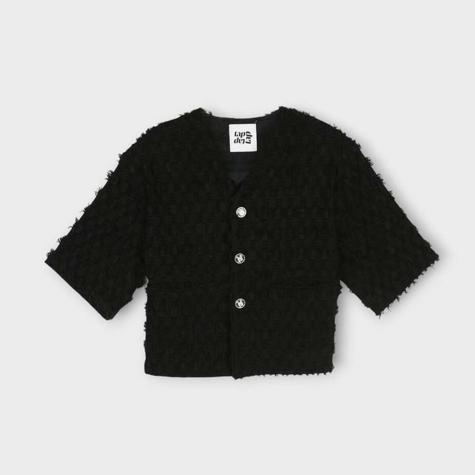 淨色暗紋短袖開胸外套 taptaptap-035JK