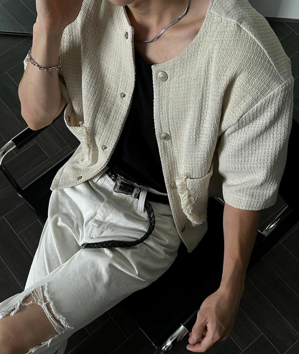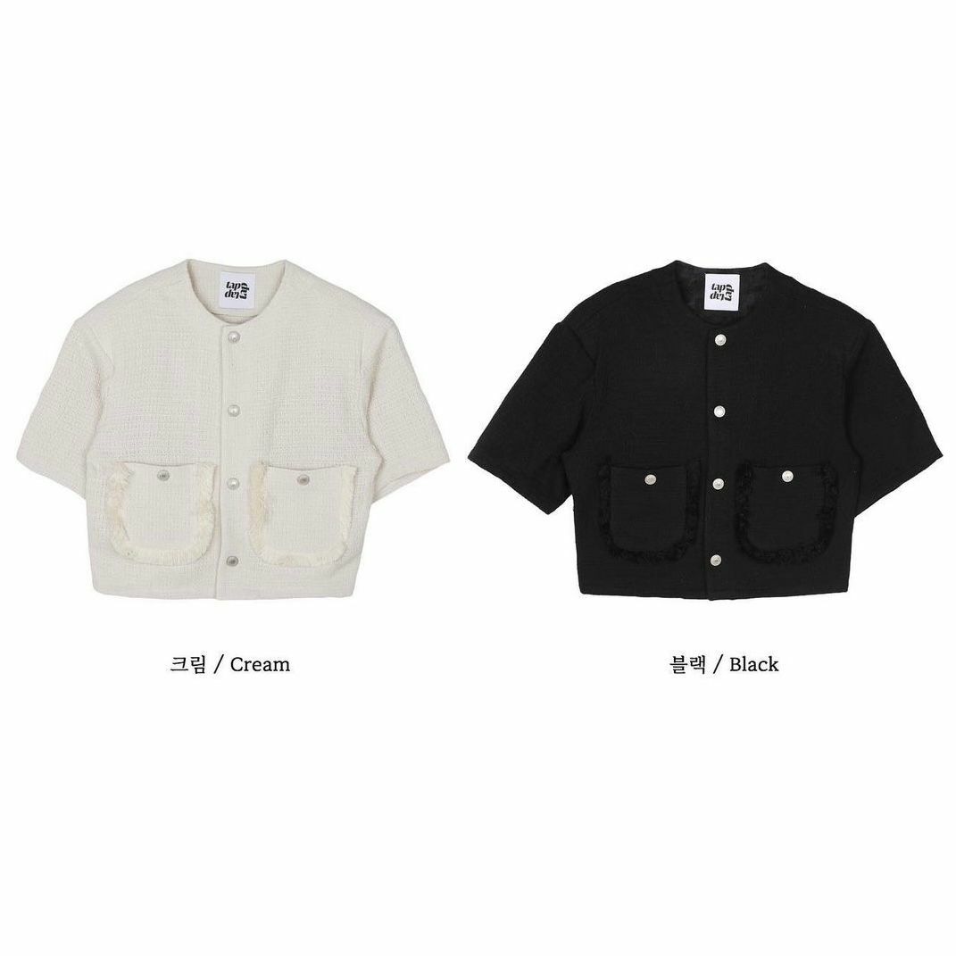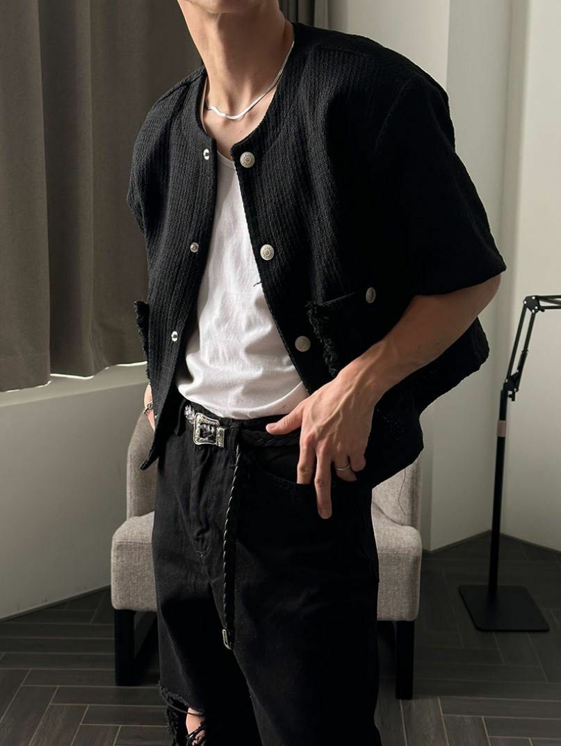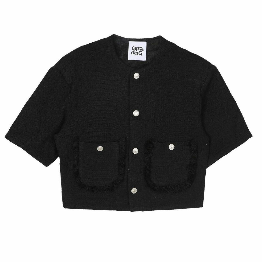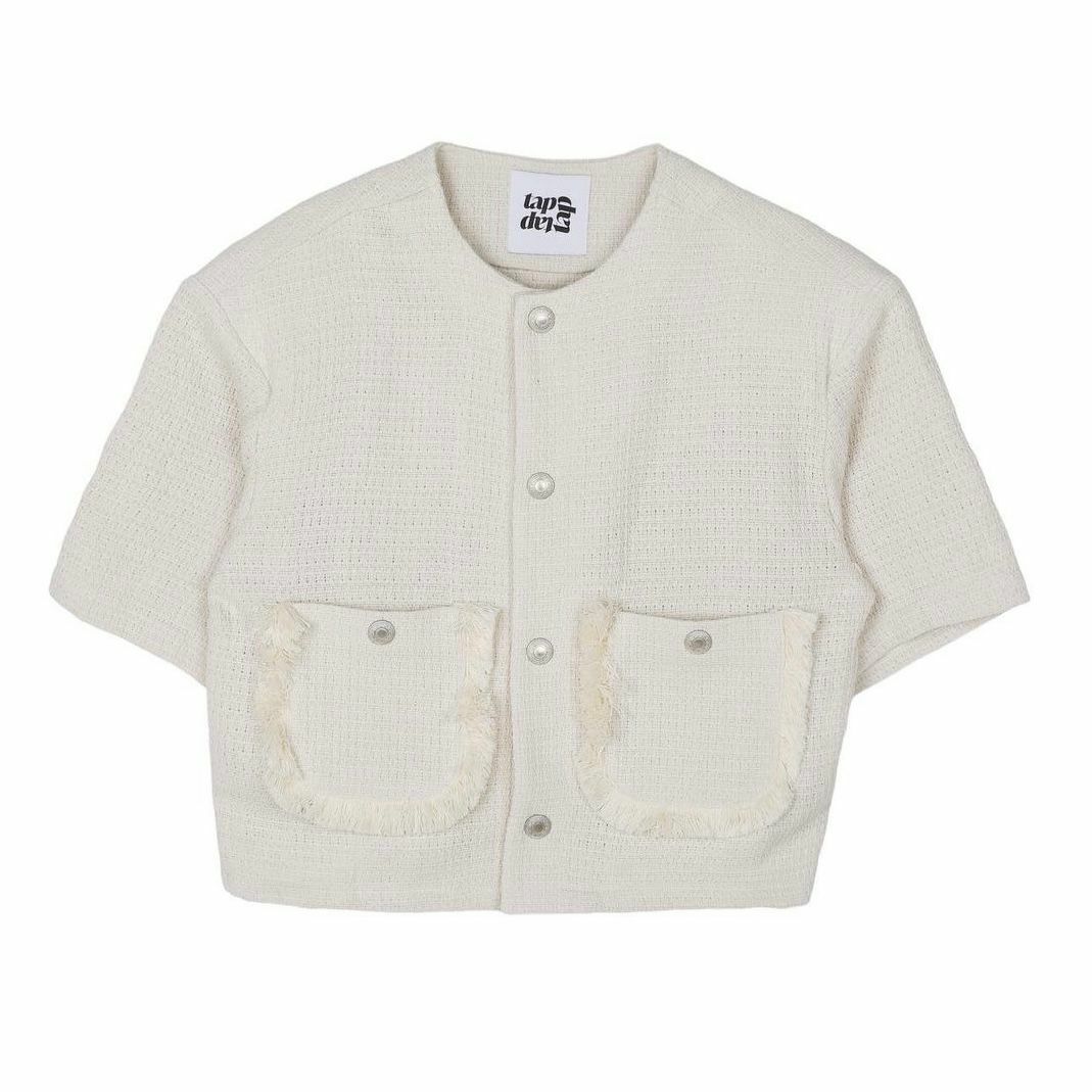 圓領暗紋短袖開胸外套 taptaptap-057JK