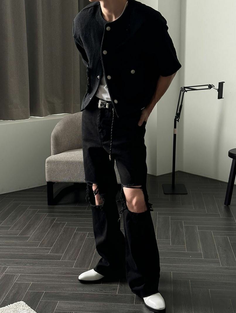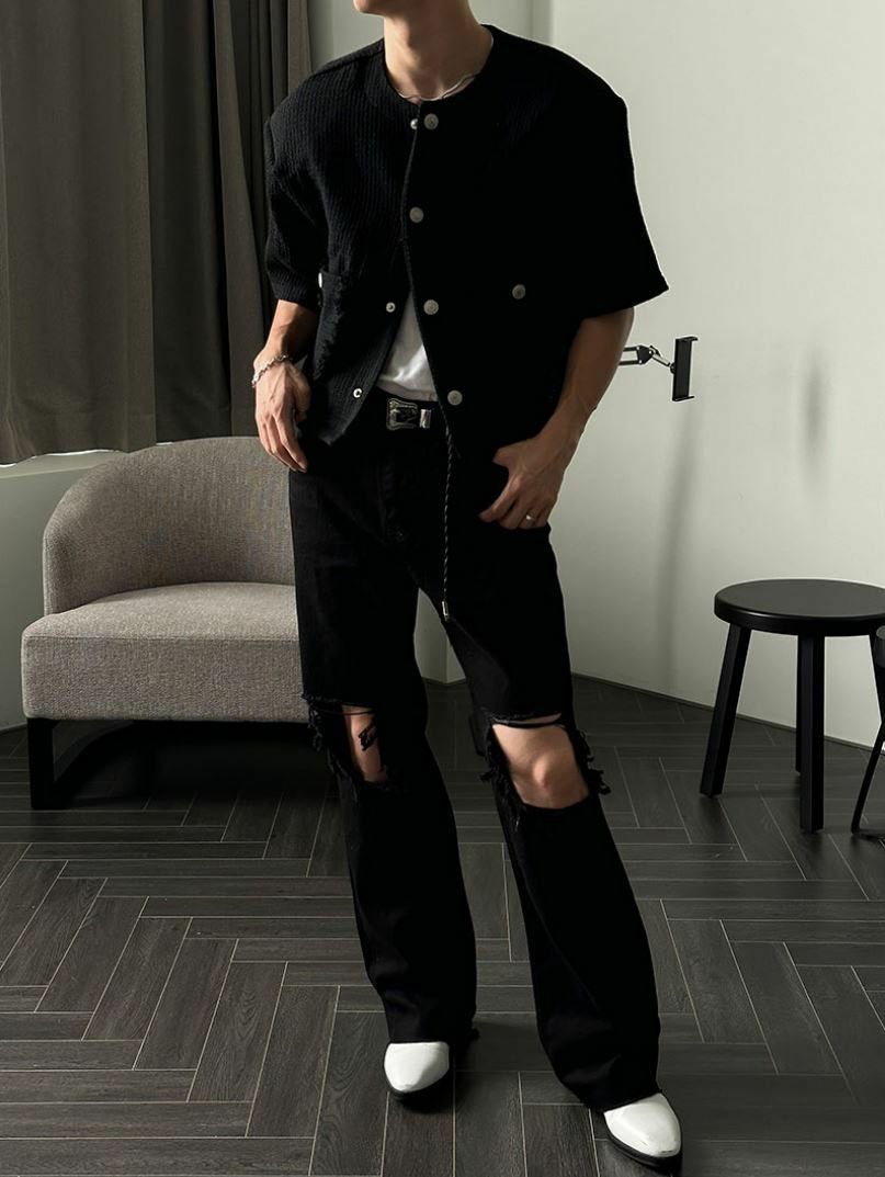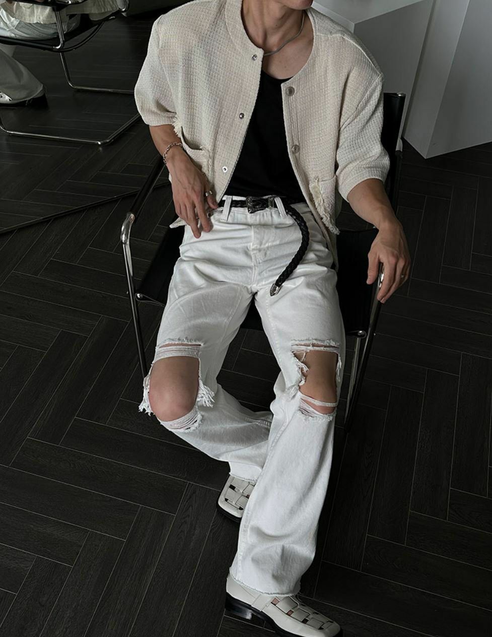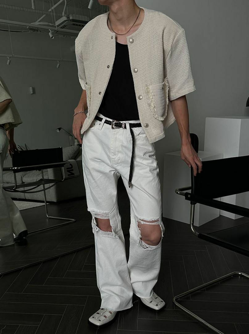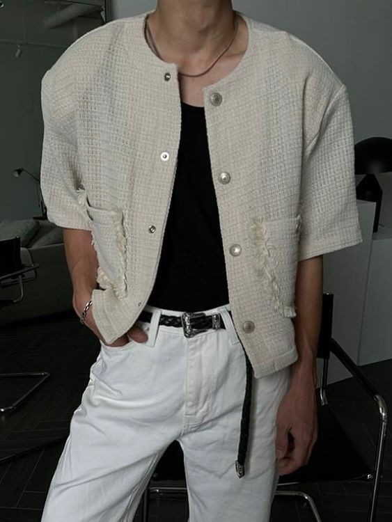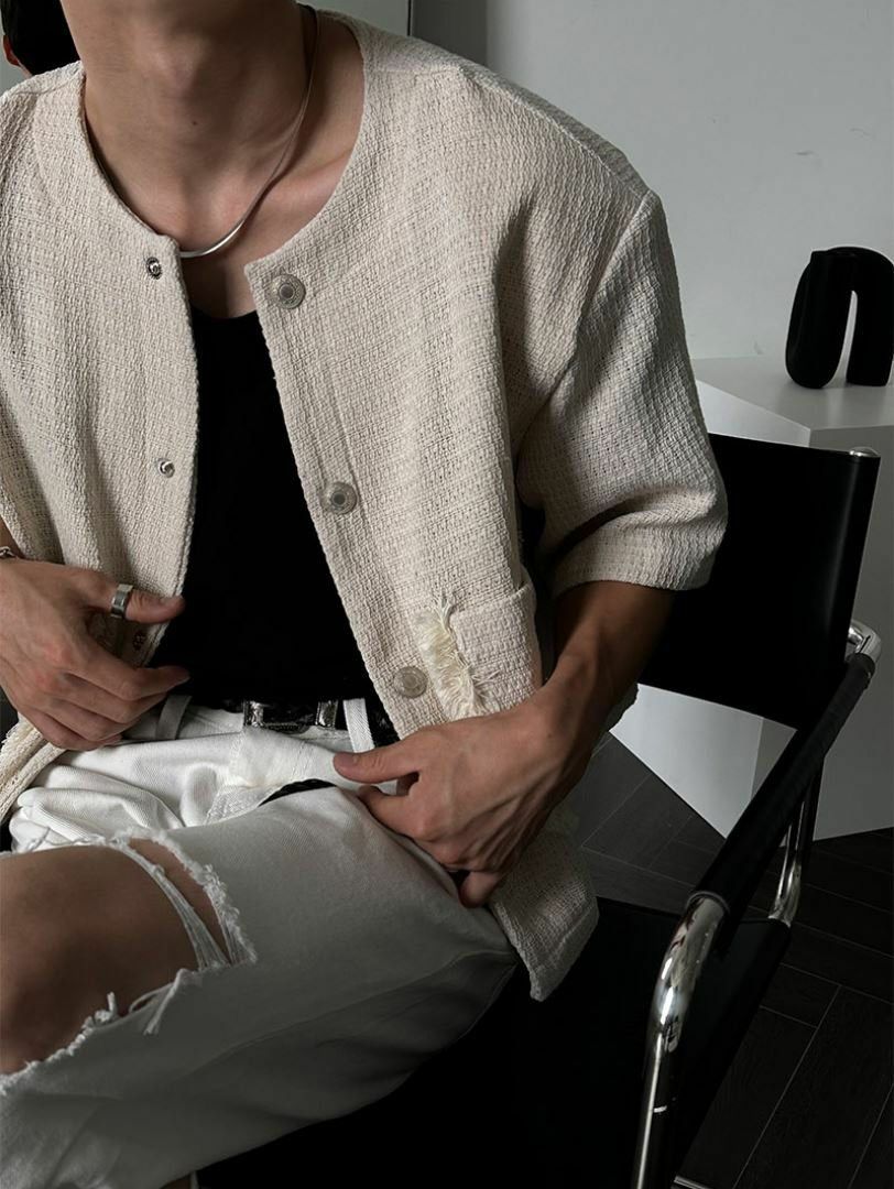 圓領暗紋短袖開胸外套 taptaptap-057JK