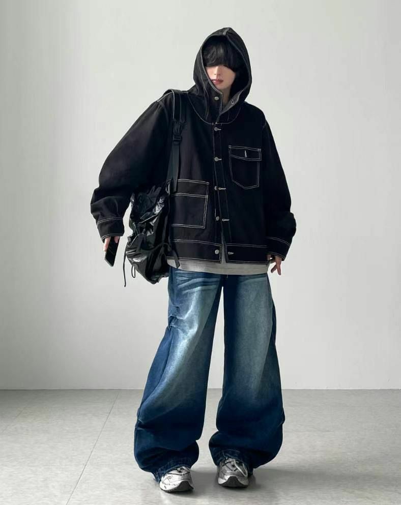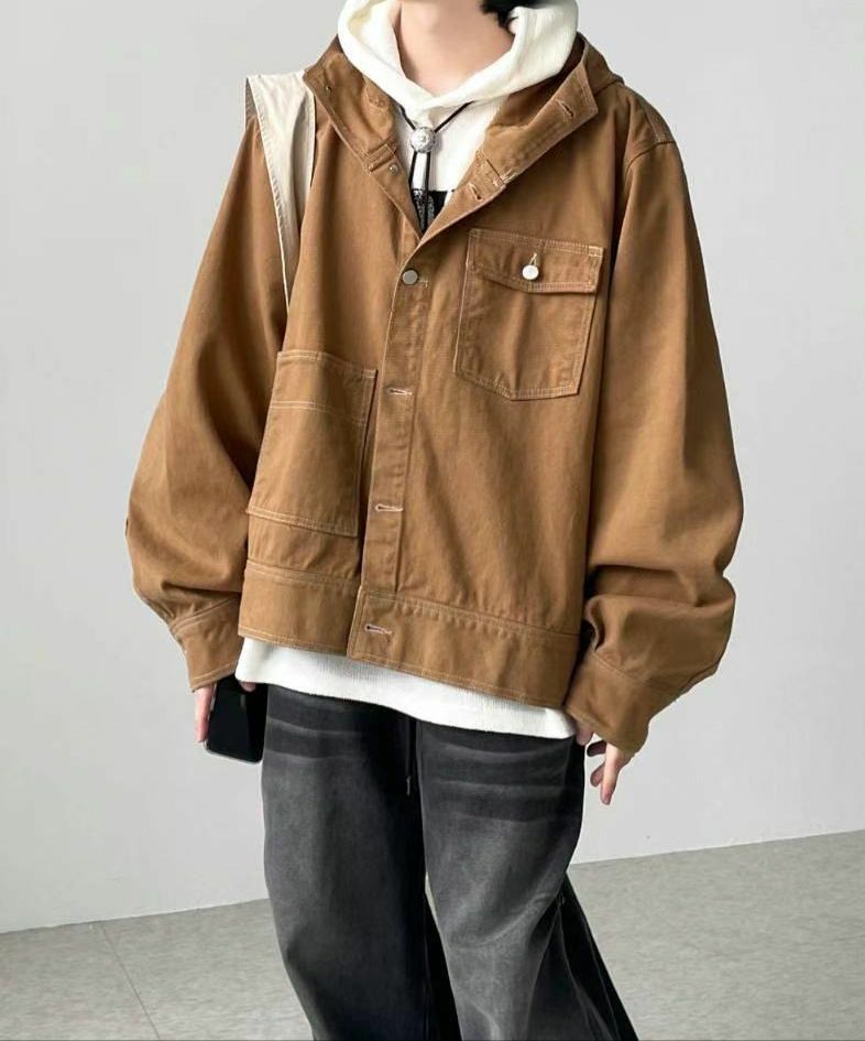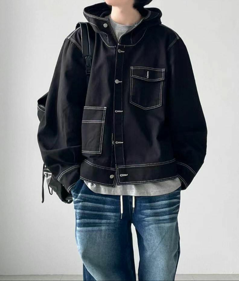 淨色明線連帽開胸外套 taptaptap-059JK