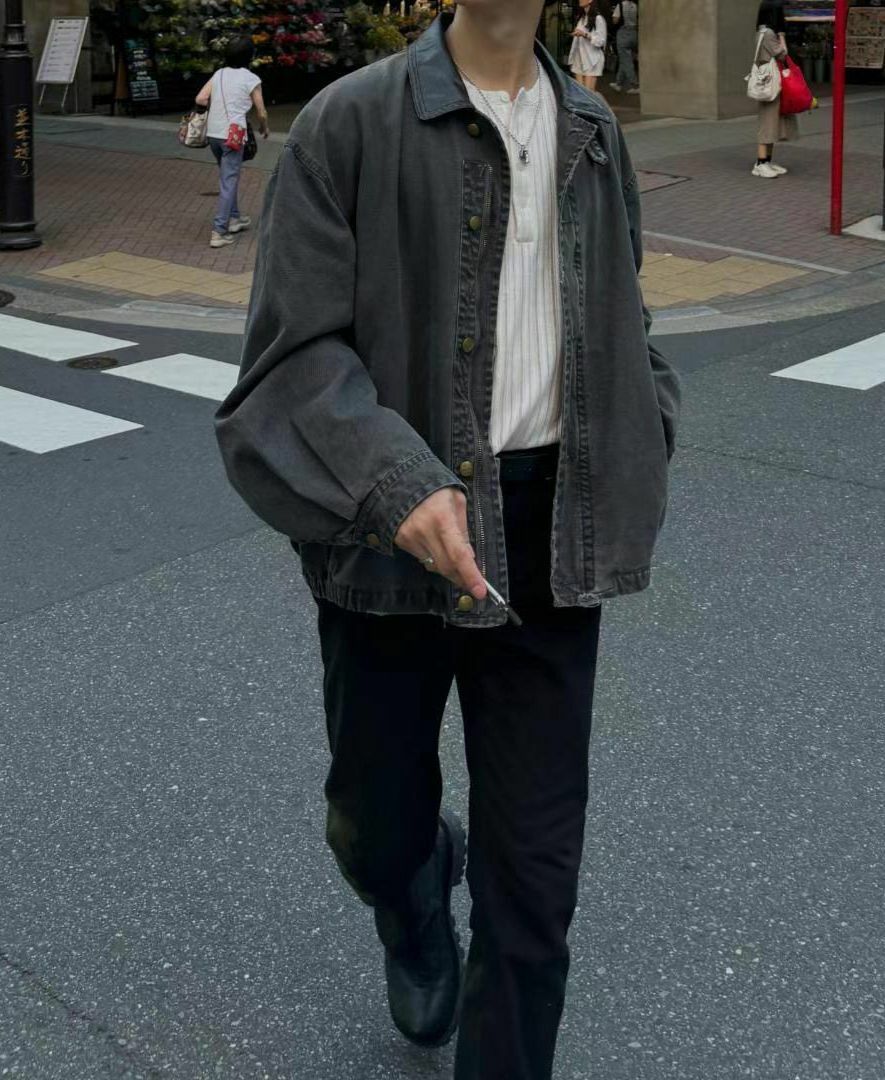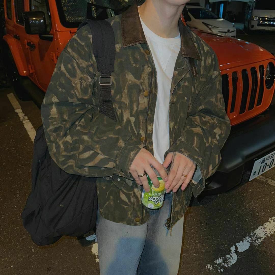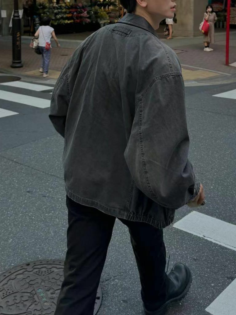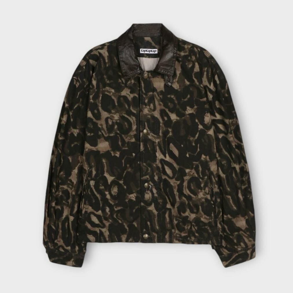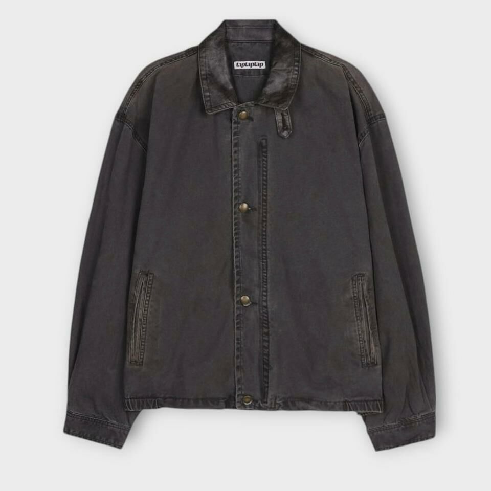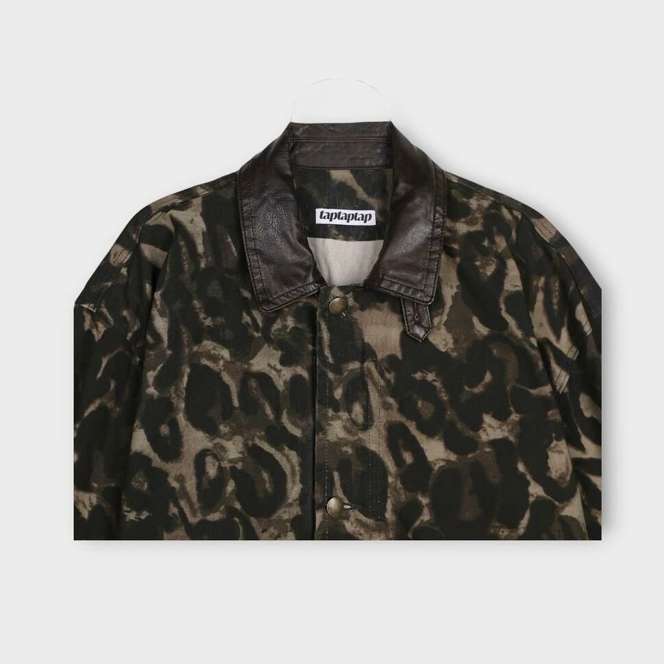 亂紋/淨色皮領拉鍊外套 taptaptap-061JK