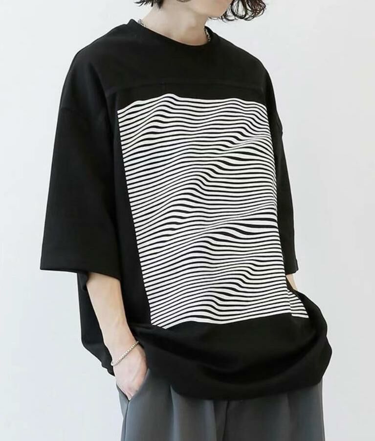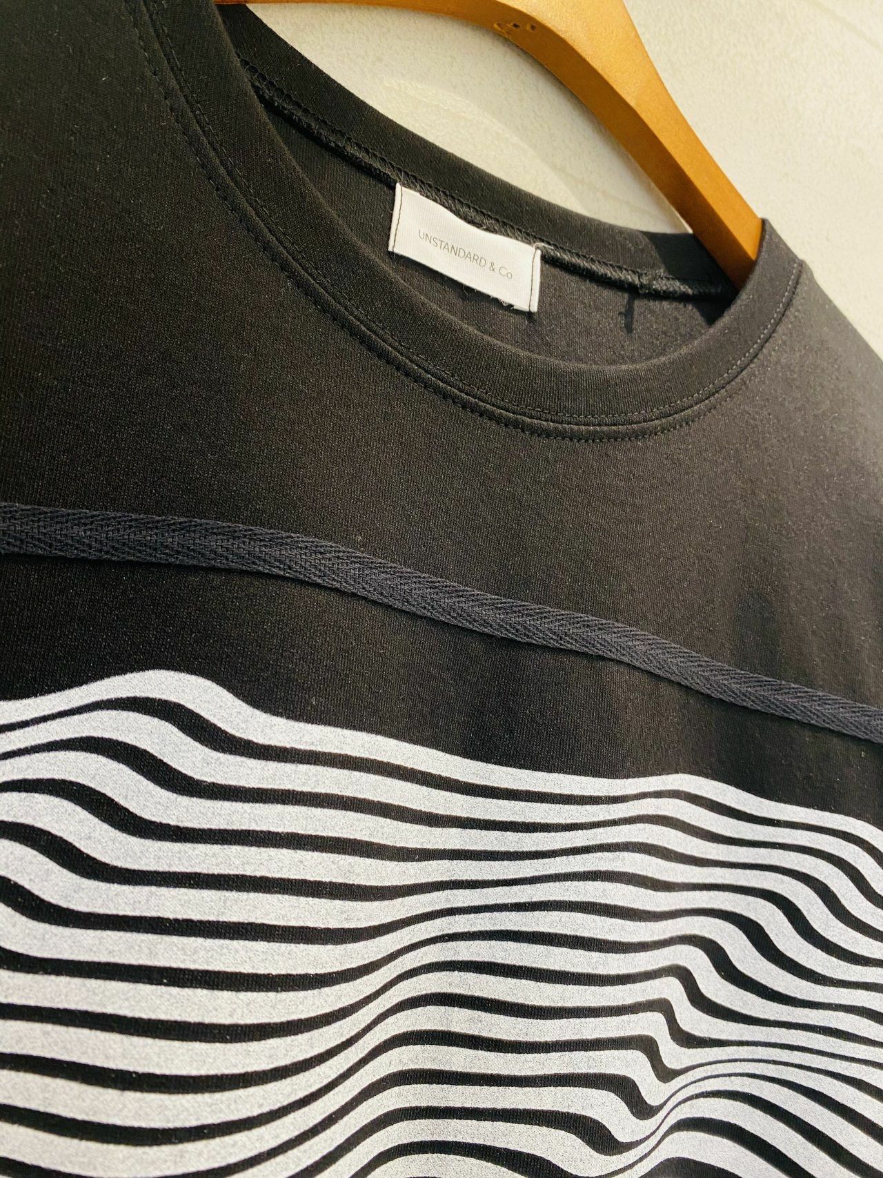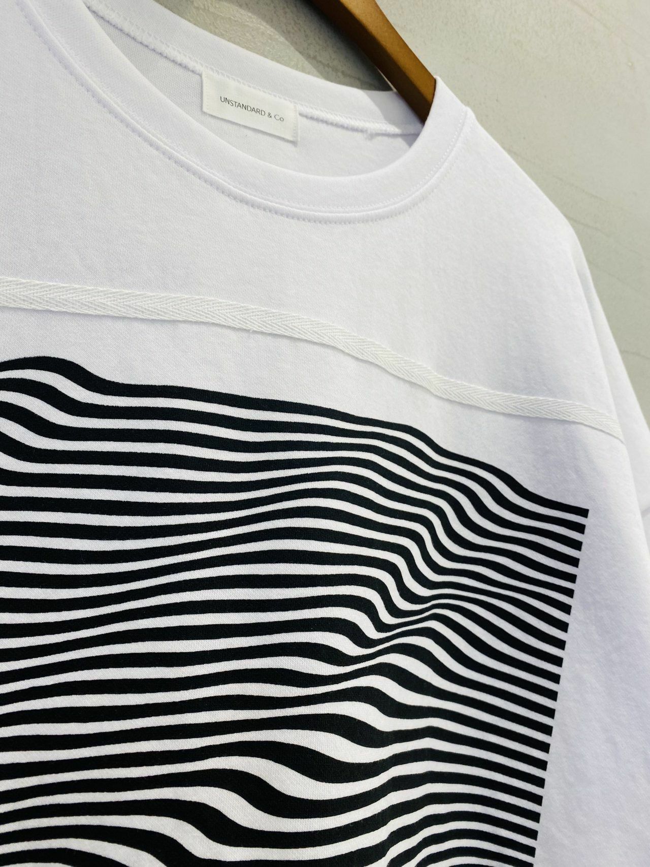 Oversize線條圖案英文字短袖Tee UNSTANDARD-066T