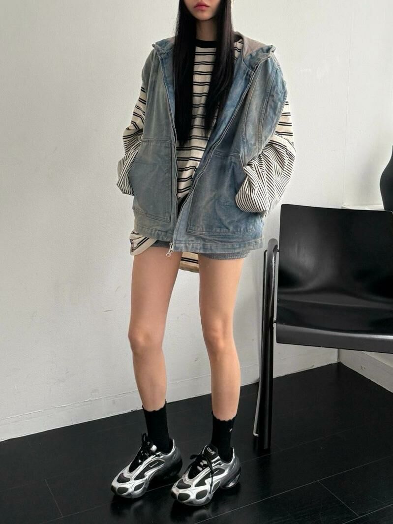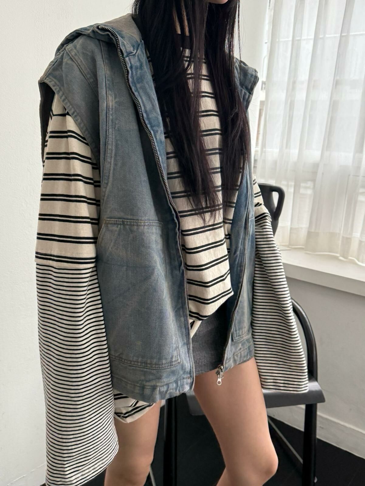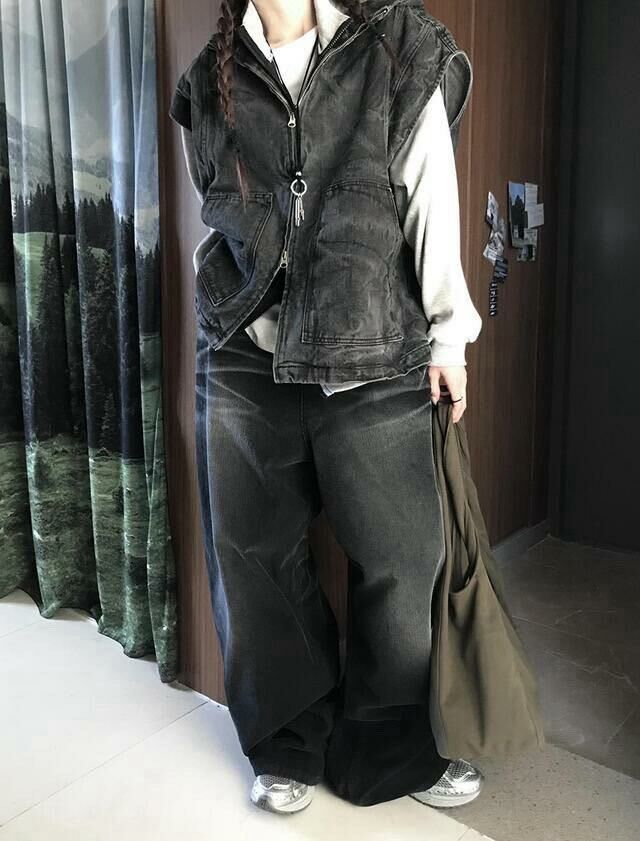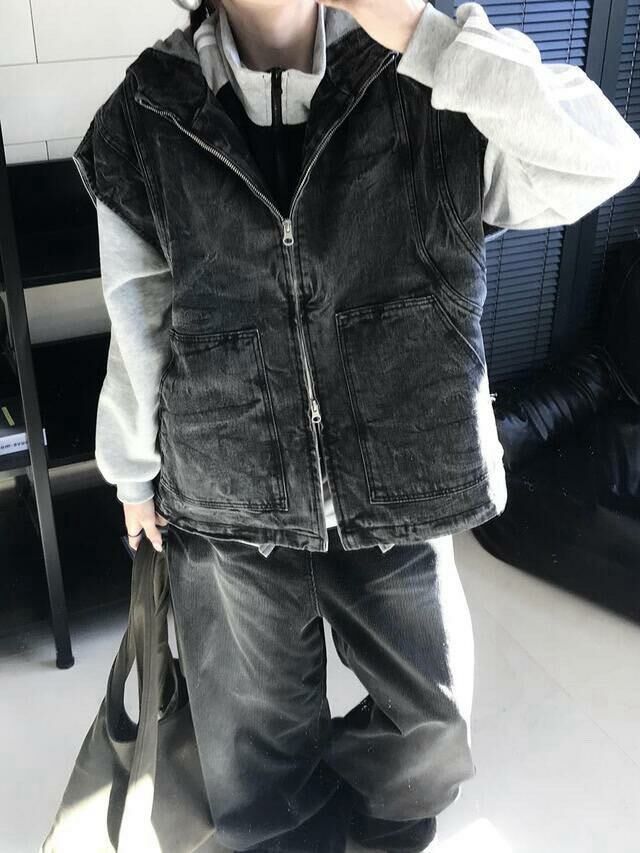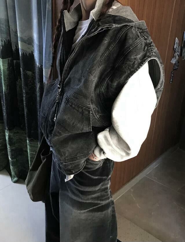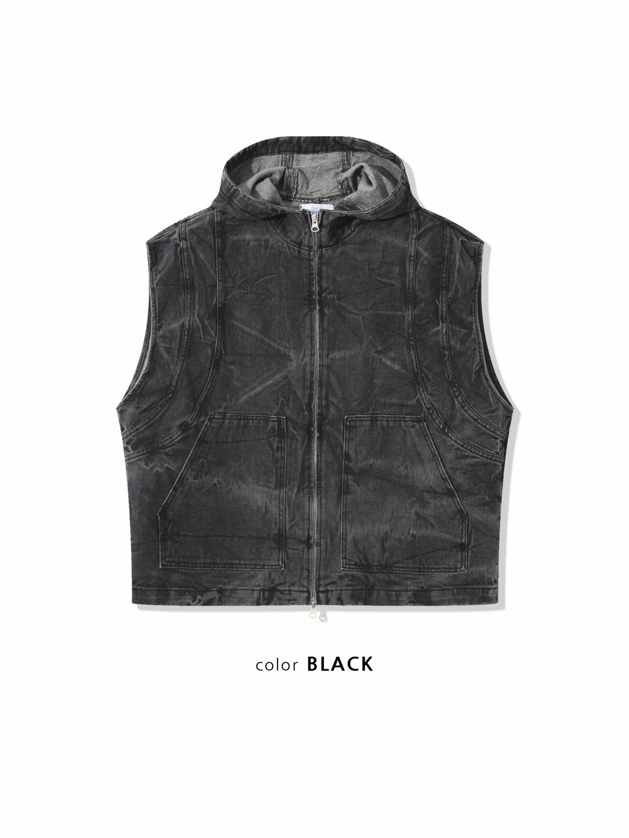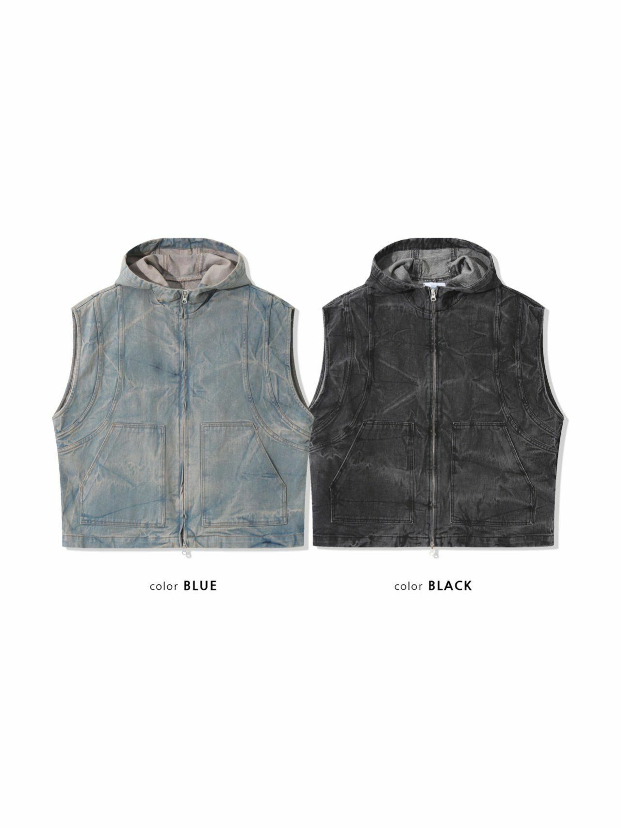 洗水連帽拉鍊背心褸 UNUSED-061V