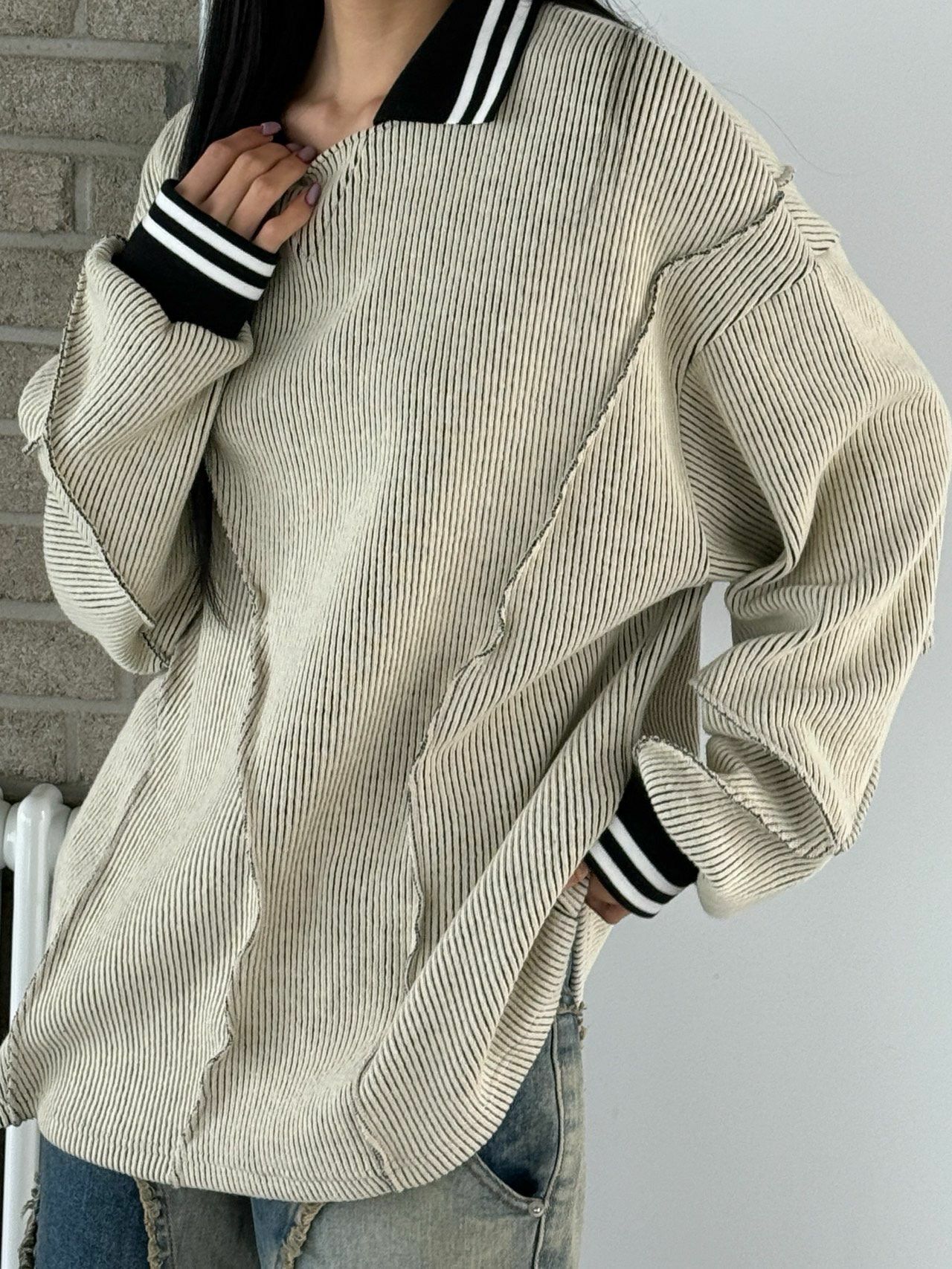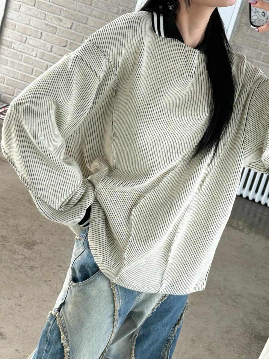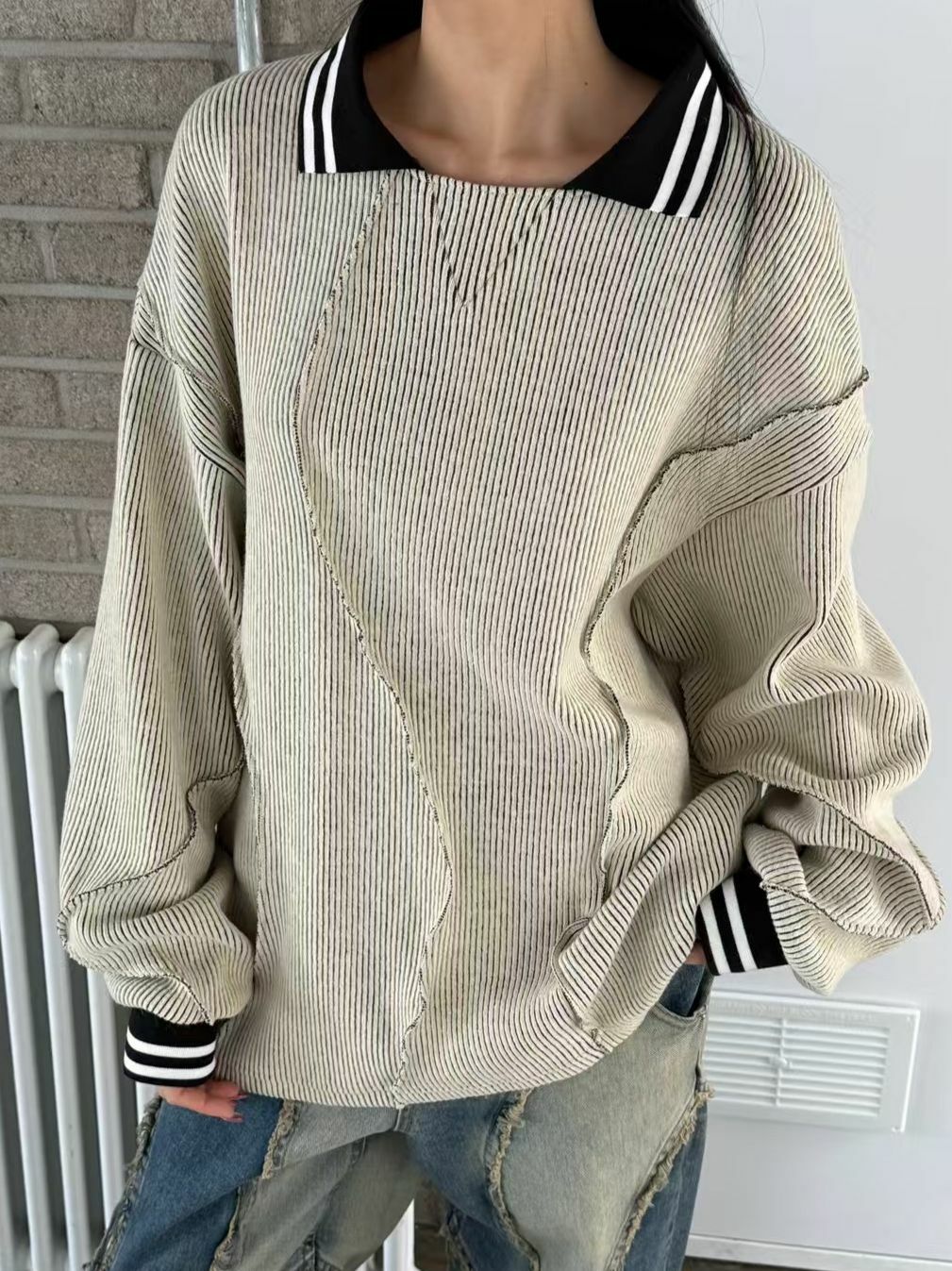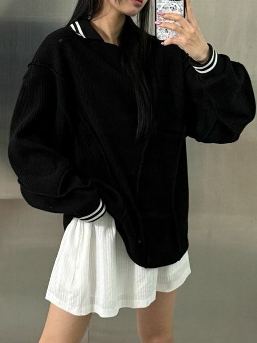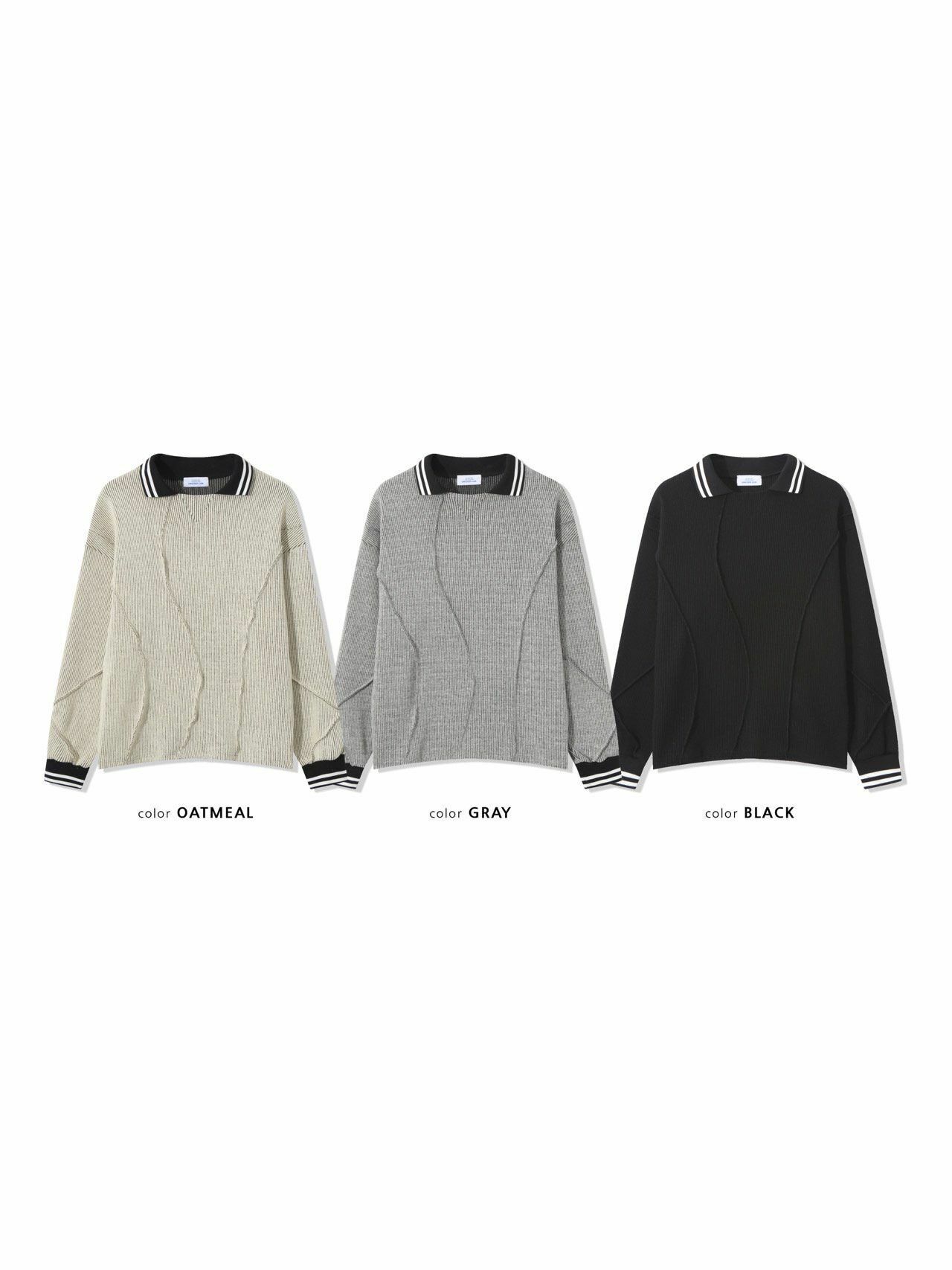 淨色反領暗紋長袖針織衫 UNUSED-071T