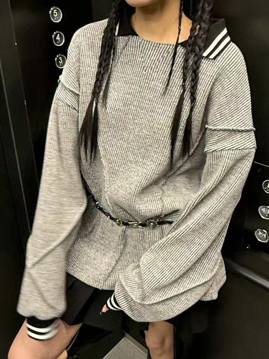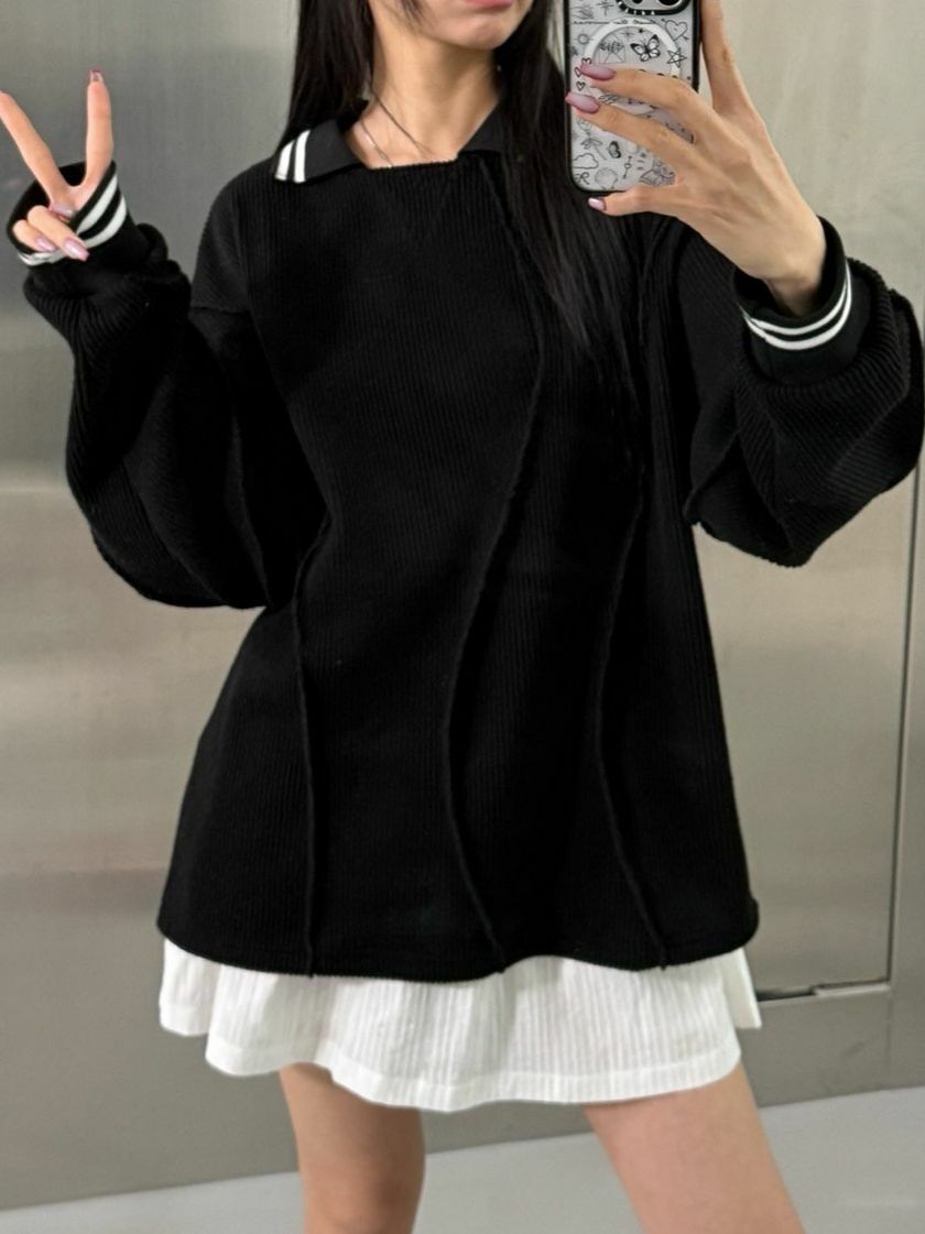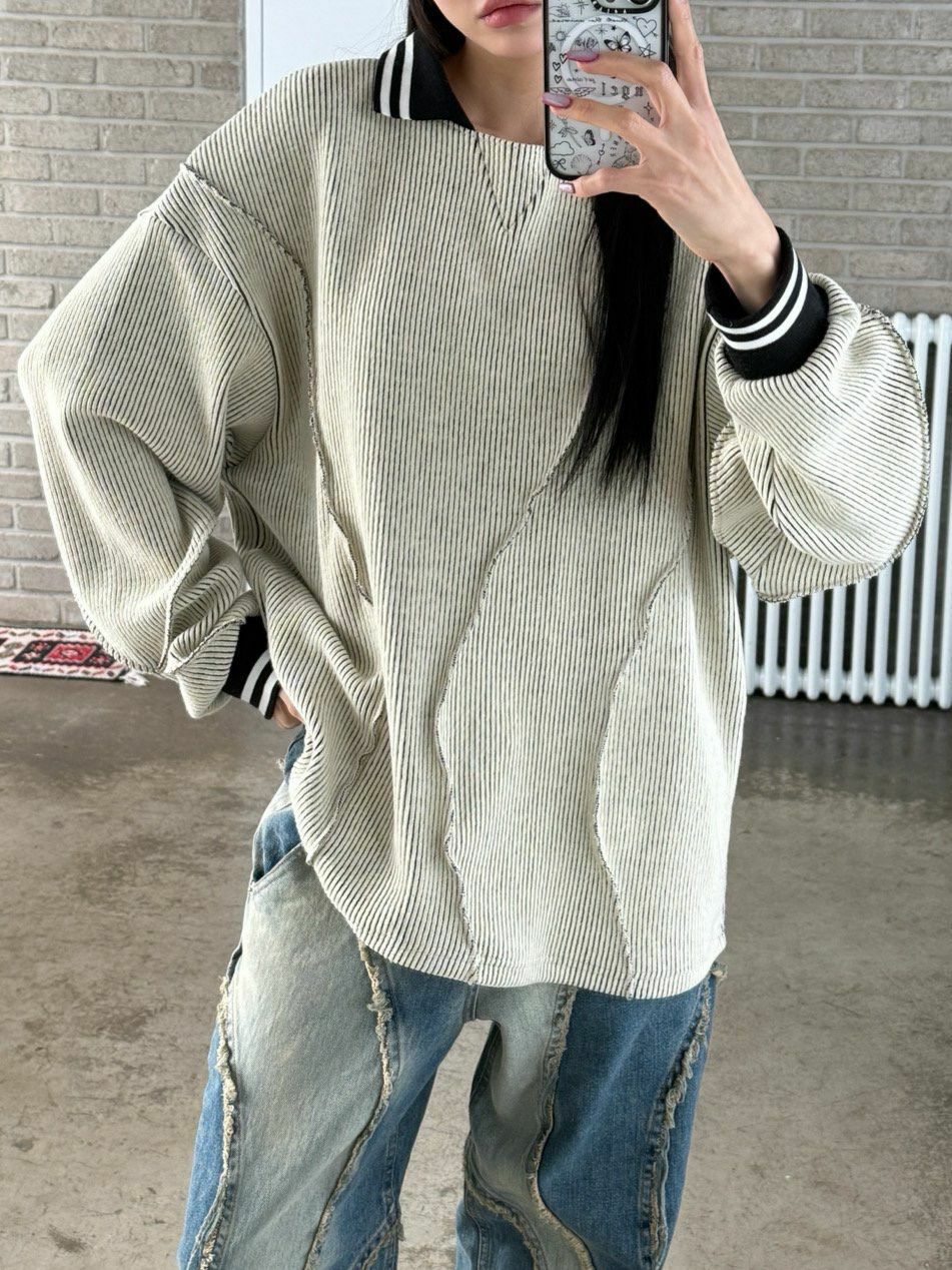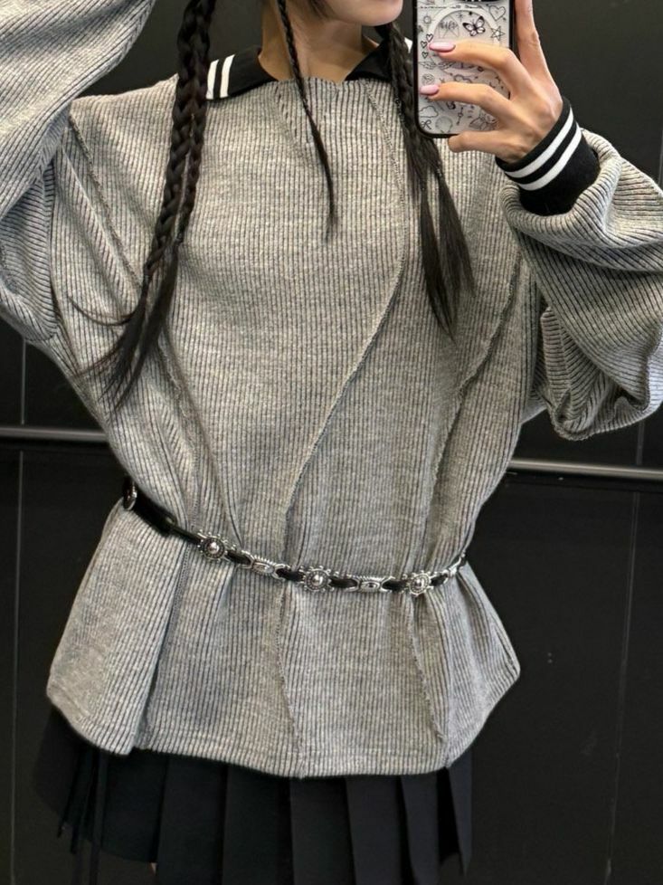 淨色反領暗紋長袖針織衫 UNUSED-071T