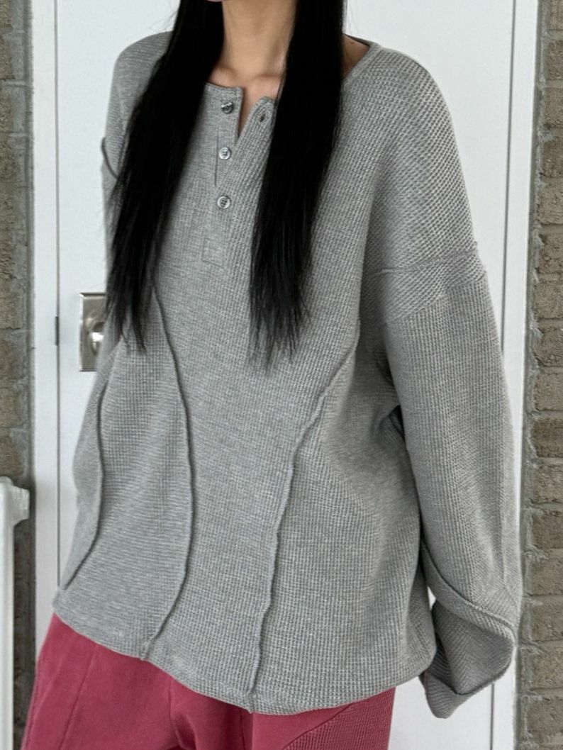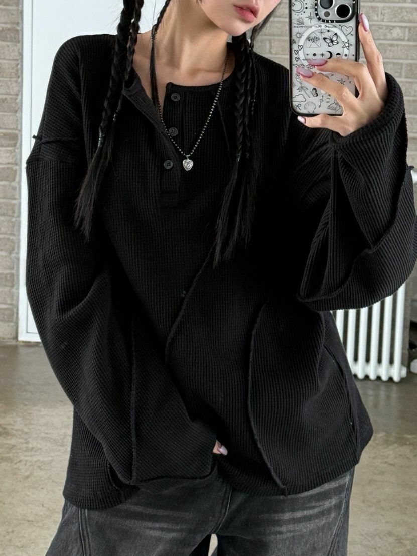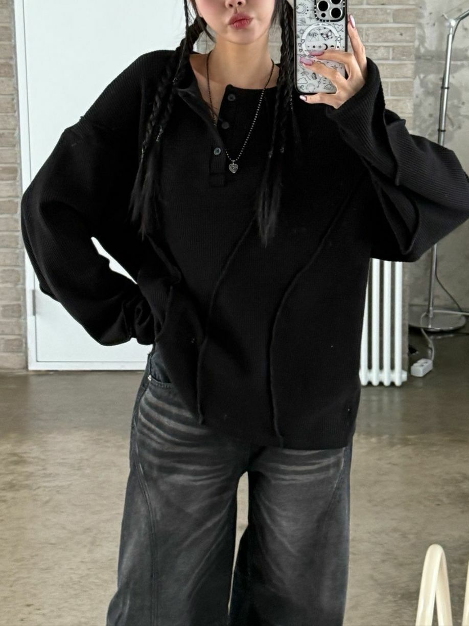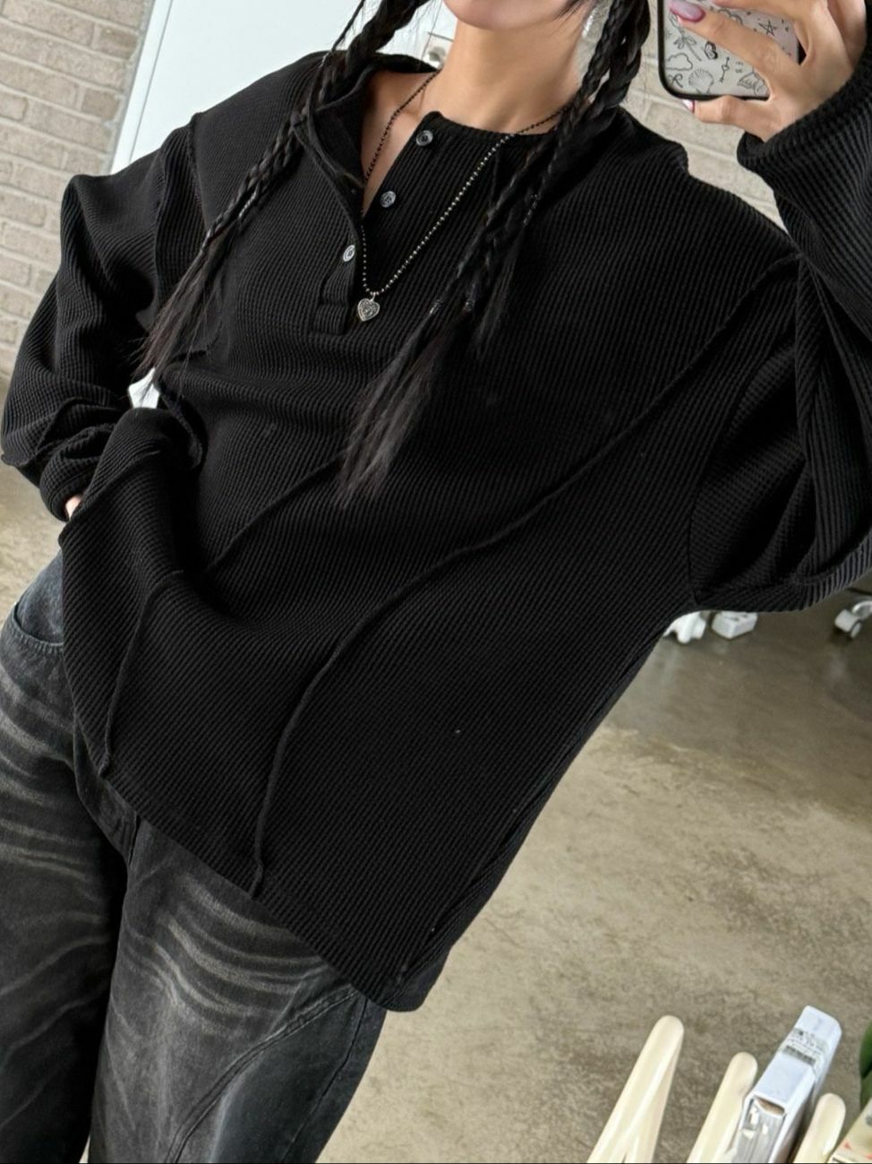 淨色半開胸長袖衫 UNUSED-074T