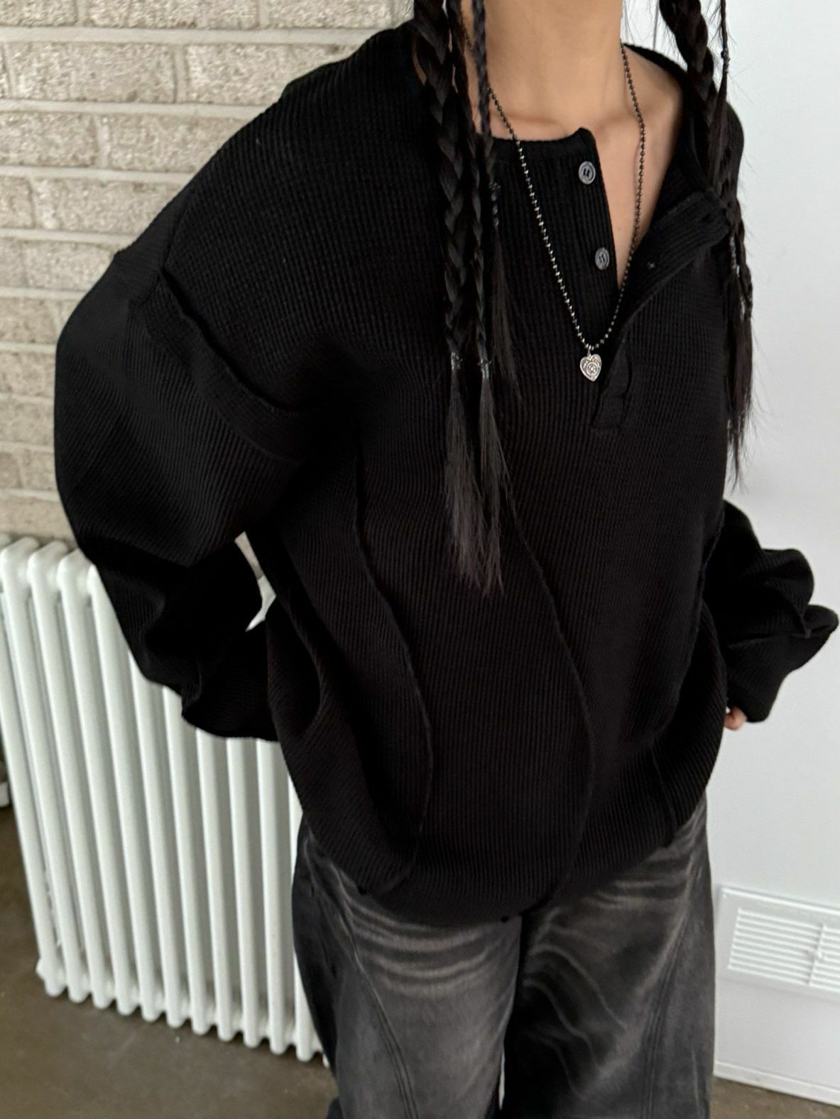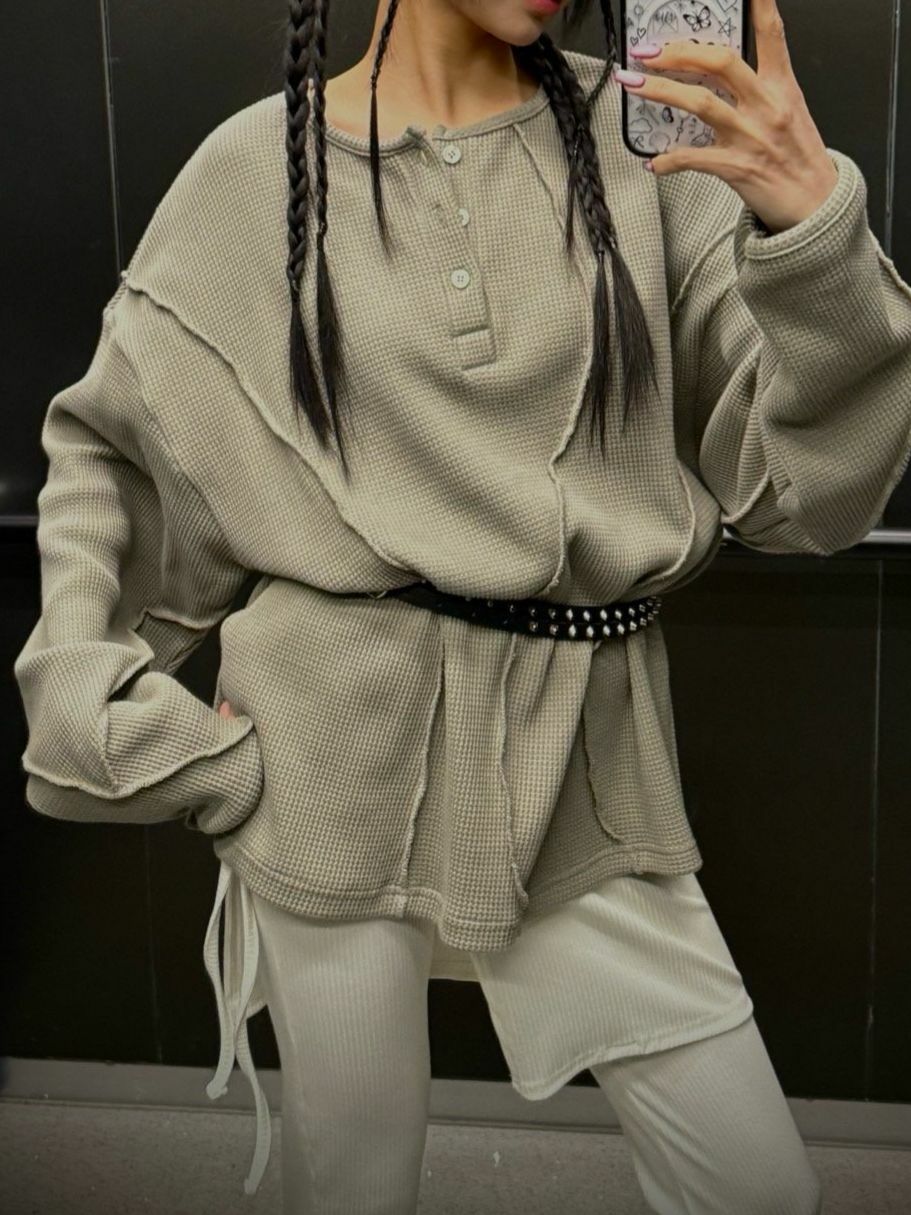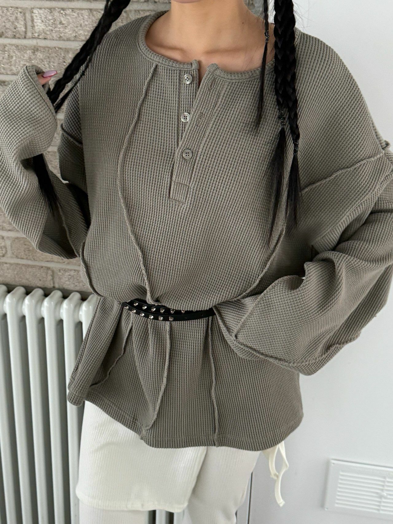 淨色半開胸長袖衫 UNUSED-074T