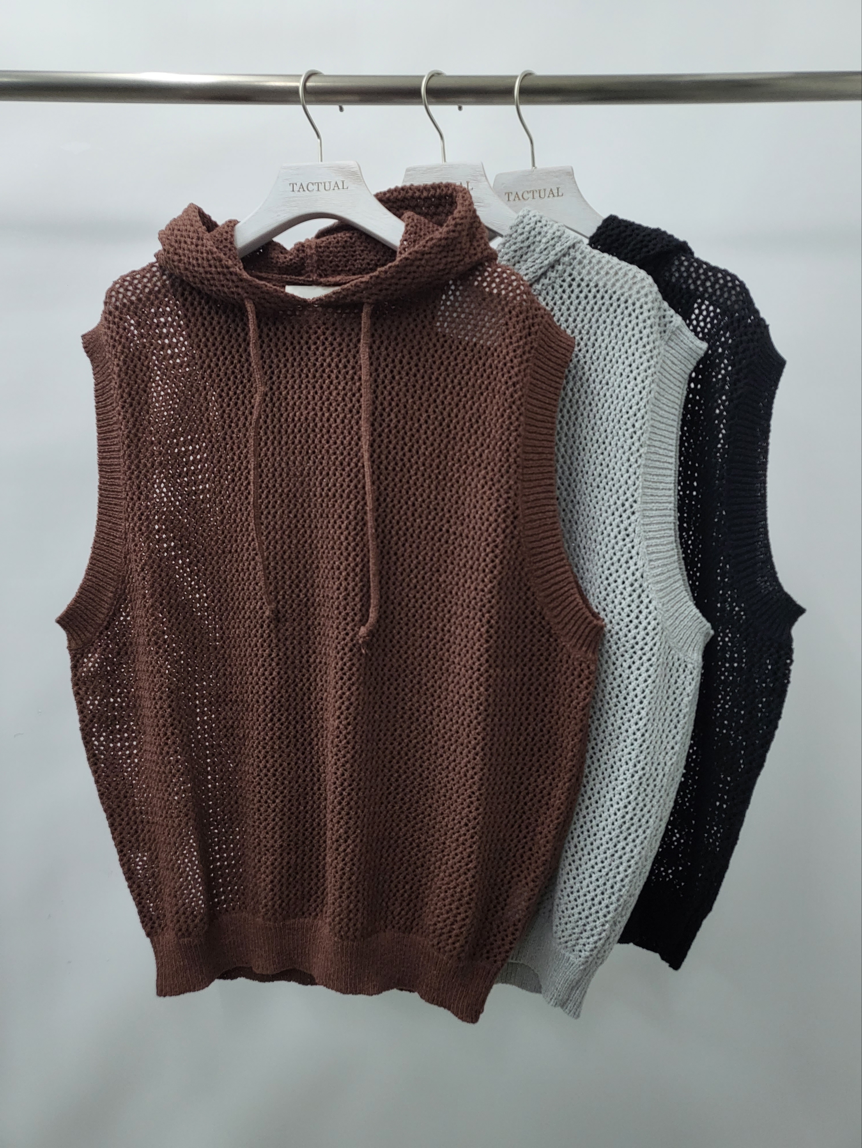 連帽網紋背心 V1024