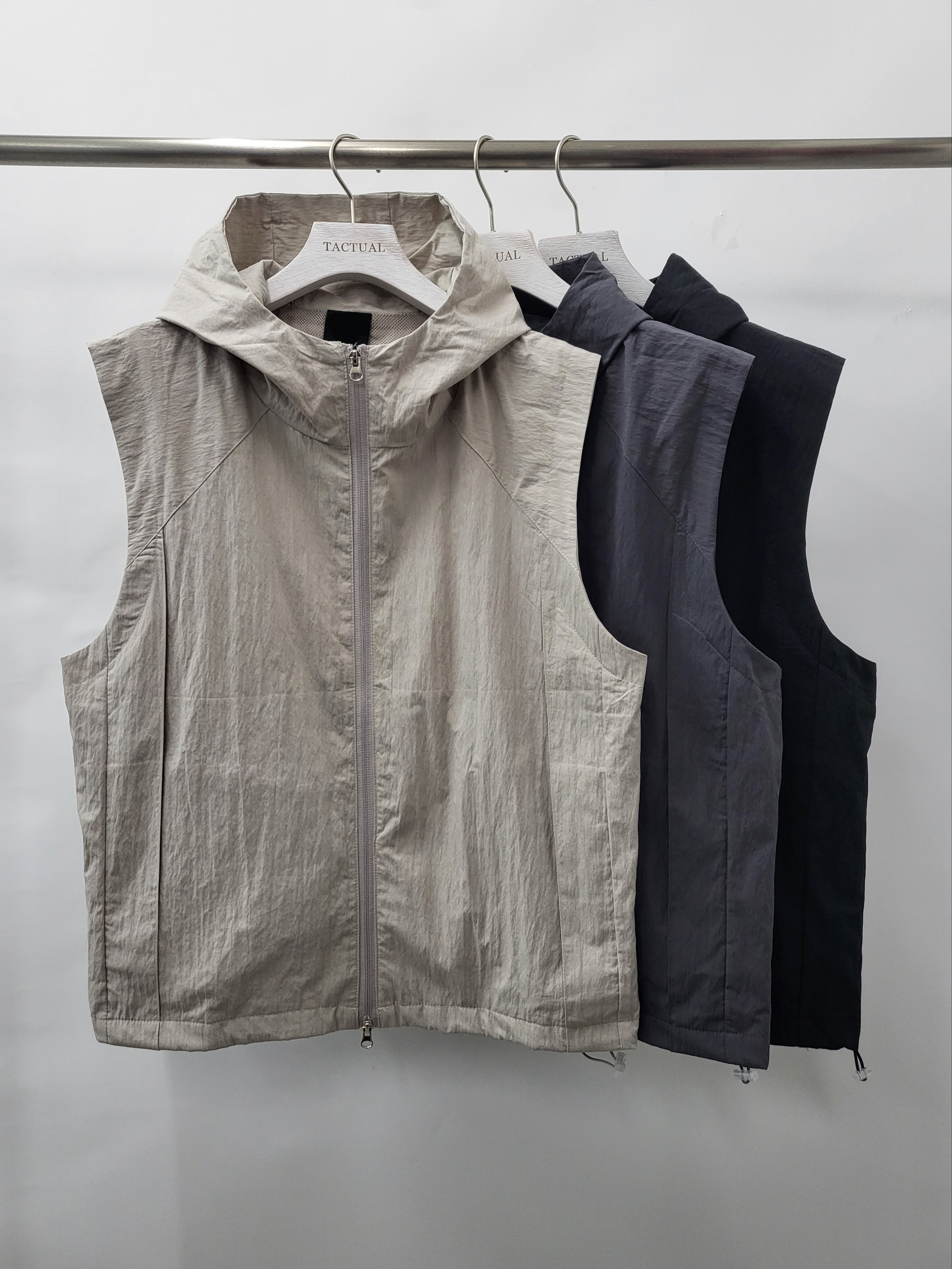 連帽拉鍊開胸背心褸 V919