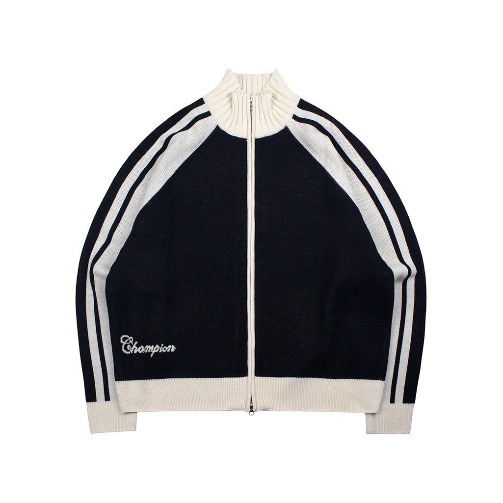 拼色圓企領開胸針織拉鍊外套VAMPIRE-013JK