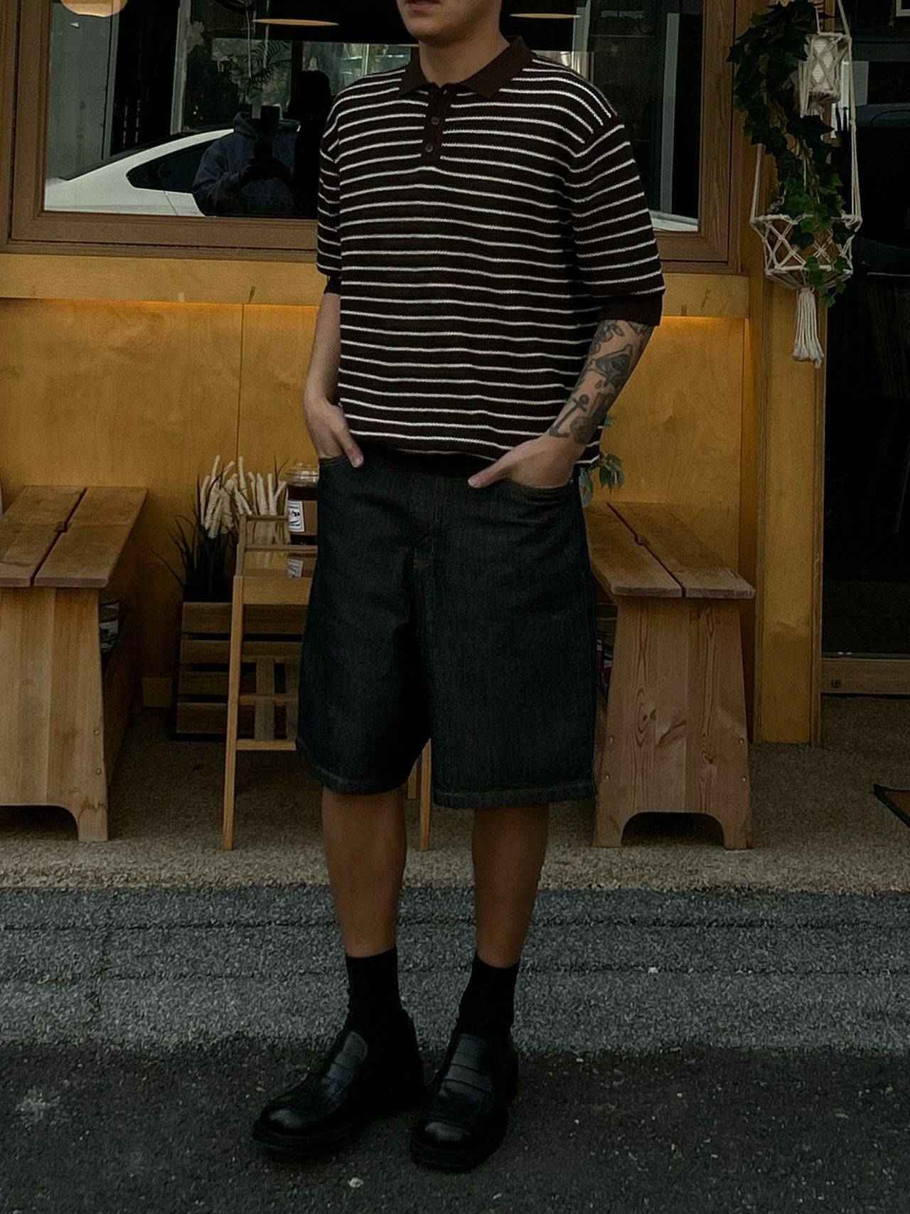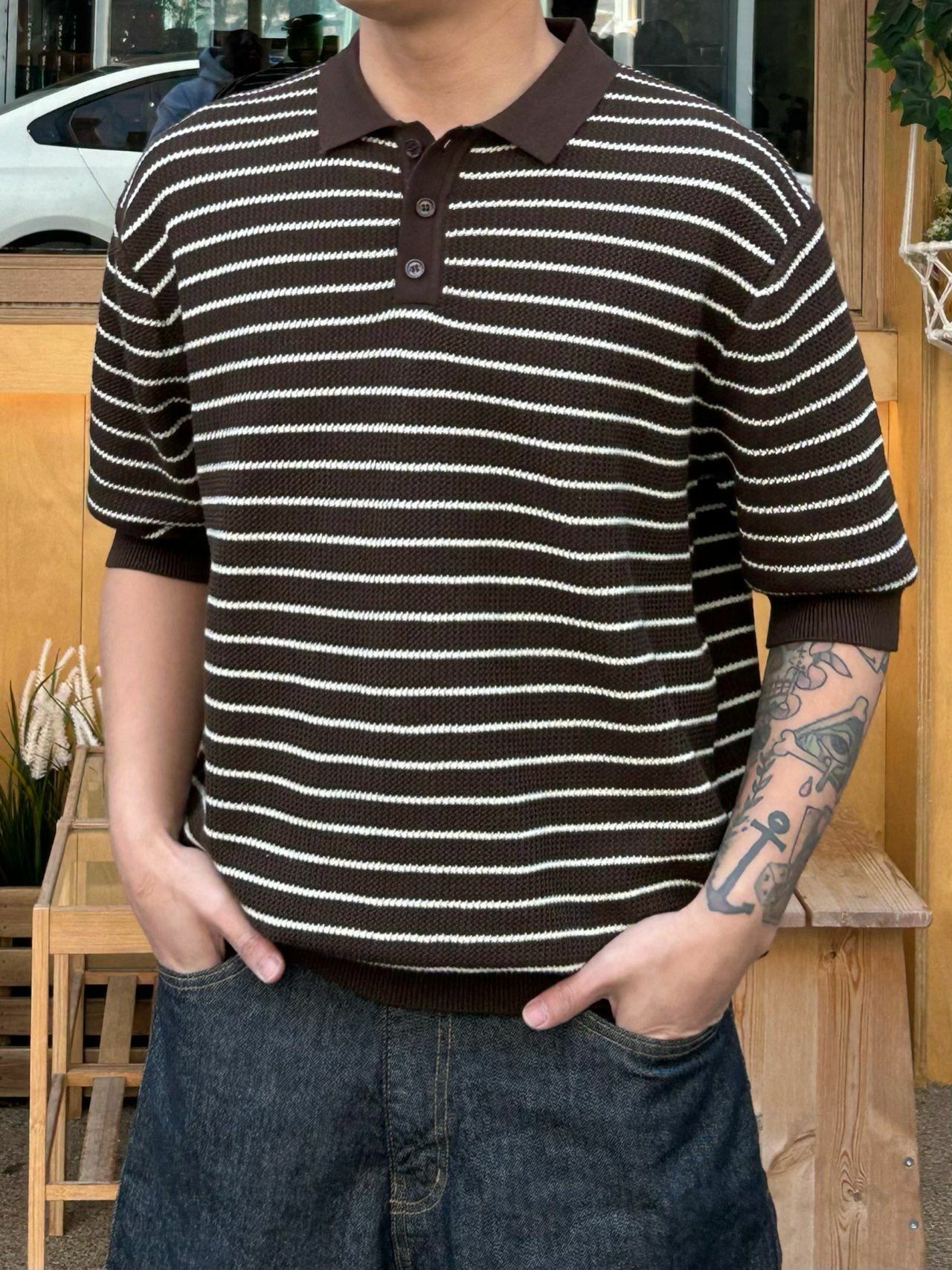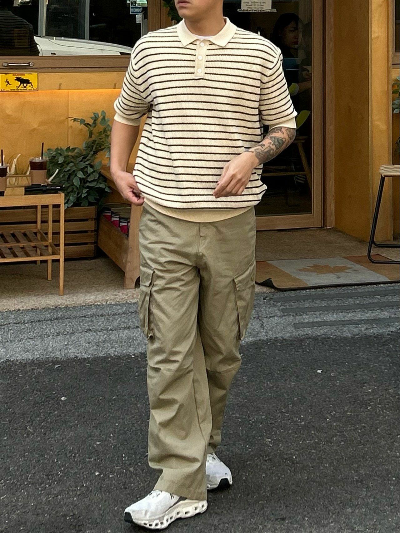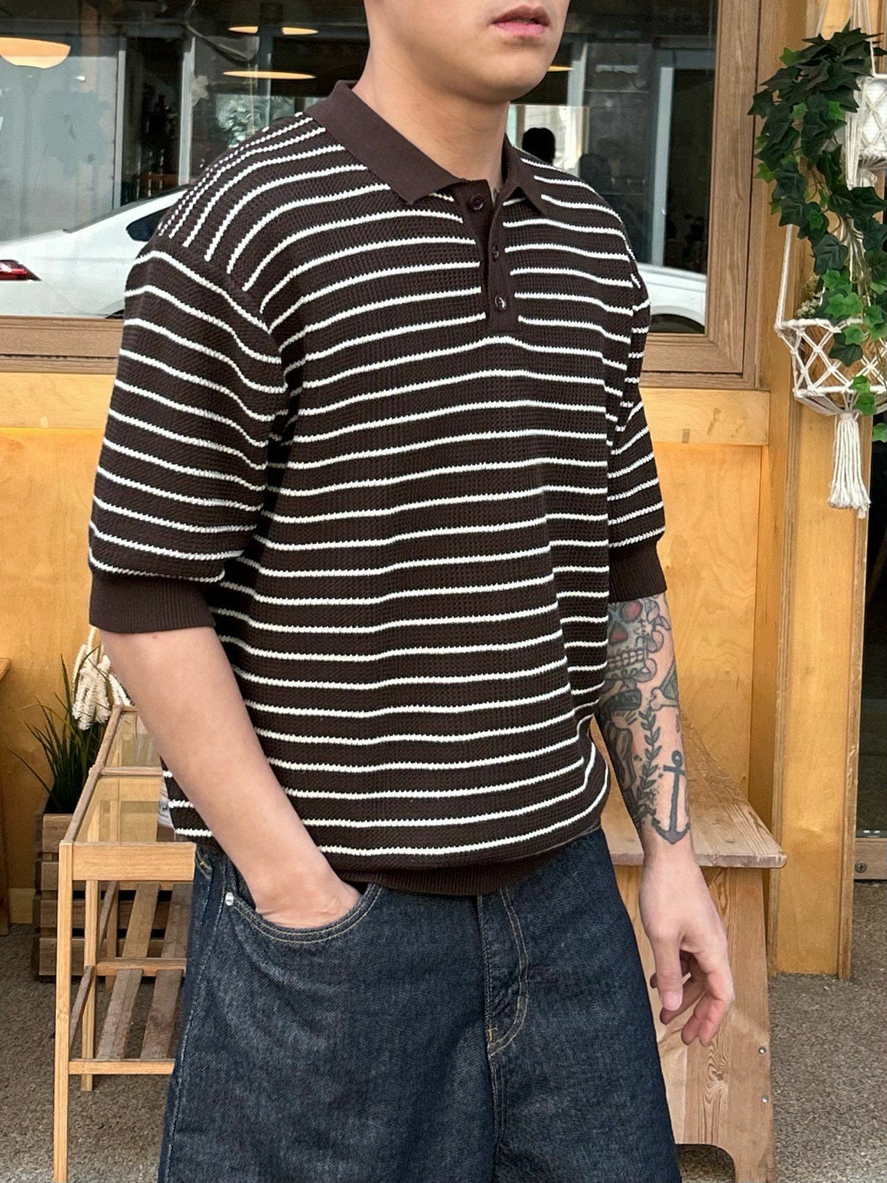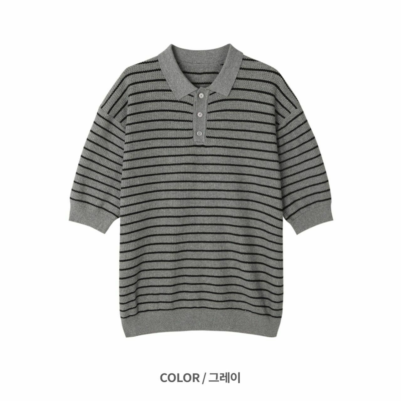 橫間針織短袖Polo Tee Veil-024T