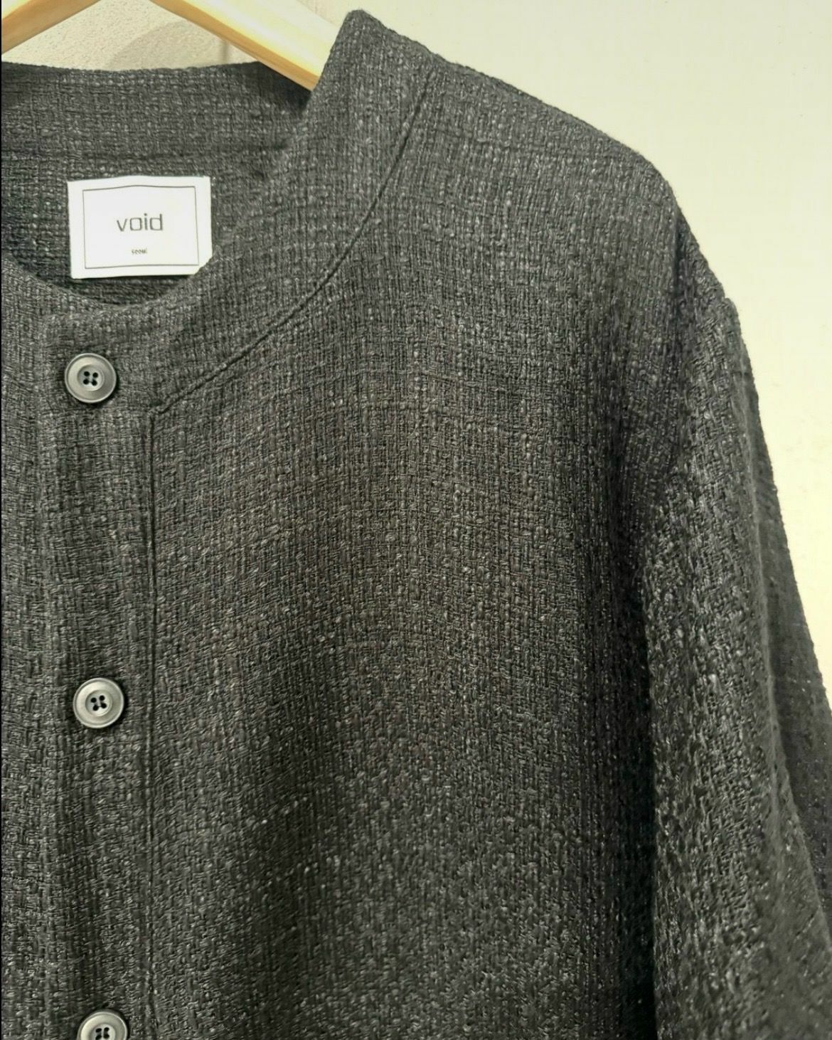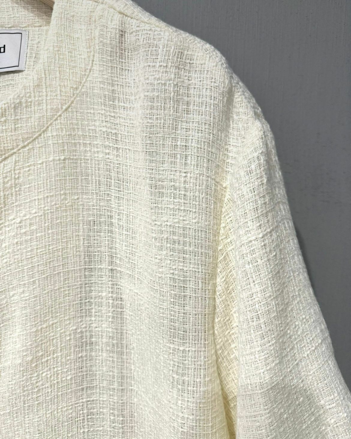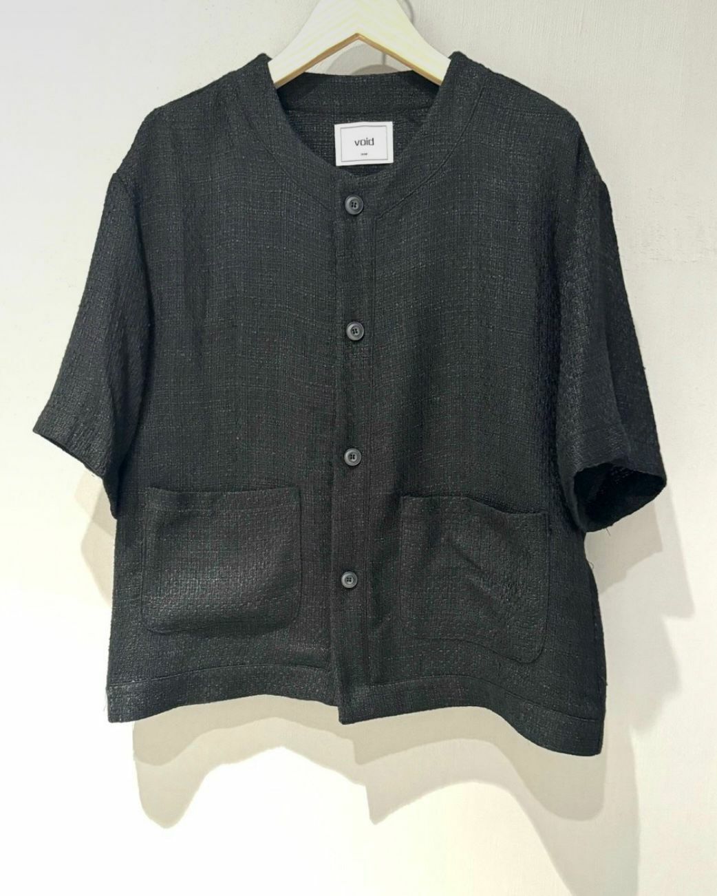 淨色圓領暗格紋開胸短袖外套 VOID-022JK