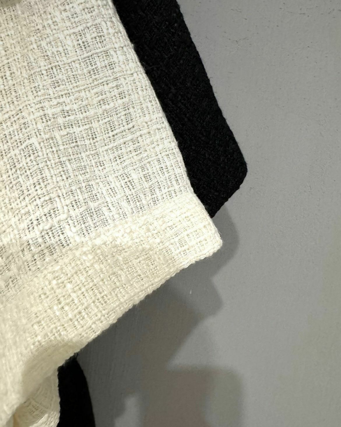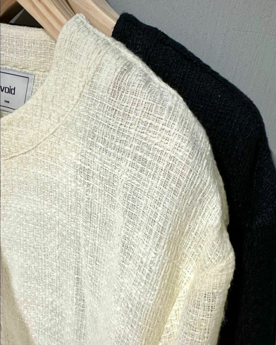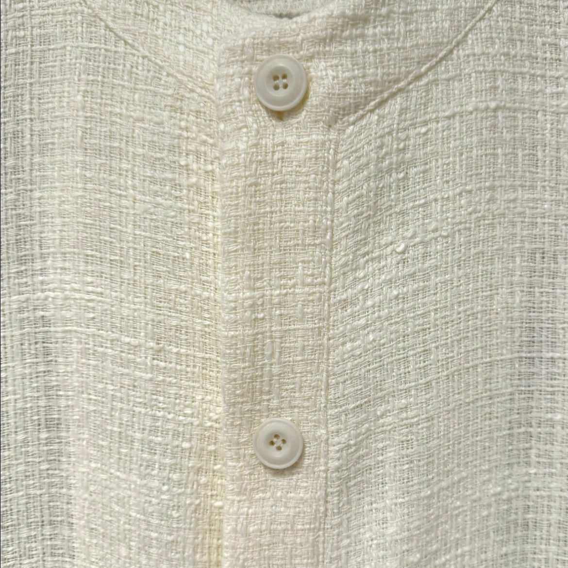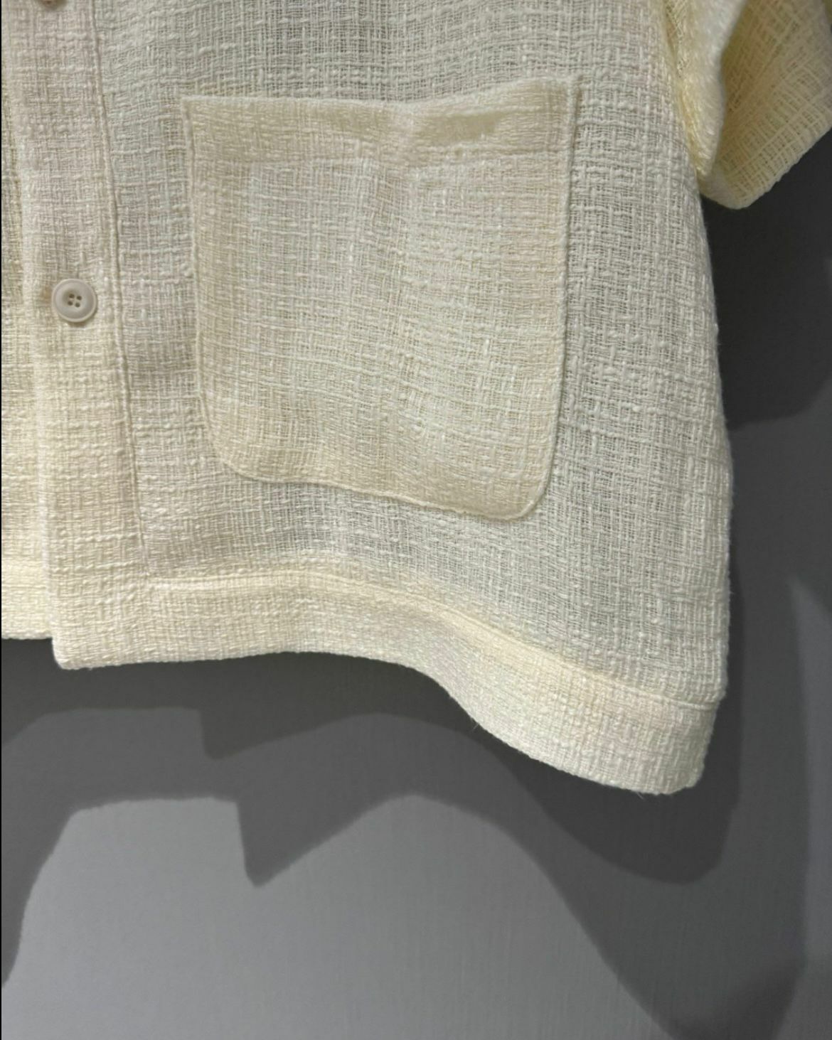 淨色圓領暗格紋開胸短袖外套 VOID-022JK