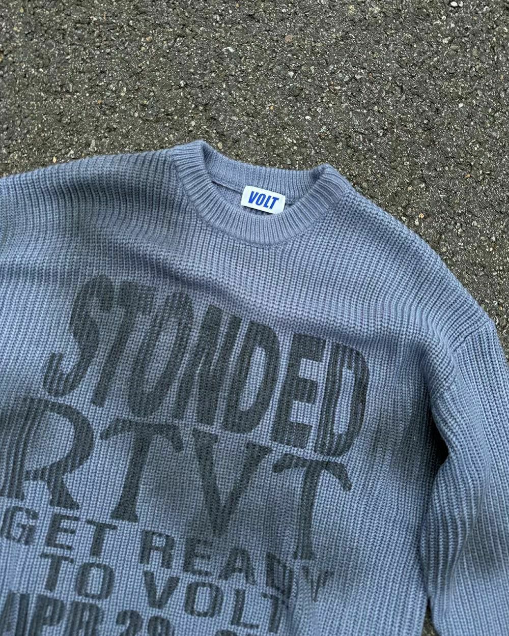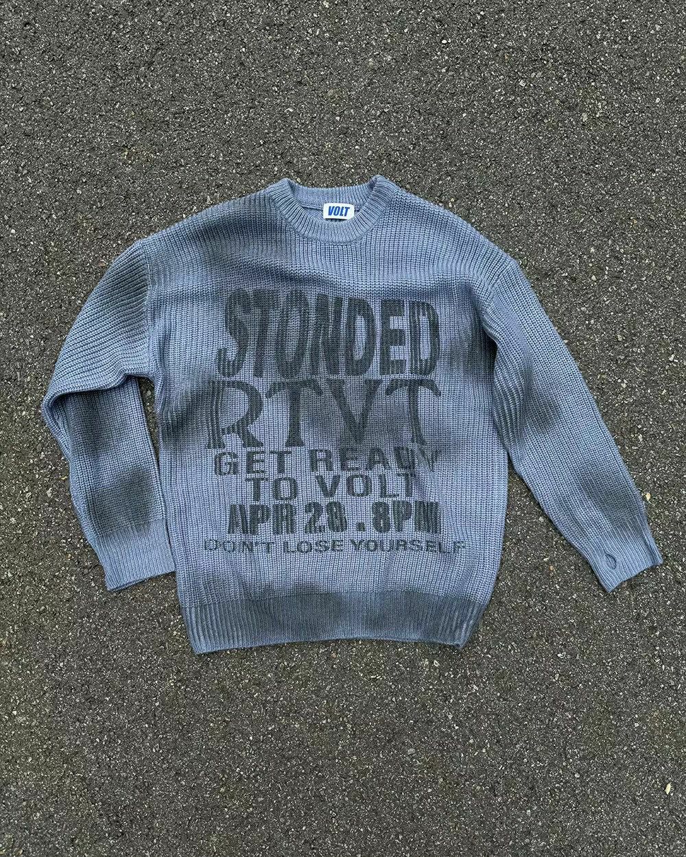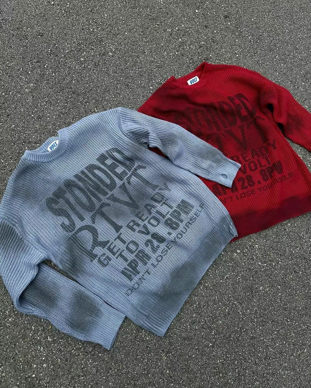 仿污圓領英文字針織衫 VOLT-077T