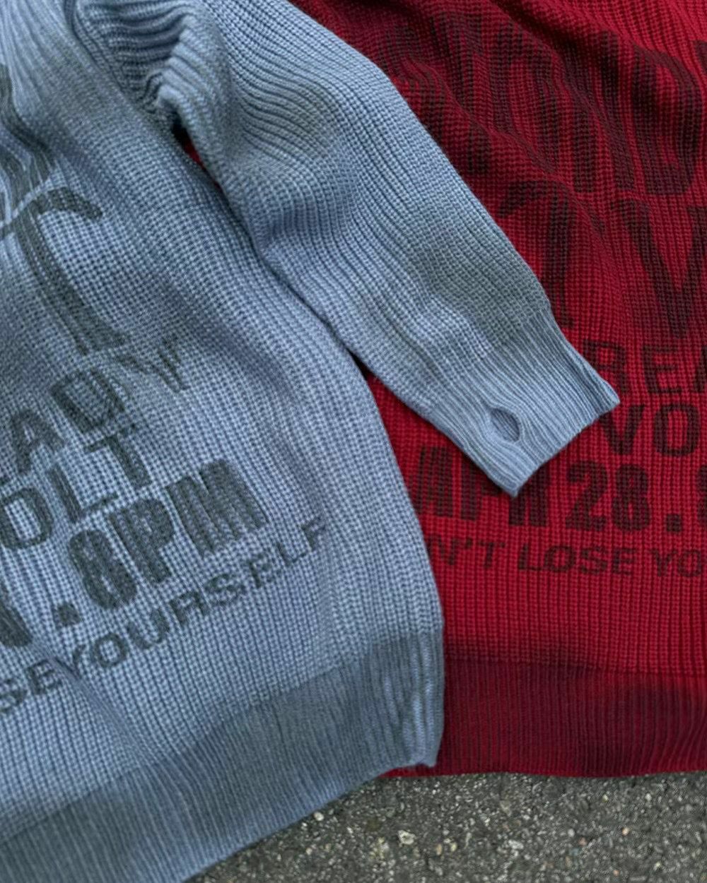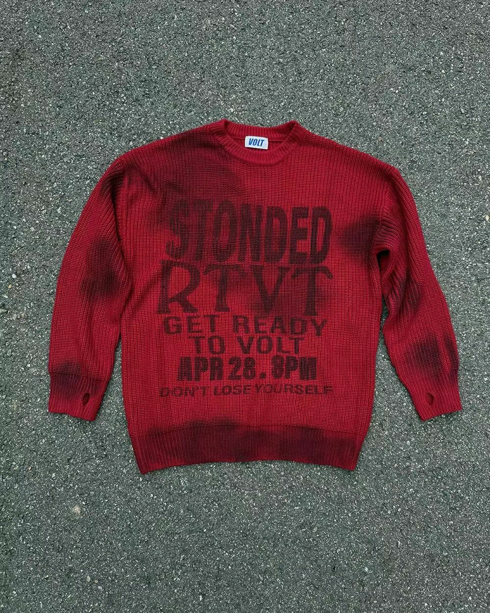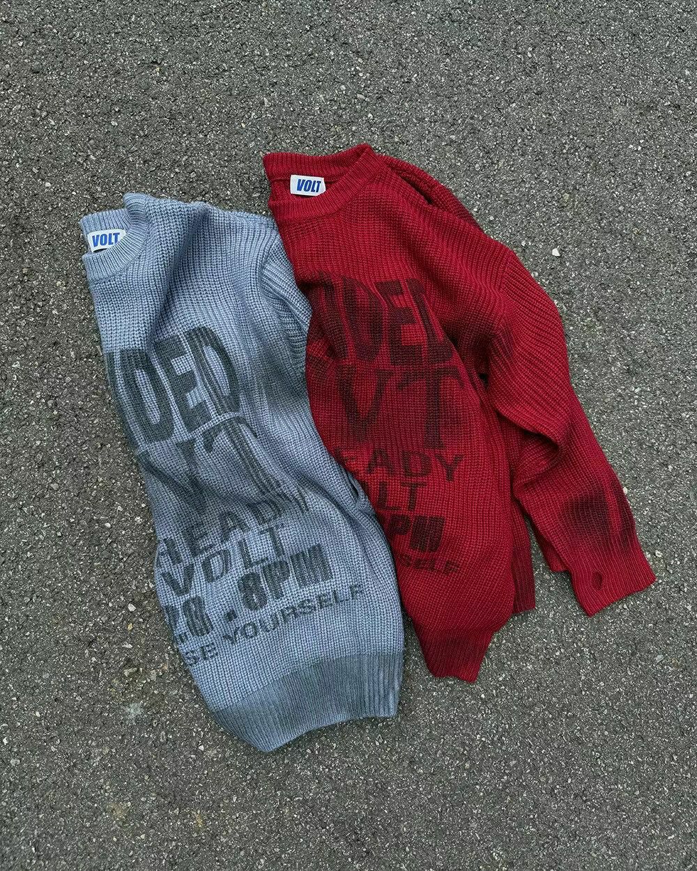 仿污圓領英文字針織衫 VOLT-077T