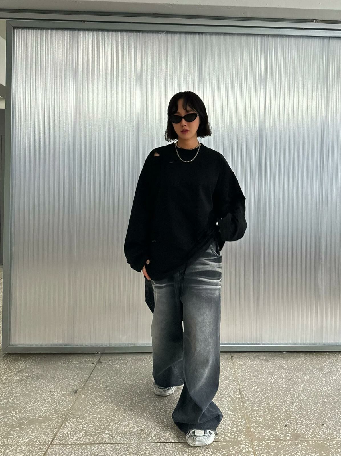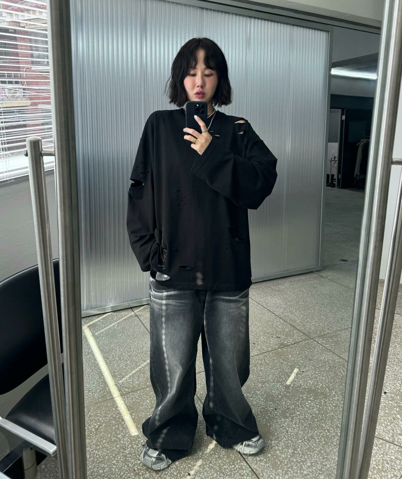 淨色破洞長袖衫 Votus-032T