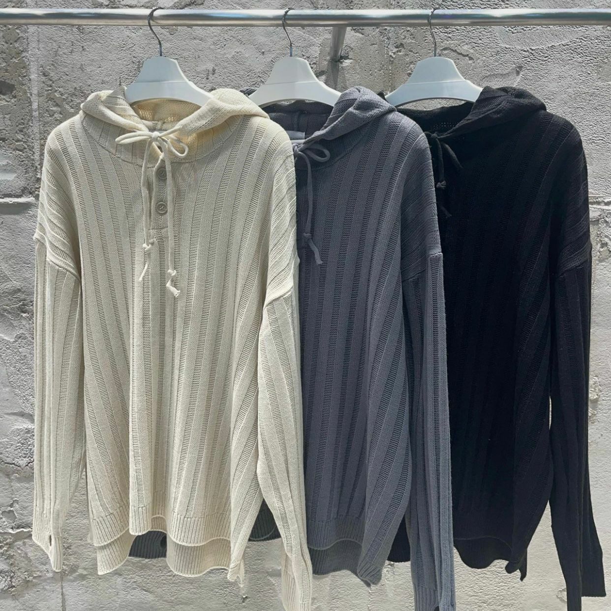 暗直紋半開胸連帽針織衫 WEEKEND-013T
