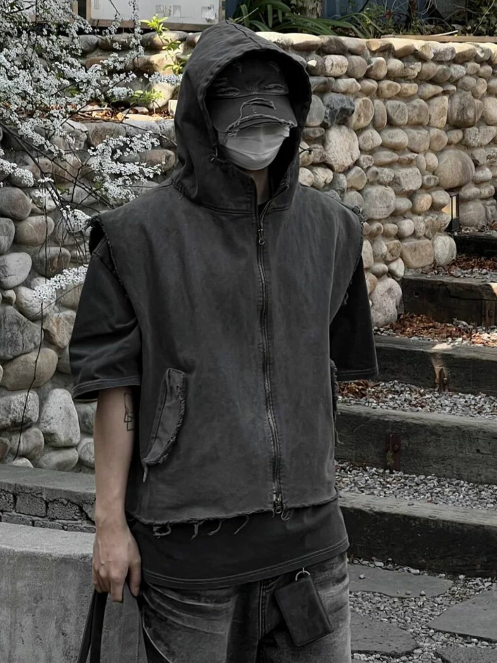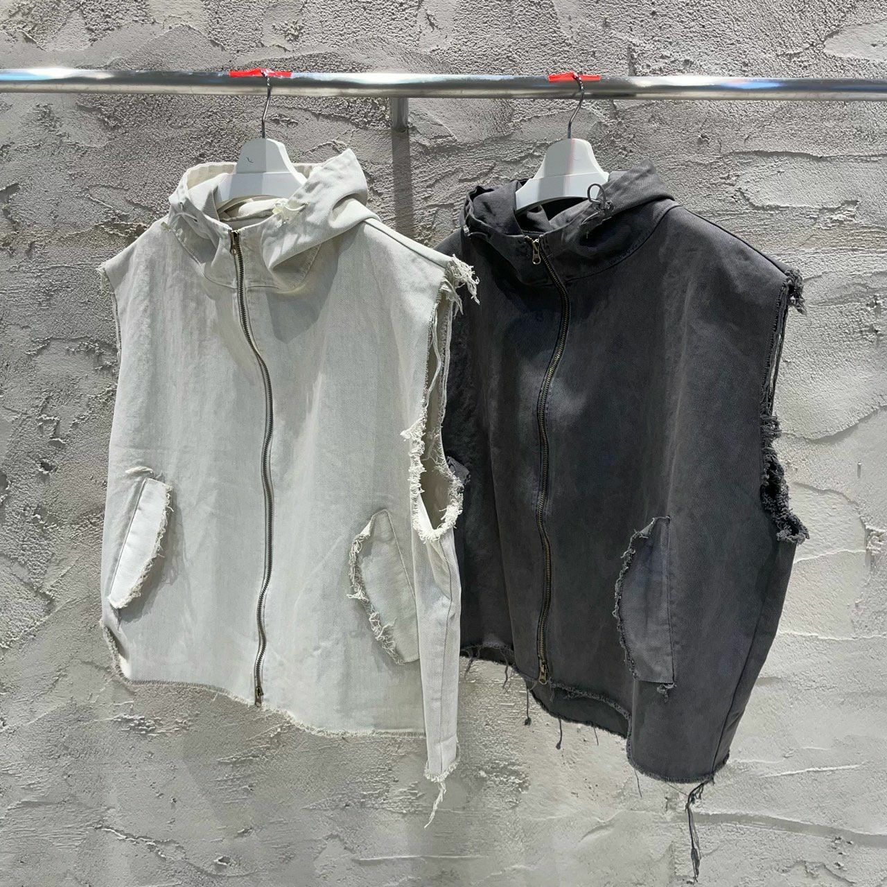破邊拉鍊連帽背心褸 WEEKEND-038V