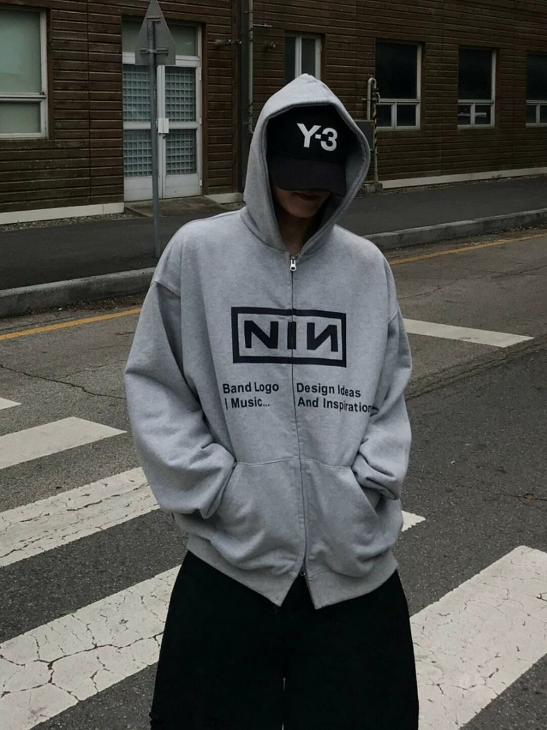 英文字圖案連帽拉鍊外套 WELL DONE-101JK